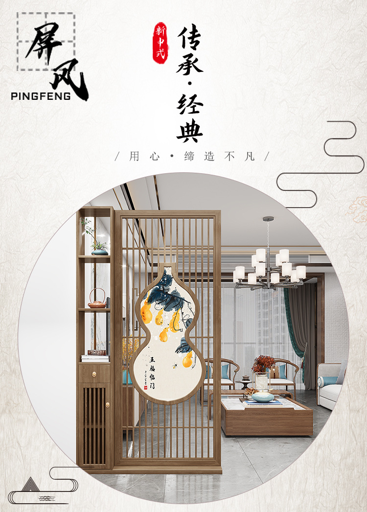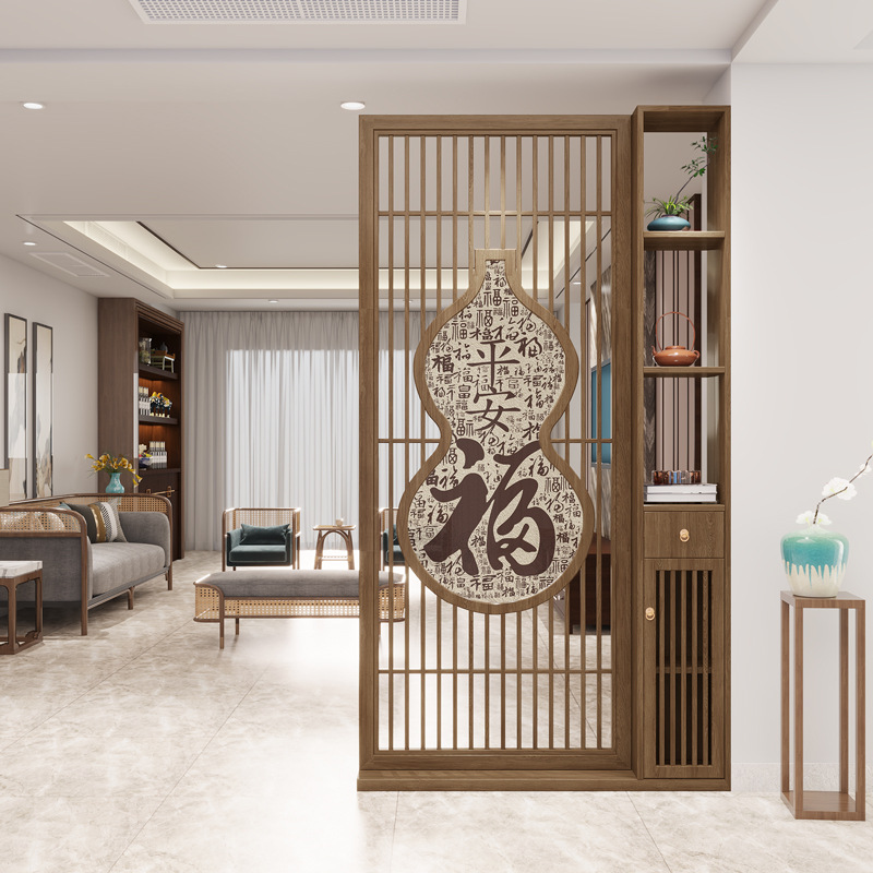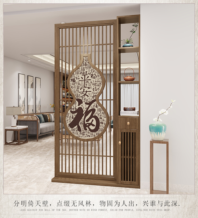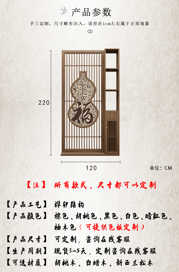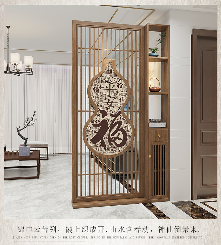 새로운 중국식 솔리드 우드 조롱박 스크린 파티션 거실 양면 Fuzi 입구 캐비닛 도어 쉘터링 사물함