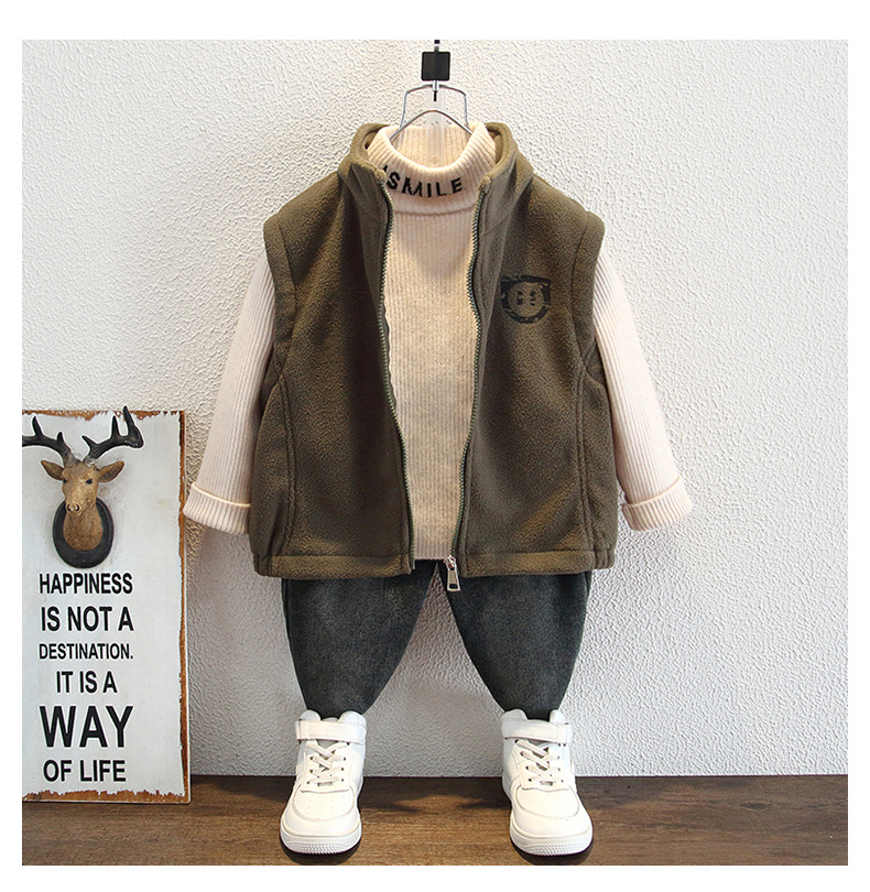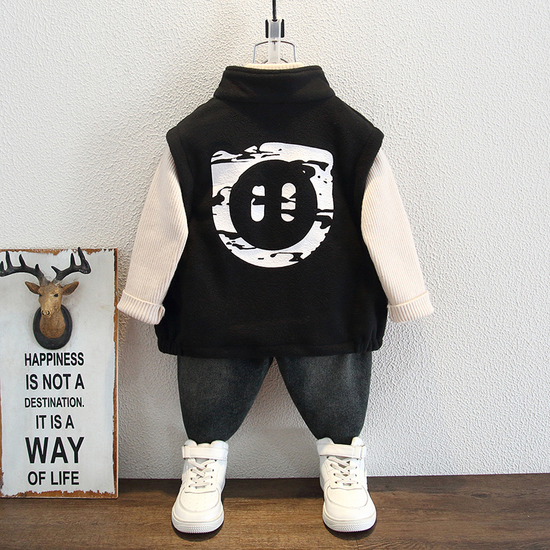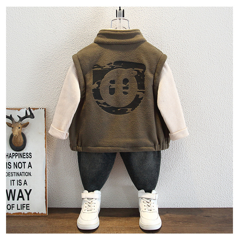 소년 양털 조끼 2024 년 가을과 겨울 새로운 어린이 늦가을과 초겨울 남성 두꺼운 어린이 따뜻한 허리 코트 유행스토어 가기