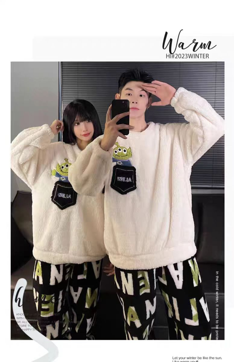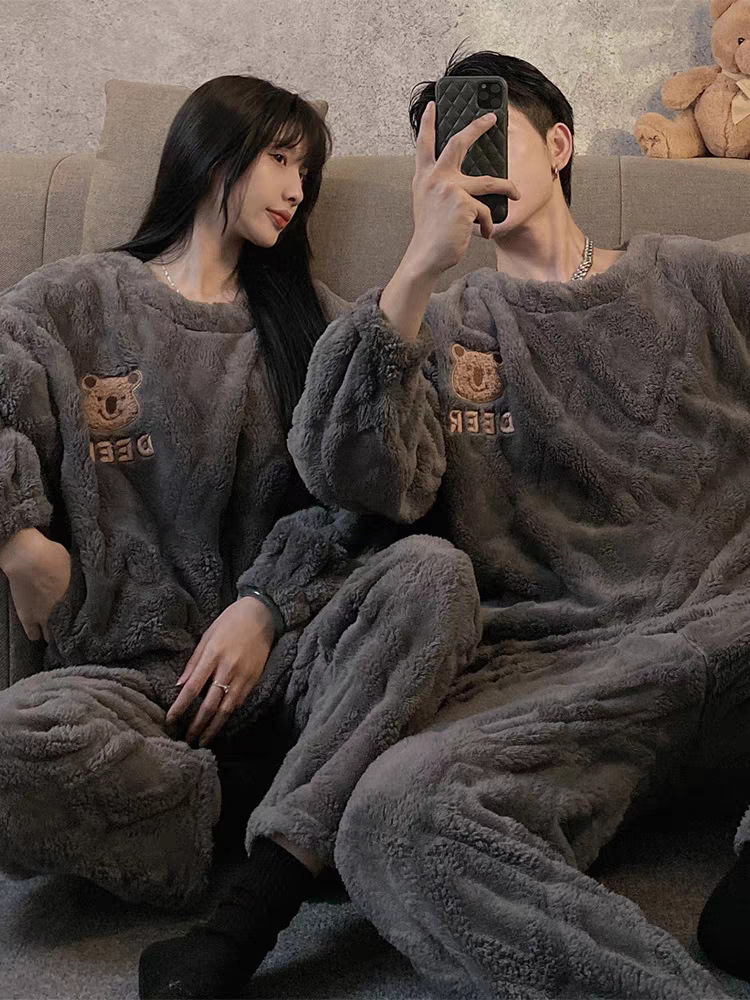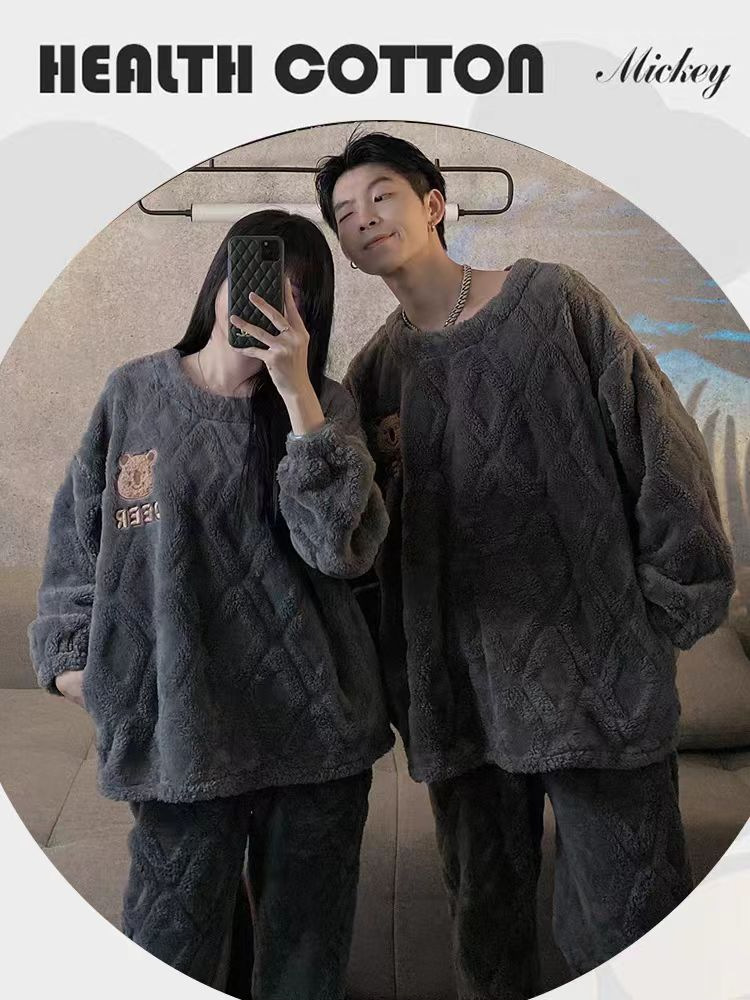 가을 겨울 폭발 커플 플란넬 산호 양털 잠옷 여성과 남성 홈 옷스토어 가기
