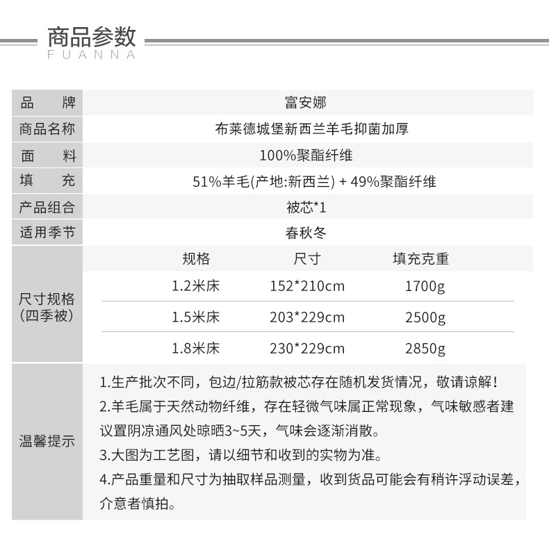푸아나 울 퀼트 겨울 퀼트 뉴질랜드 수입 양모 퀼트 코어 겨울 따뜻한 싱글 더블 겨울 두꺼운 이불스토어 가기