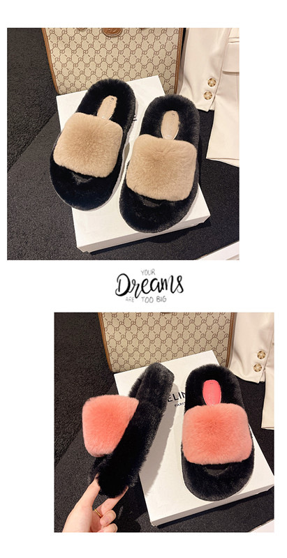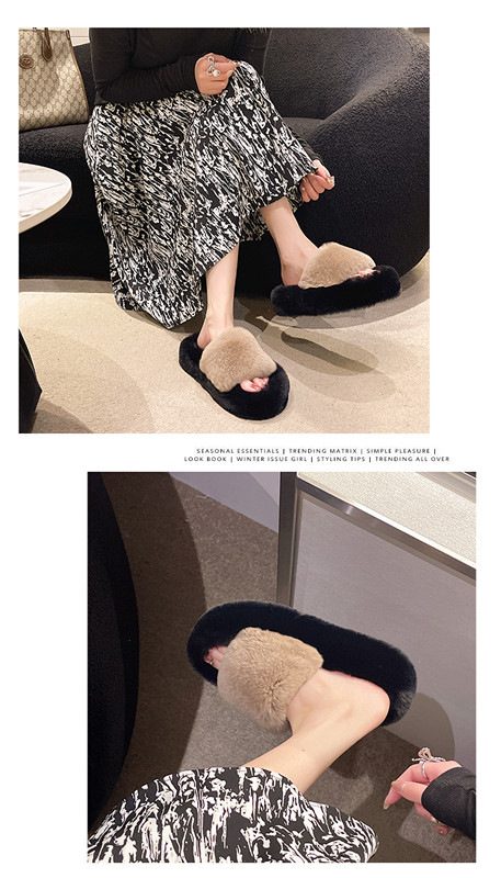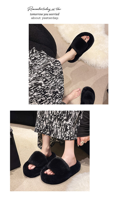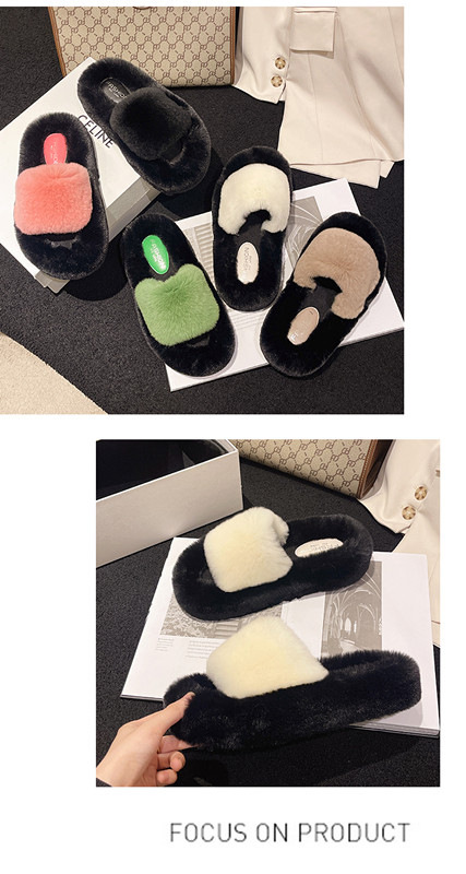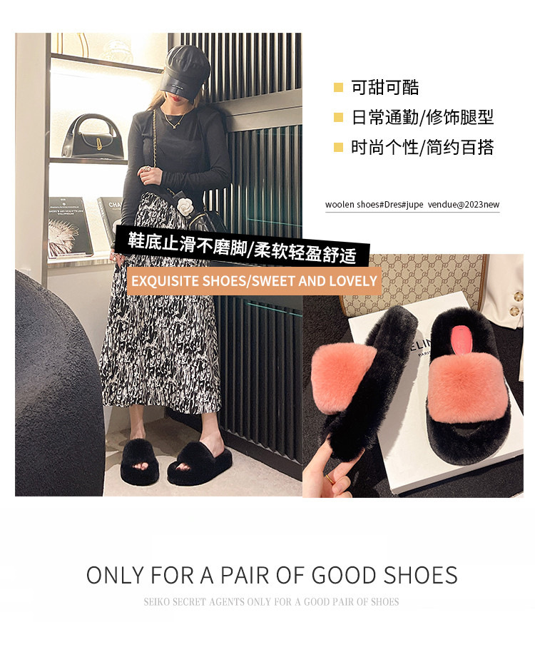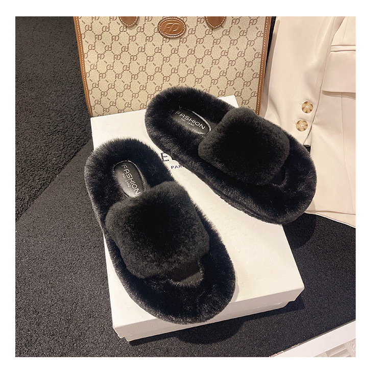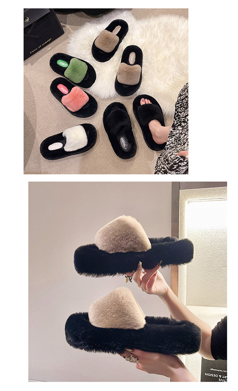 여성을위한 두꺼운 밑창의 진짜 모피 슬리퍼 2024 여름과 가을 새로운 스타일 실내 홈 에어컨 룸 게으른 원라인 면화 슬리퍼스토어 가기