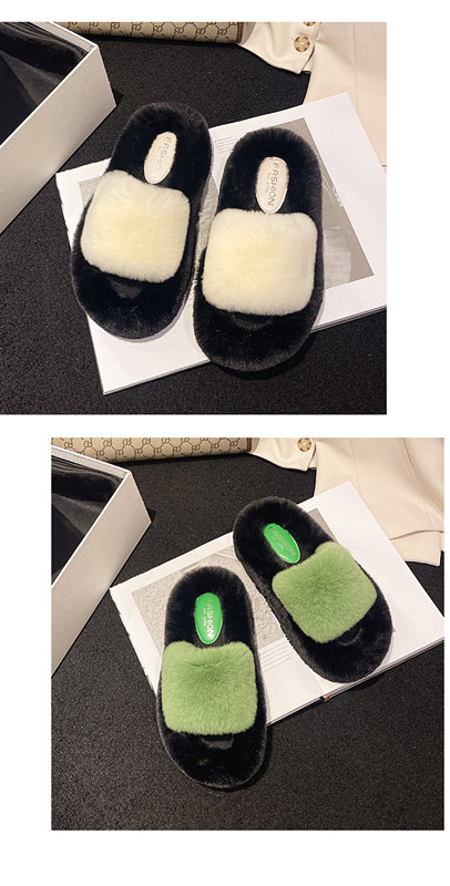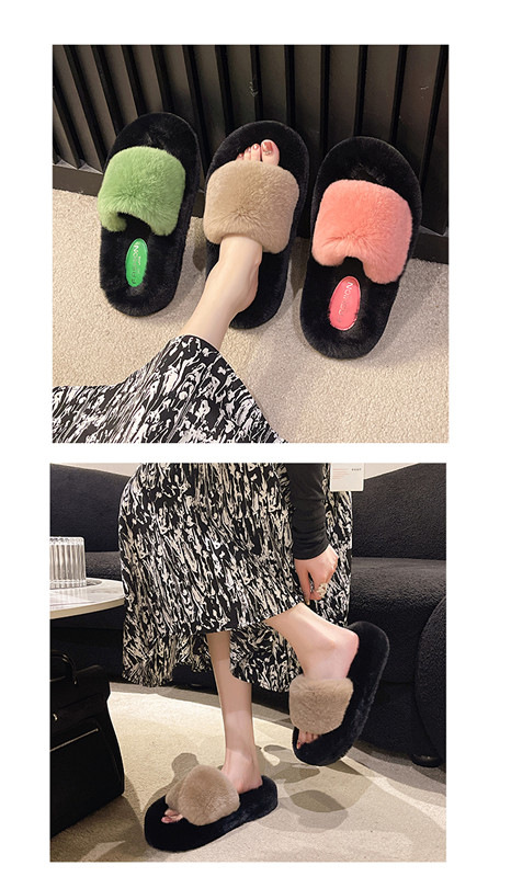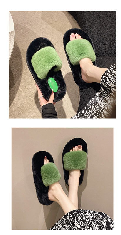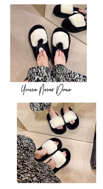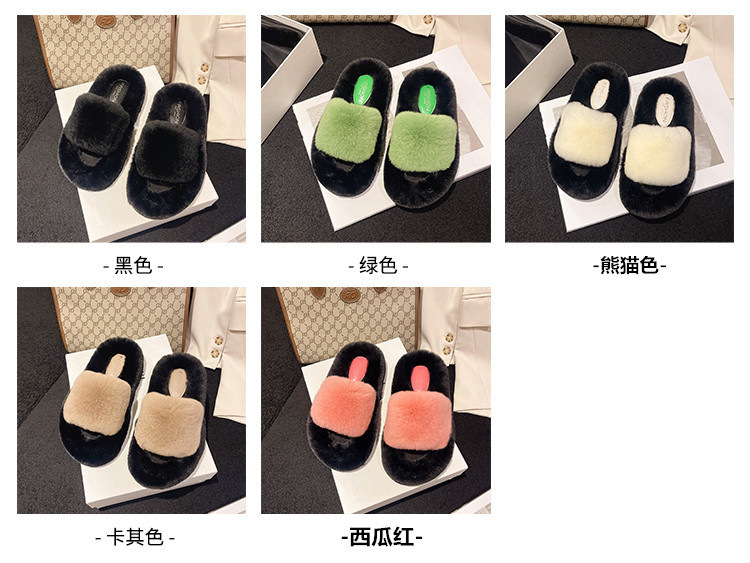 여성을위한 두꺼운 밑창의 진짜 모피 슬리퍼 2024 여름과 가을 새로운 스타일 실내 홈 에어컨 룸 게으른 원라인 면화 슬리퍼