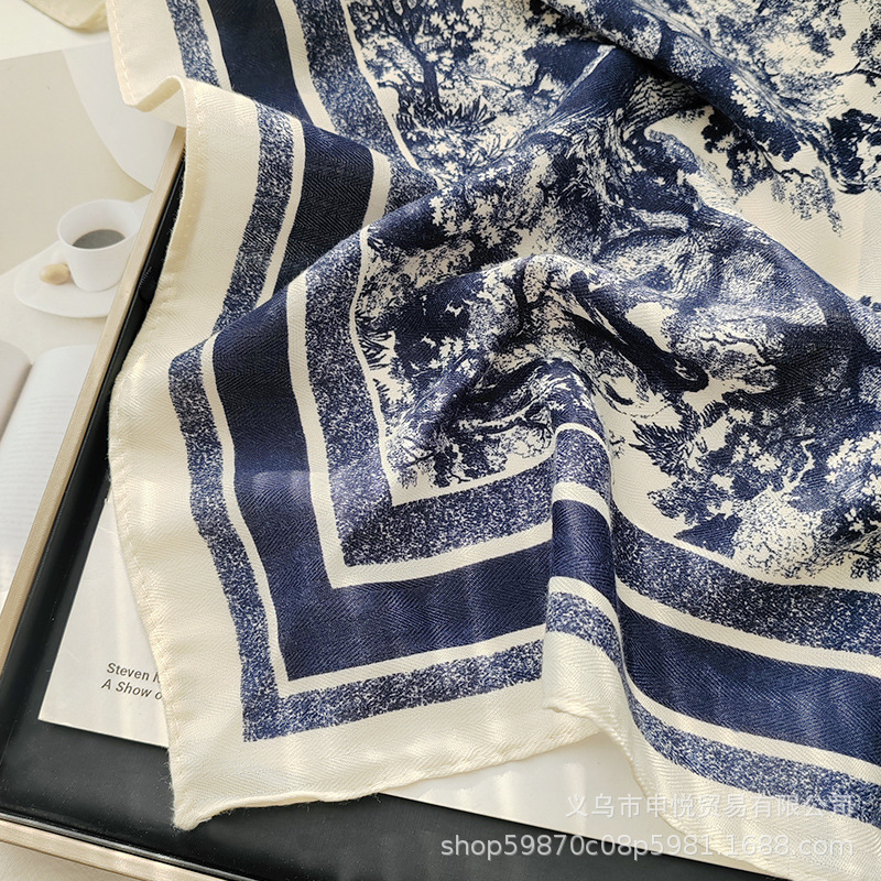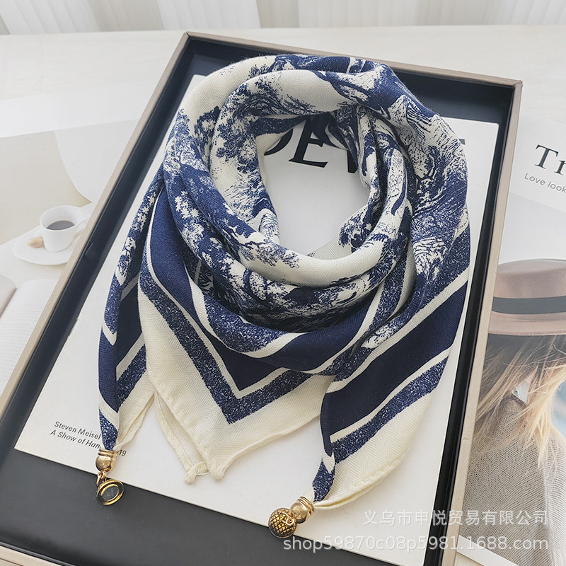 가을과 겨울 새로운 광장 스카프 마그네틱 버클 헤링본 패턴 면 린넨 핸드 프린트 스카프 유행 세련된 올 매치 스카프 여성스토어 가기