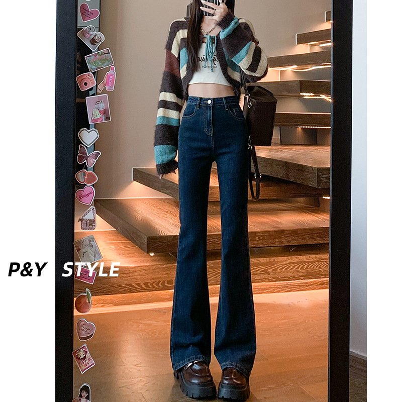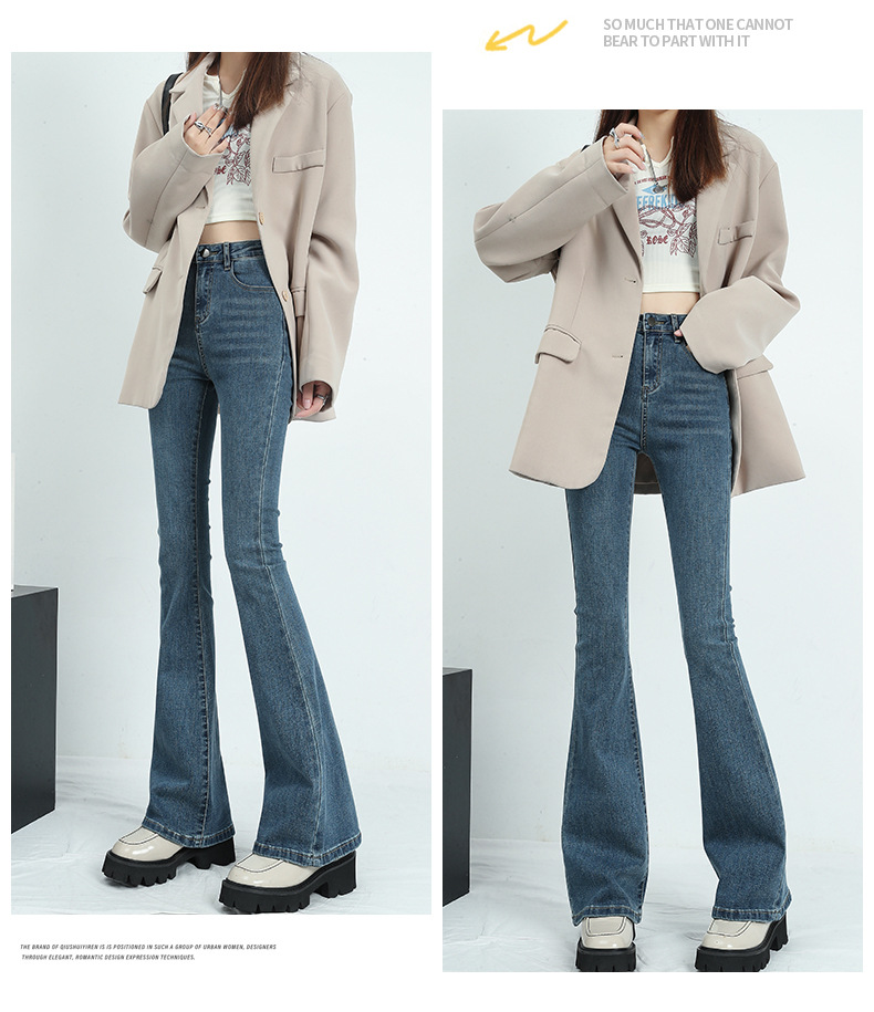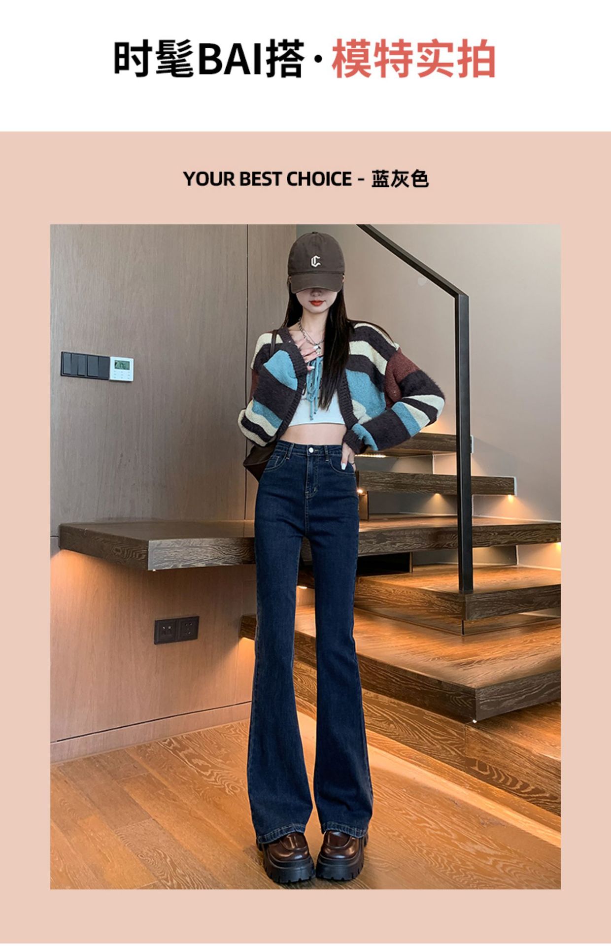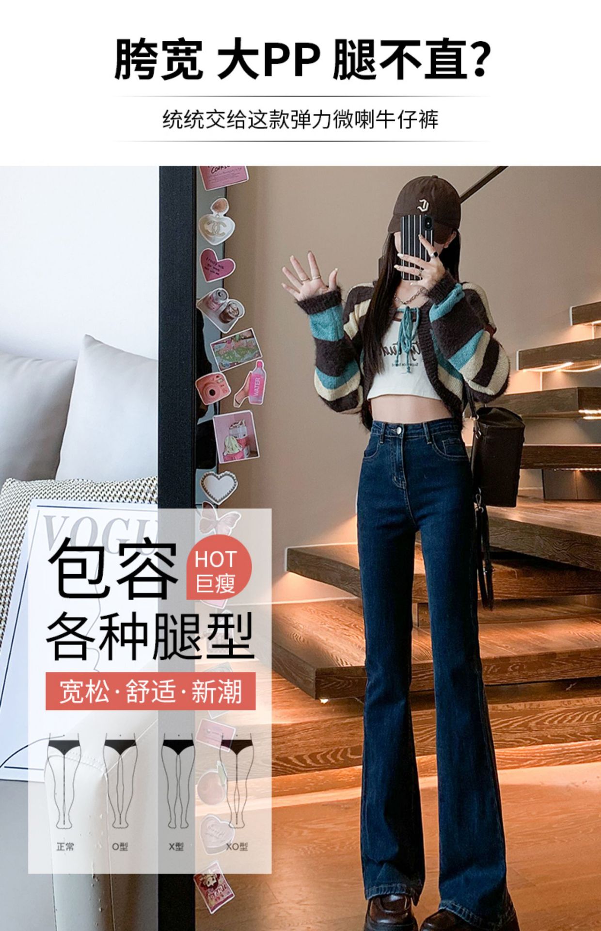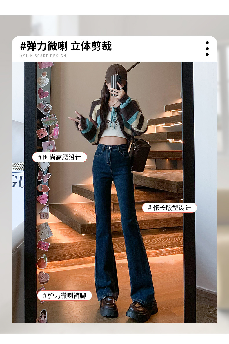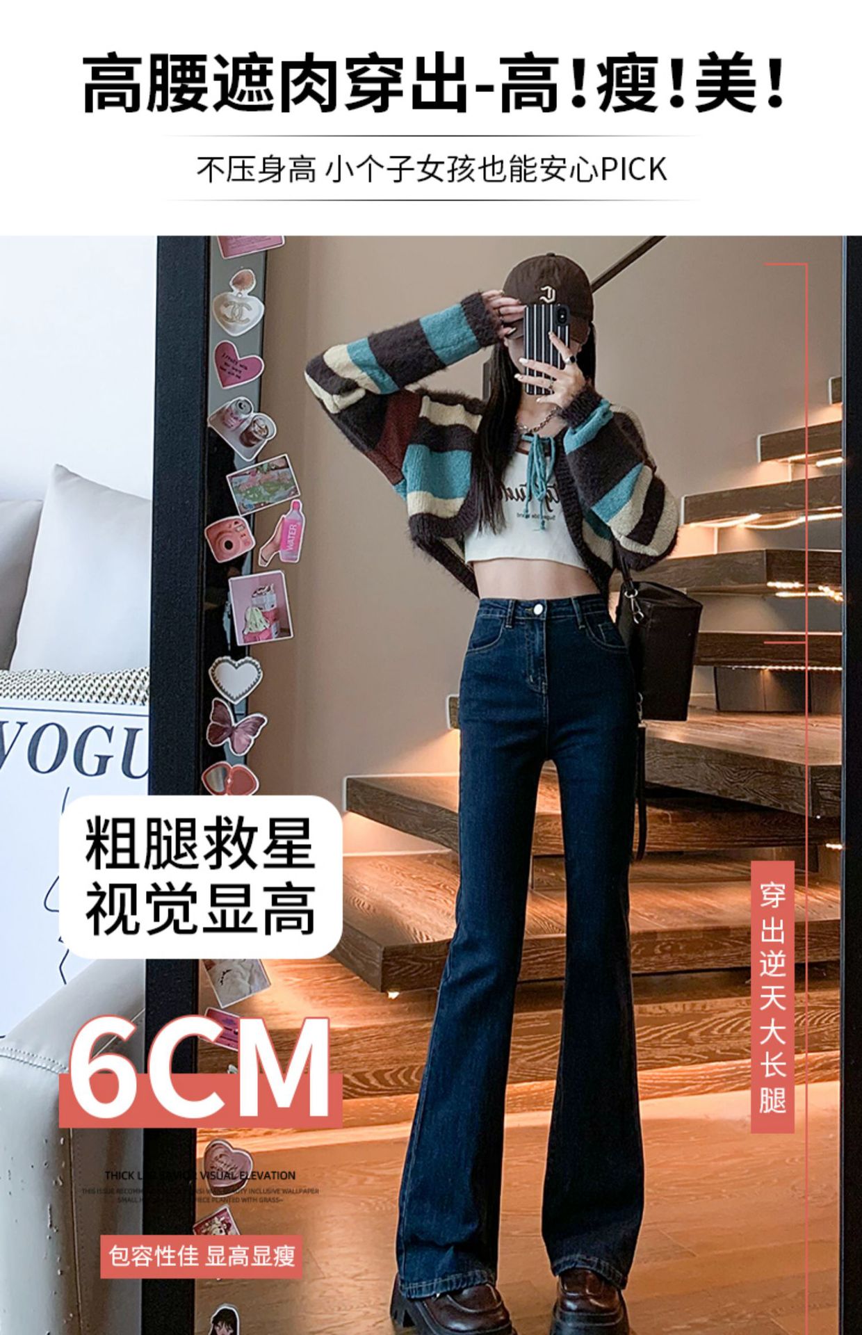 높은 허리 마이크로 플레어 청바지 여성의 2024 년 새로운 가을 및 겨울 슬림 핏 슬리밍 작은 폭발 말굽 걸레 바지스토어 가기