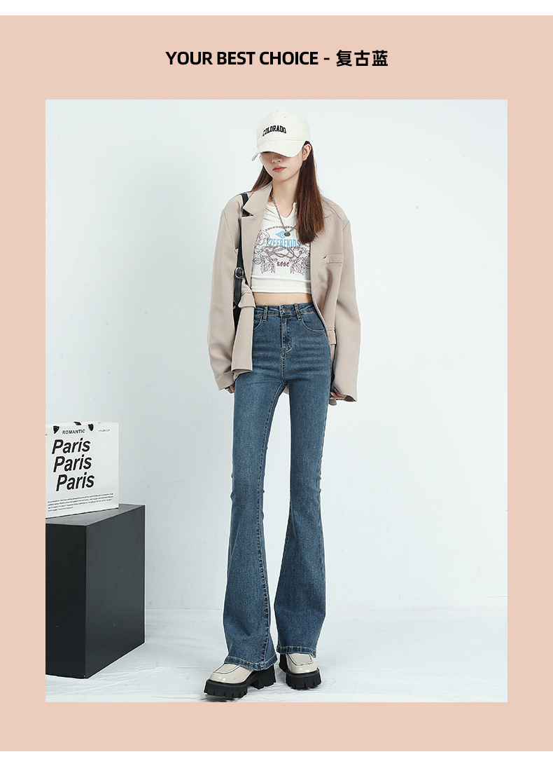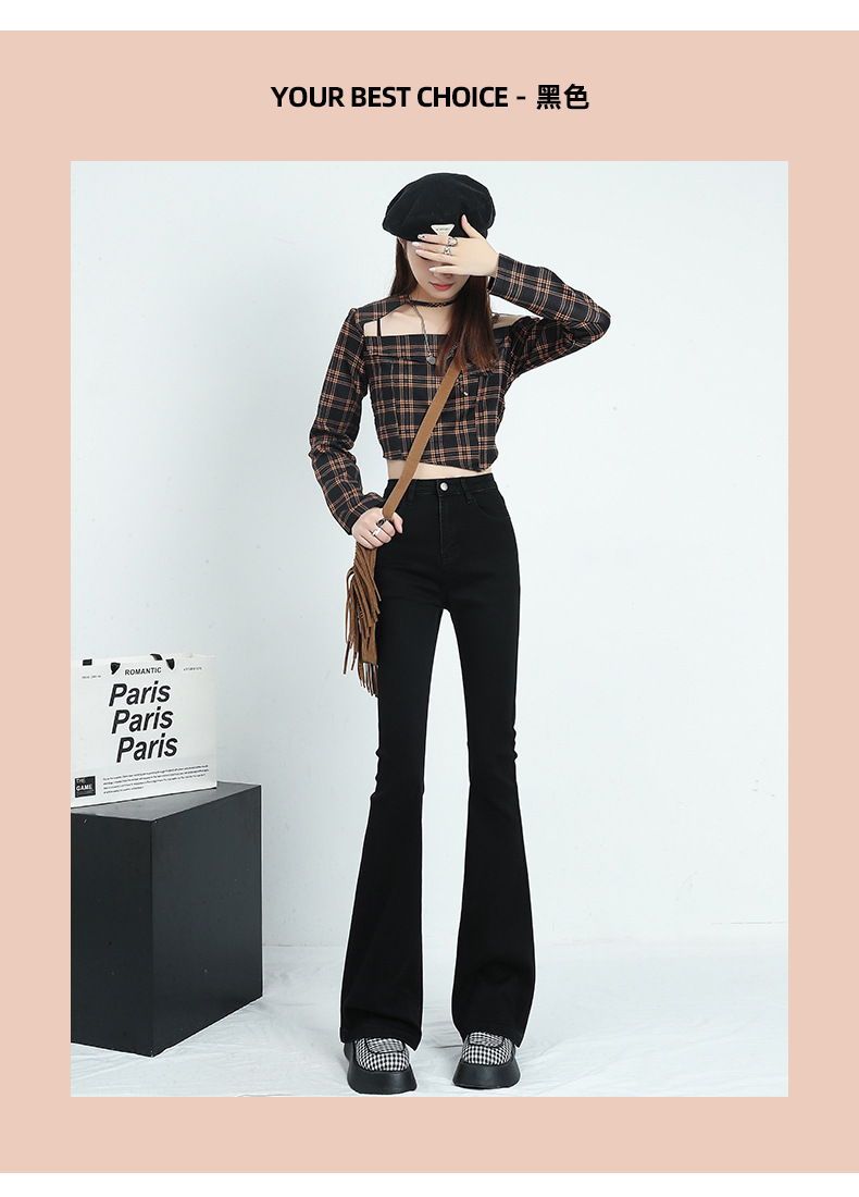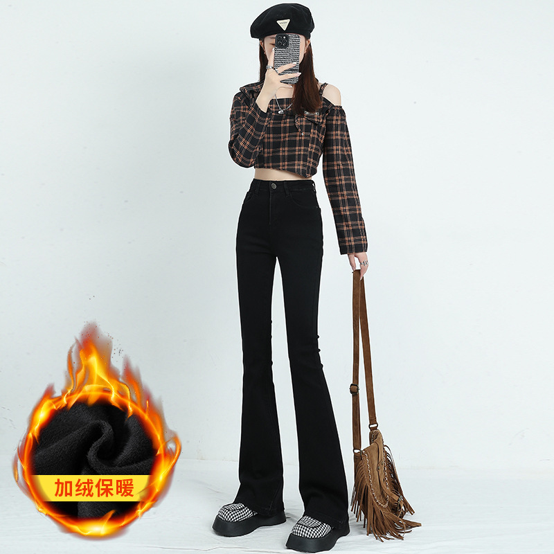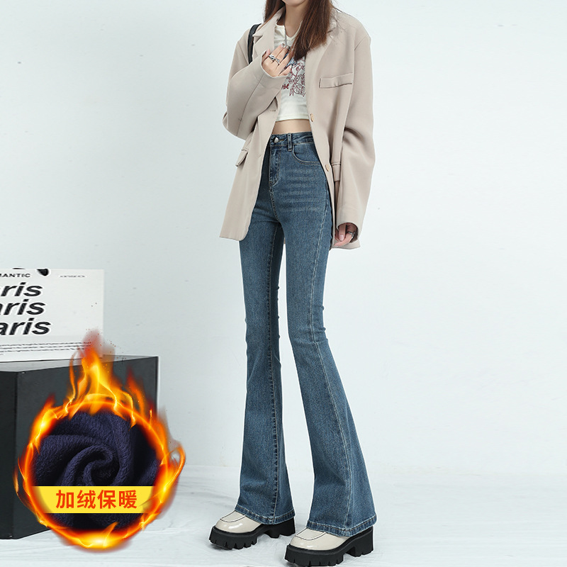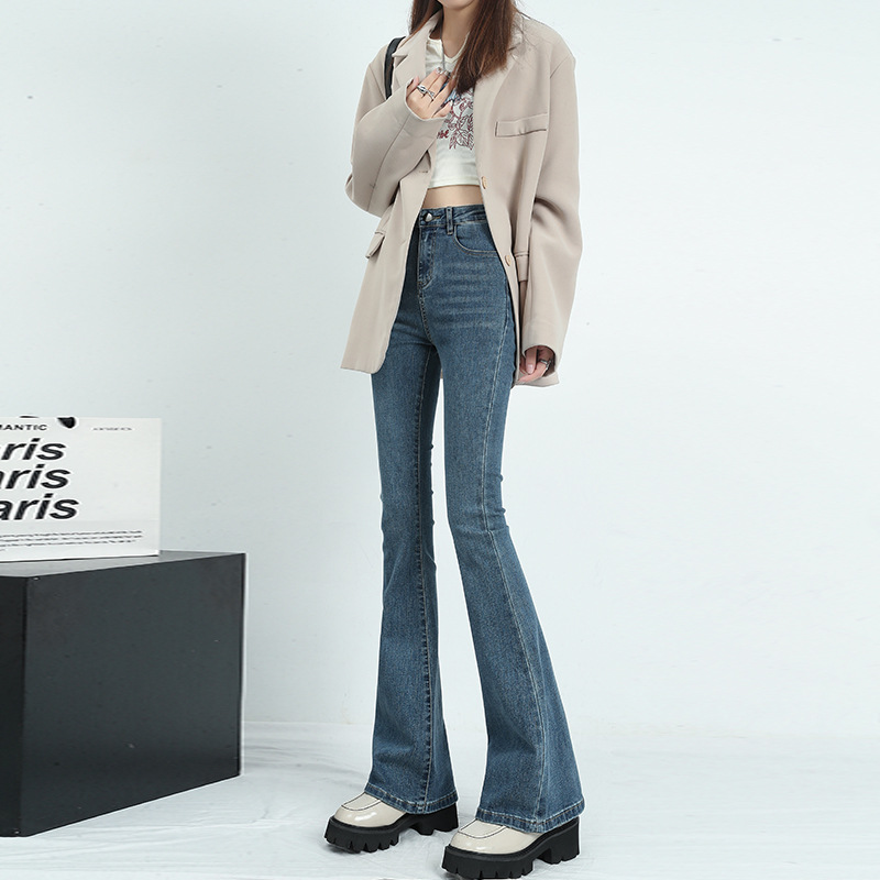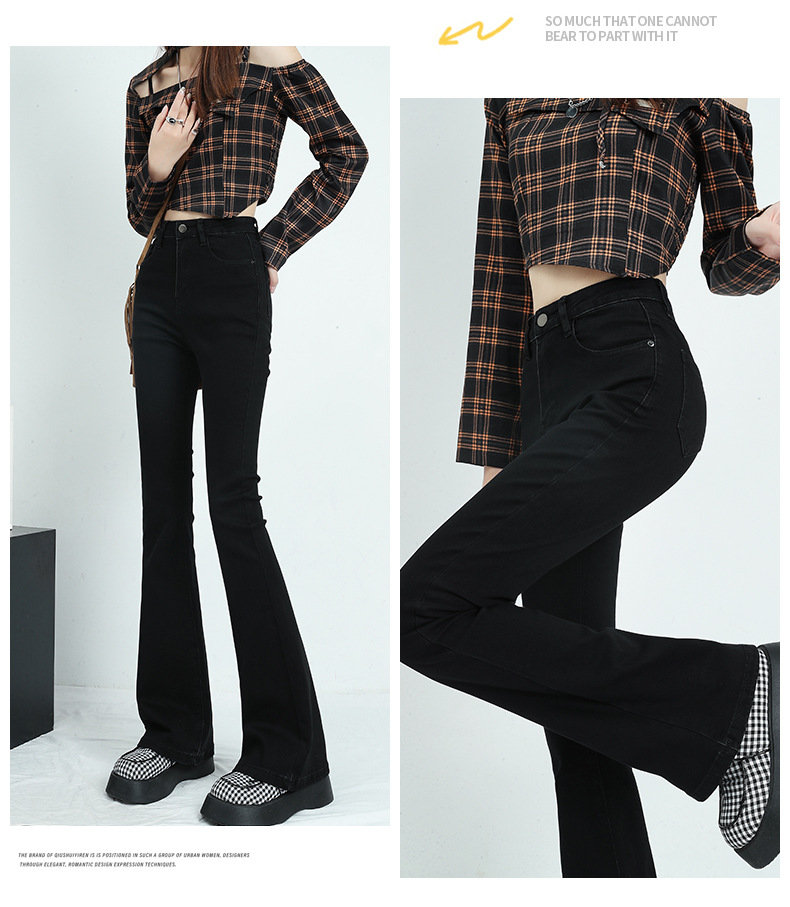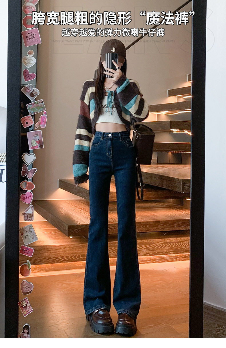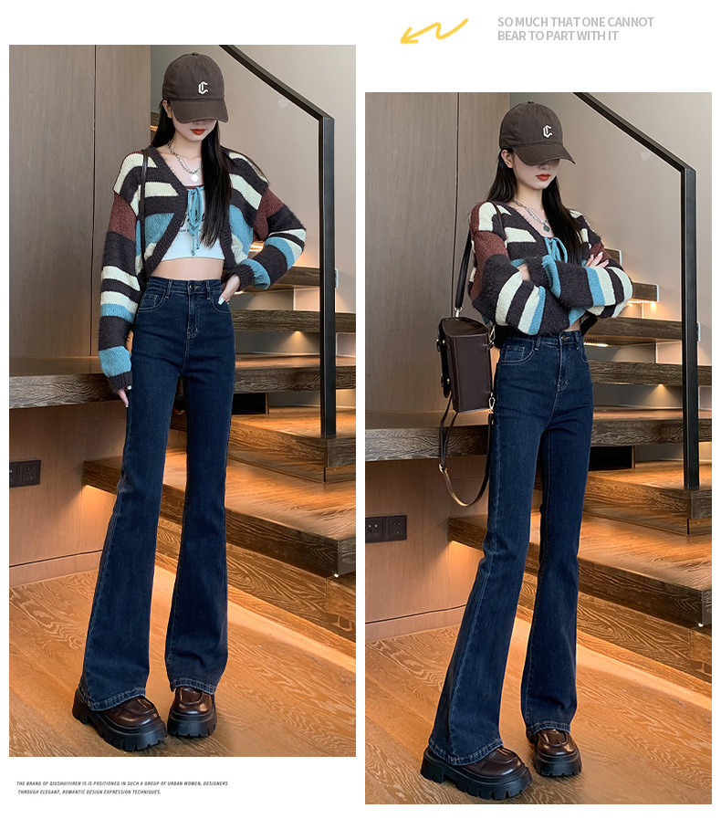 높은 허리 마이크로 플레어 청바지 여성의 2024 년 새로운 가을 및 겨울 슬림 핏 슬리밍 작은 폭발 말굽 걸레 바지스토어 가기