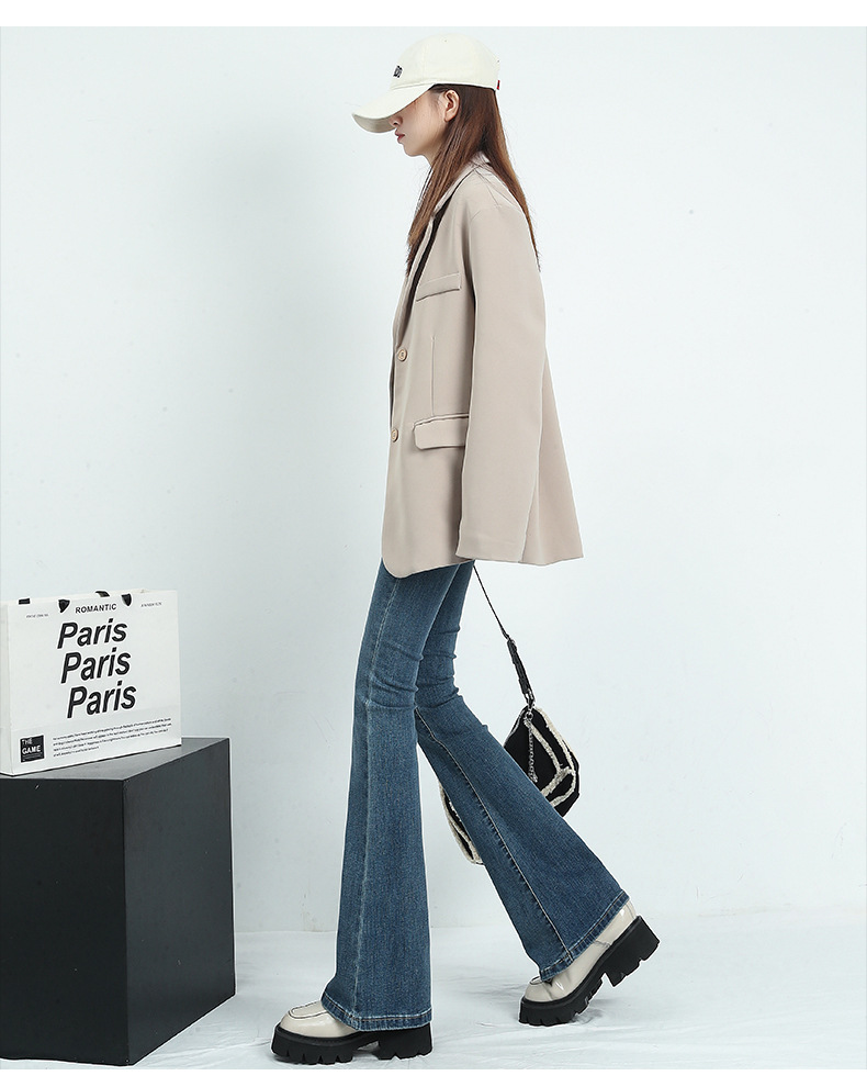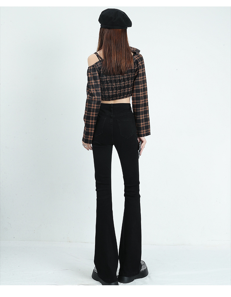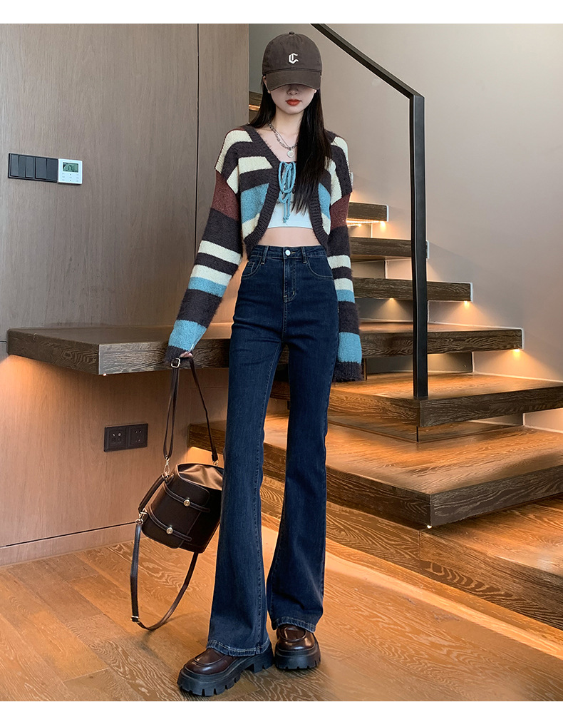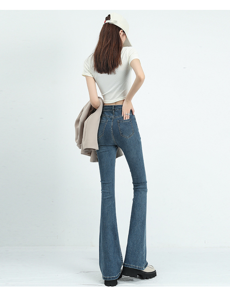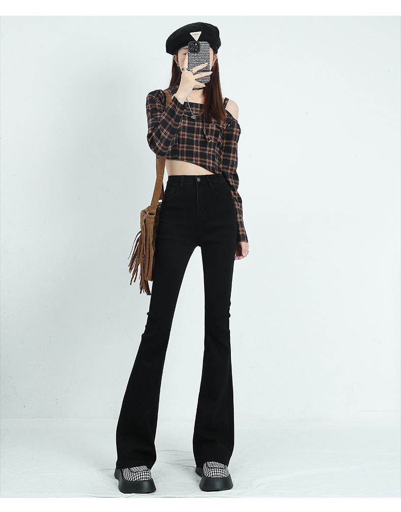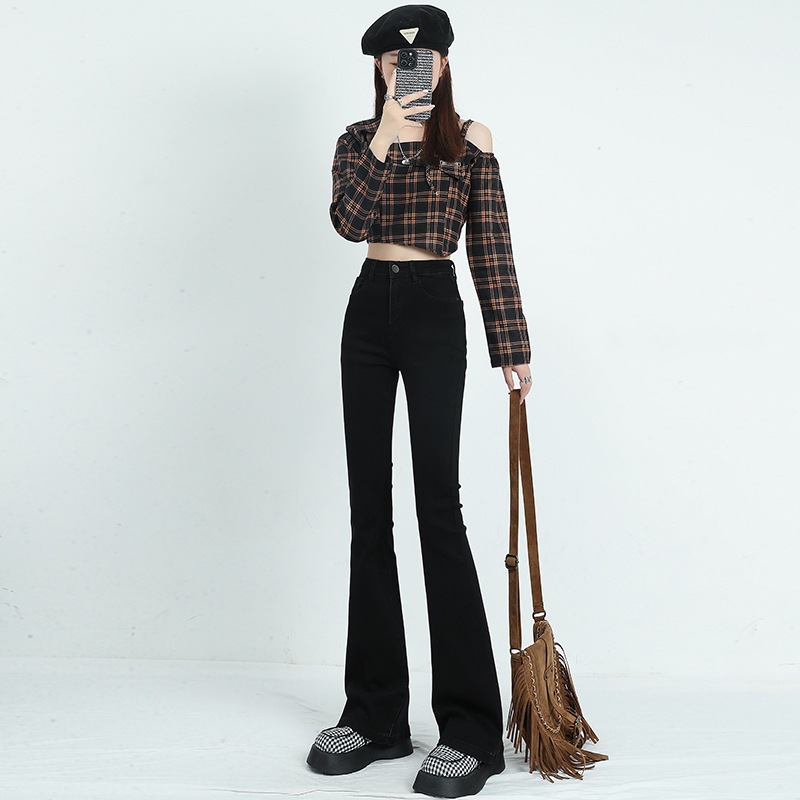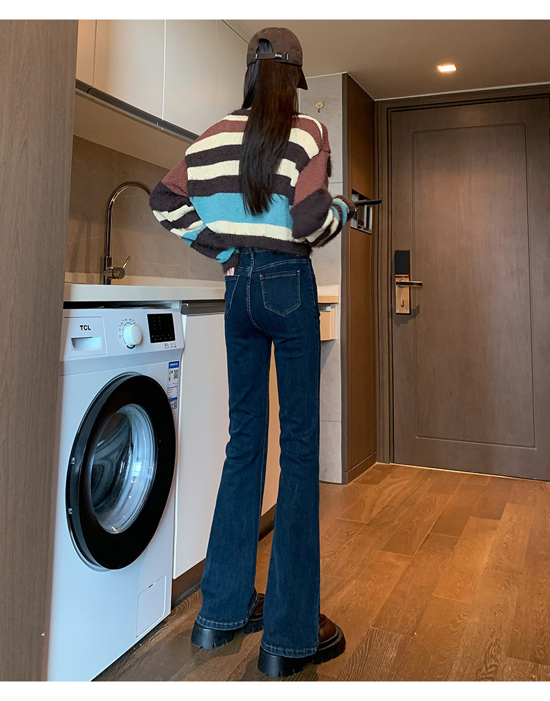 높은 허리 마이크로 플레어 청바지 여성의 2024 년 새로운 가을 및 겨울 슬림 핏 슬리밍 작은 폭발 말굽 걸레 바지스토어 가기