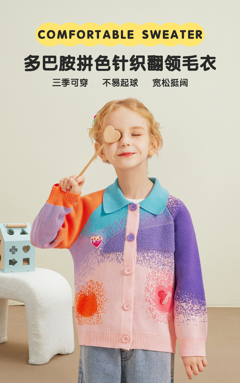 가을과 겨울 소녀 옷깃 카디건 도파민 컬러 블록 니트웨어 따뜻한 스웨터 코트 어린이 더블 레이어 스웨터스토어 가기