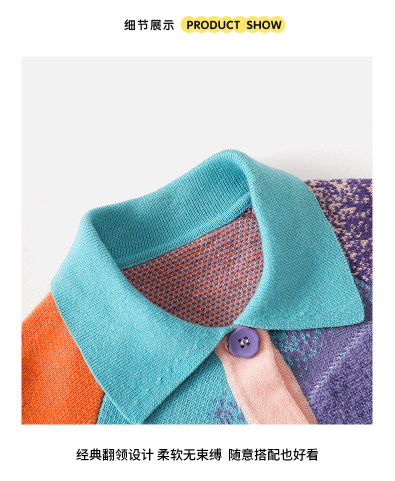 가을과 겨울 소녀 옷깃 카디건 도파민 컬러 블록 니트웨어 따뜻한 스웨터 코트 어린이 더블 레이어 스웨터