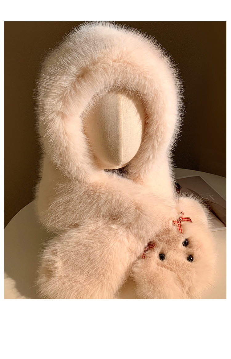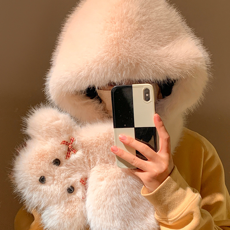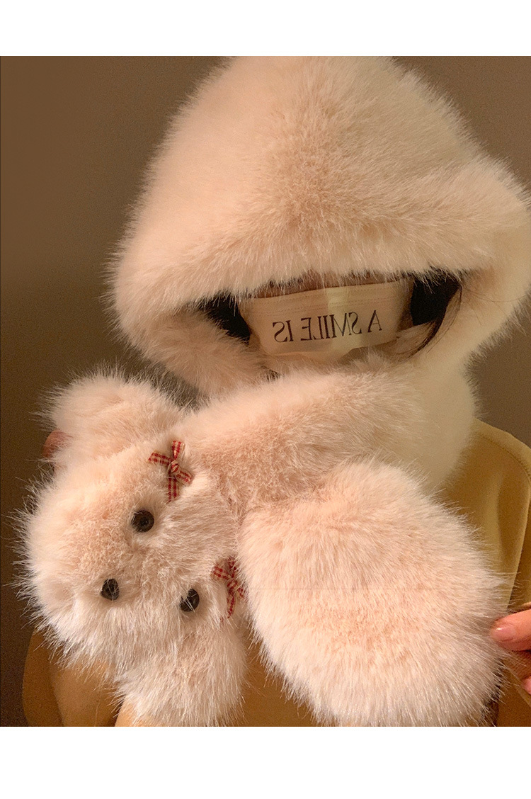 달콤하고 귀여운 강아지 봉제 모자와 스카프 통합 여성의 가을과 겨울 2024 따뜻한 한랭 얼굴 작은 귀 보호 모자