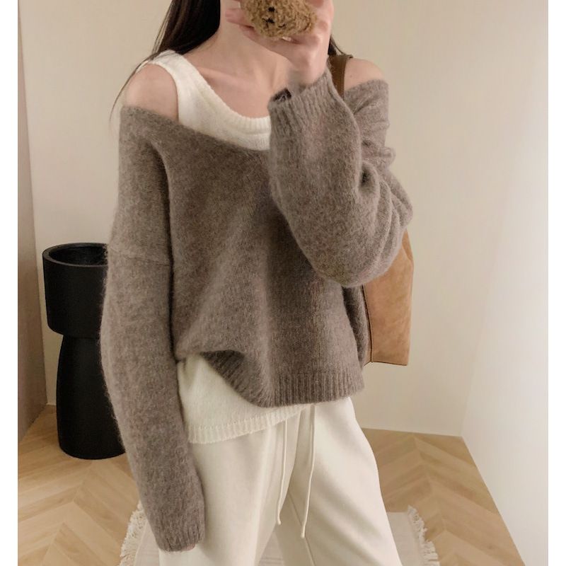 YUNSHU 크루 넥 풀오버 스웨터 여성 투피스 가을과 겨울 새로운 한국 세트 느슨한 부드러운 왁스 조끼 스웨터스토어 가기