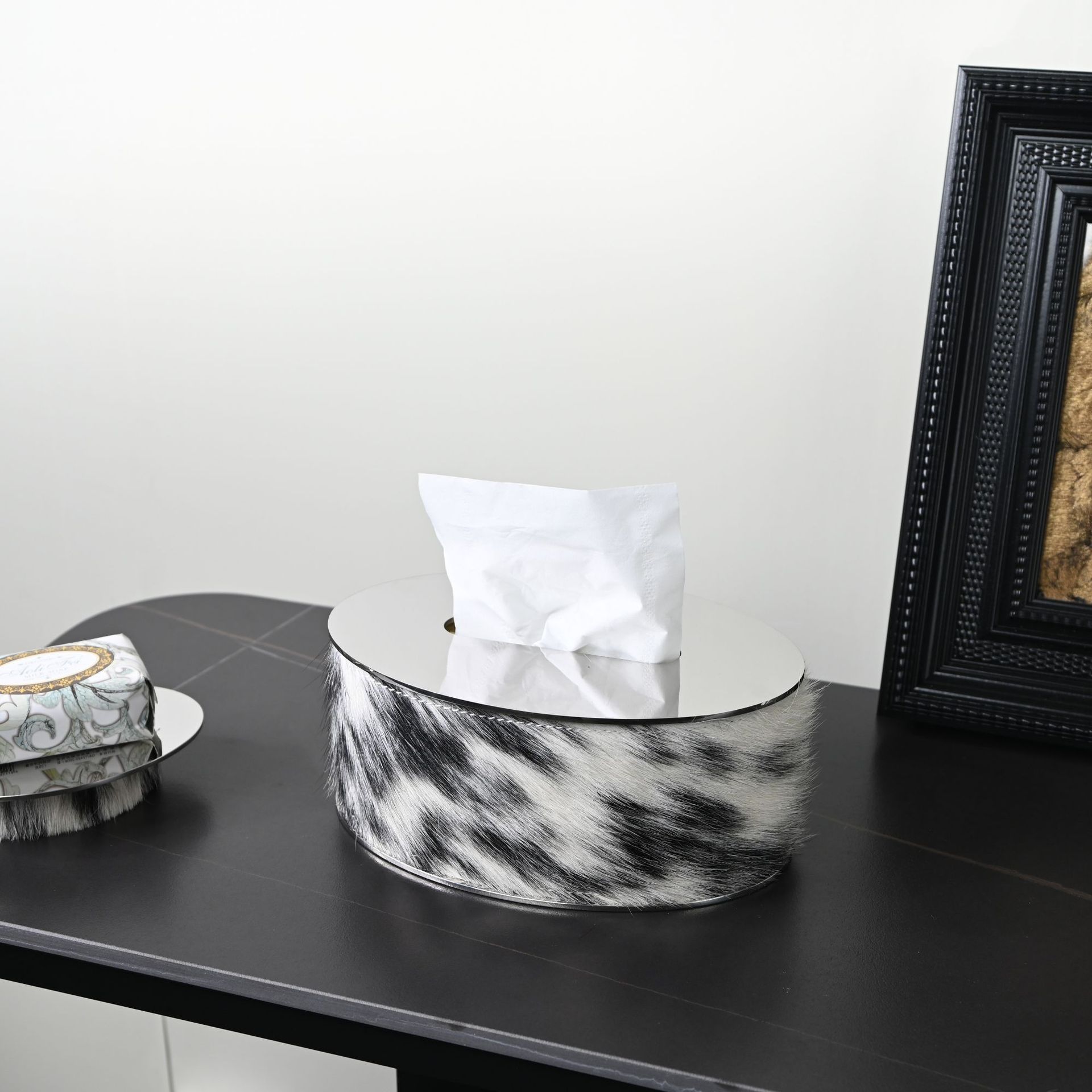 • 그레이 타이거 프린트 말털 스타일 티슈 박스