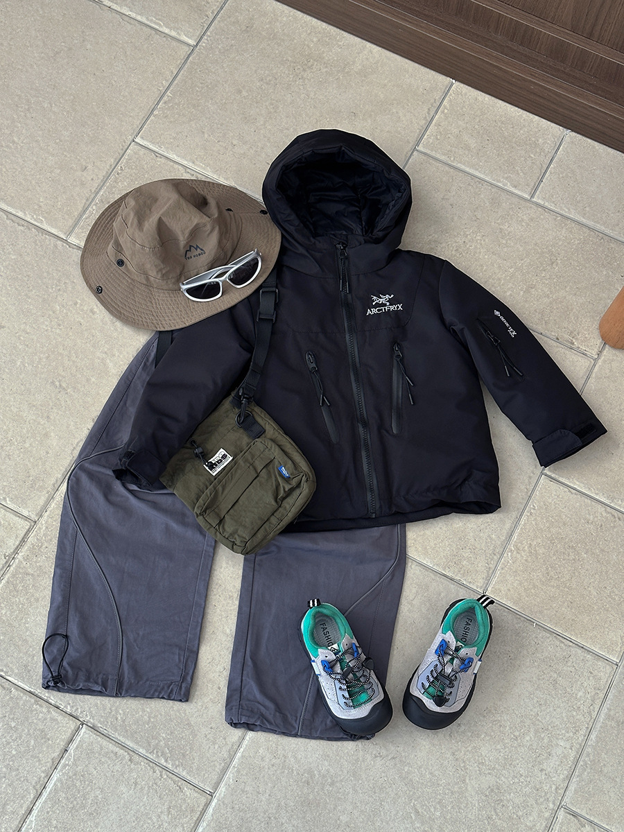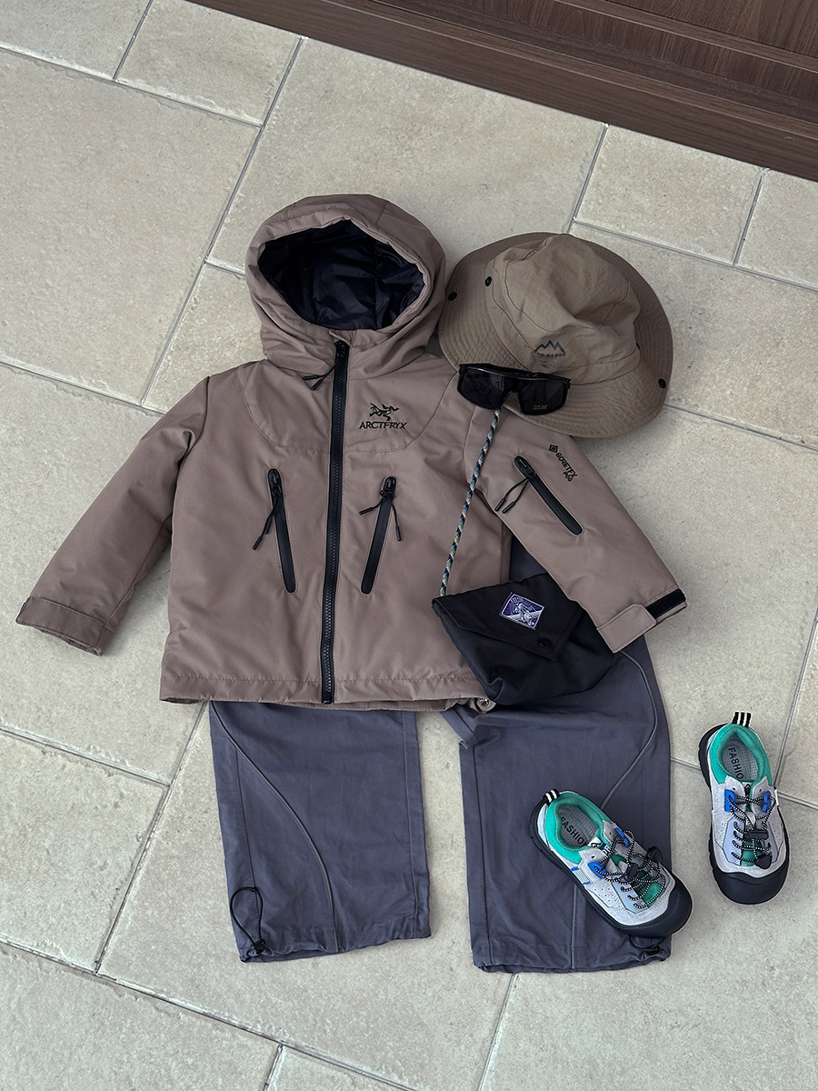 어린이 가을 겨울 방한복, 벨벳 실크 아동복, 남아 여아용 재킷, 비수기 후드 재킷스토어 가기