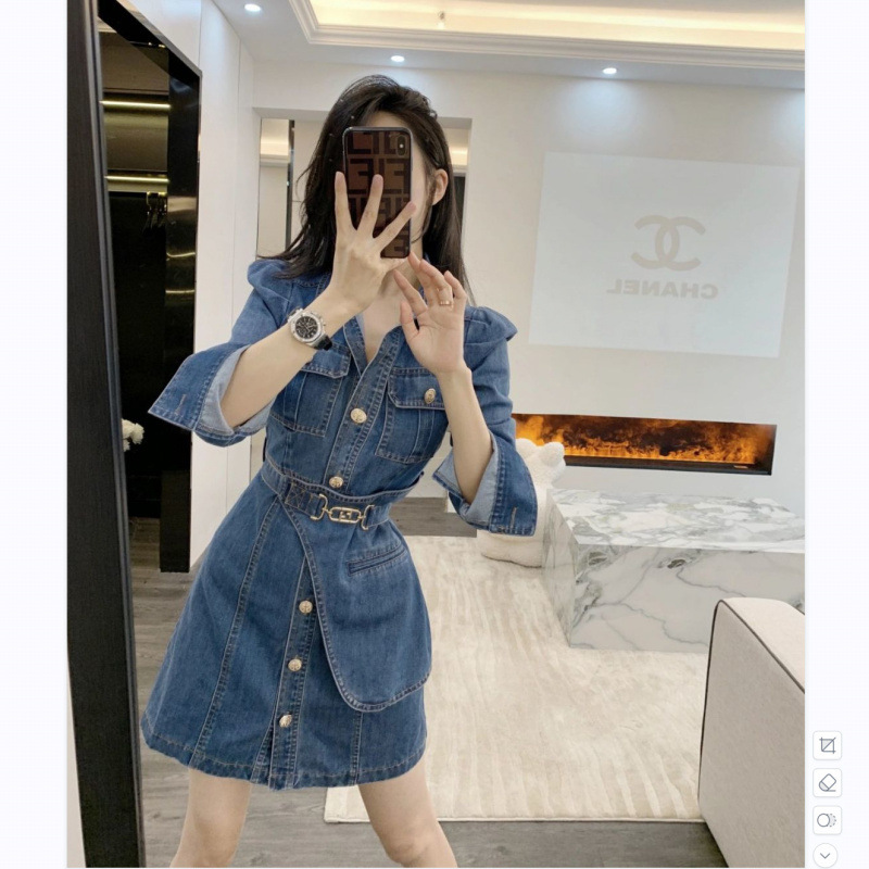 봄과 가을 한국식 레트로 순수 유지에 샤오샹 긴팔 데님 카디건 탑 슬리밍 스커트 투피스 세트스토어 가기