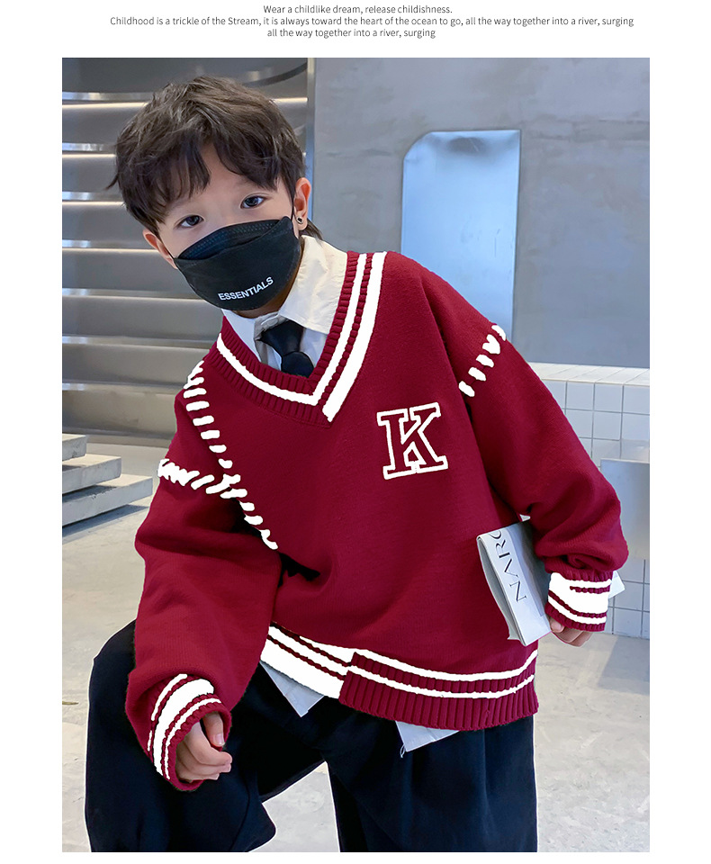어린이 착용 소년의 붉은 스웨터 2024 년 가을 겨울 두껍게 새로운 스타일 큰 소년의 겨울옷 잘 생긴 베이스 셔츠