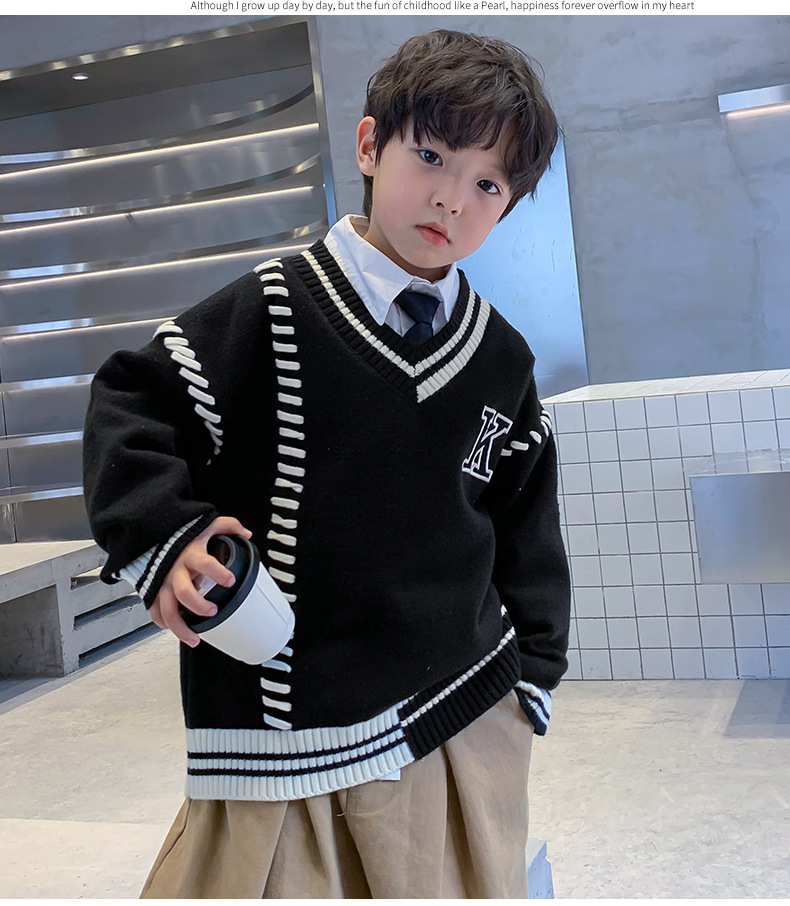 어린이 착용 소년의 붉은 스웨터 2024 년 가을 겨울 두껍게 새로운 스타일 큰 소년의 겨울옷 잘 생긴 베이스 셔츠스토어 가기