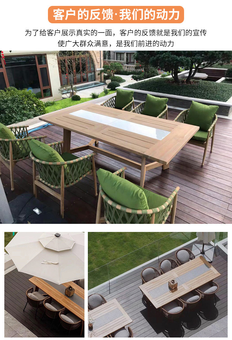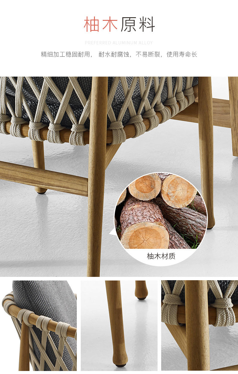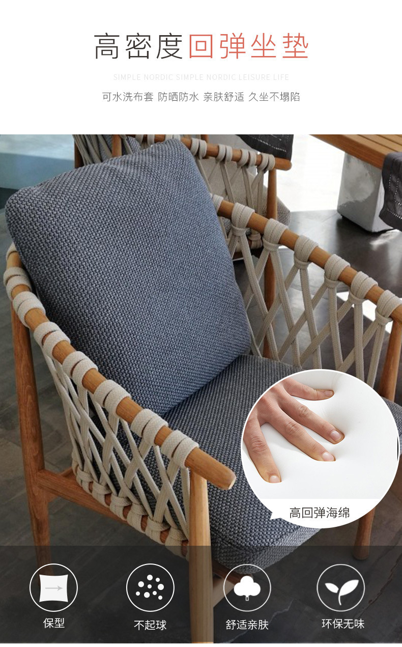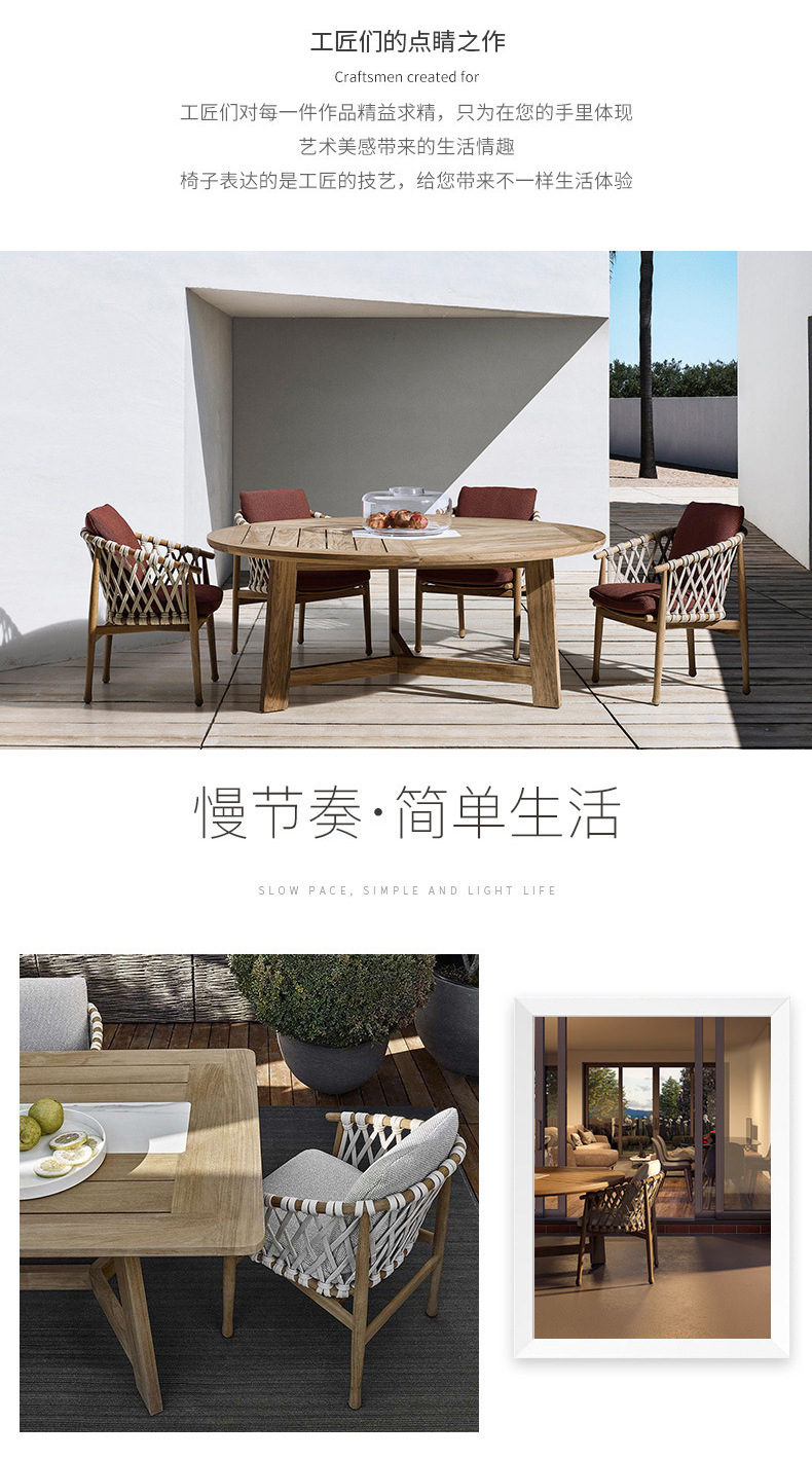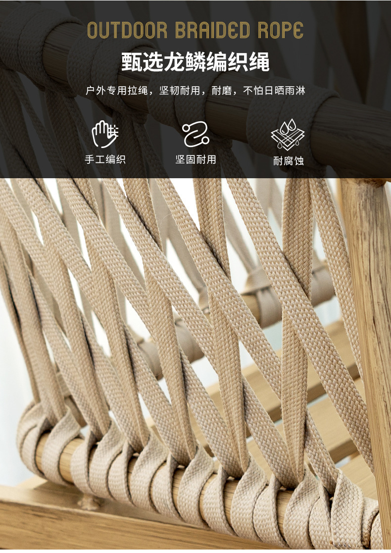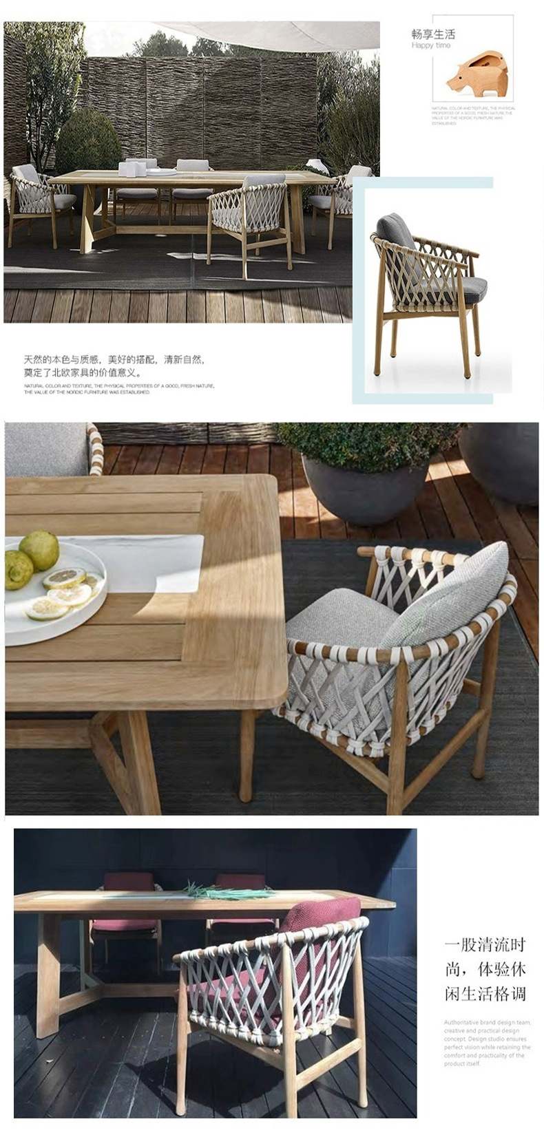 맞춤형 북유럽 야외 티크 테이블과 의자 조합 야외 정원 야외 가구 빌라 안뜰 로프 테이블과 의자