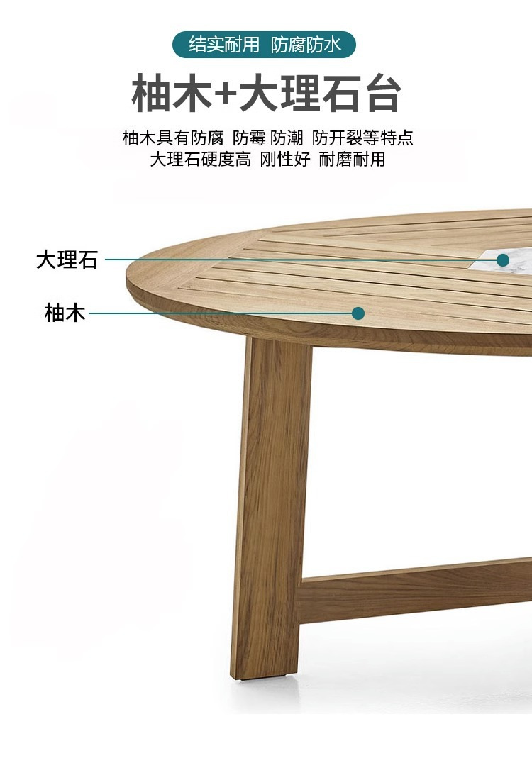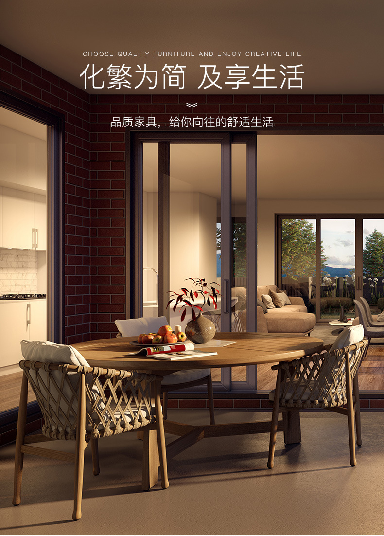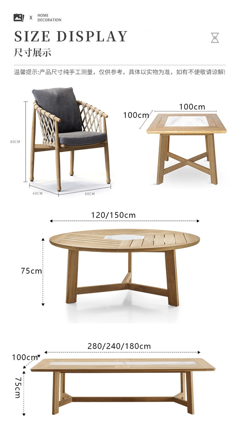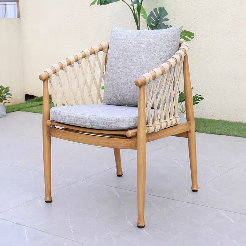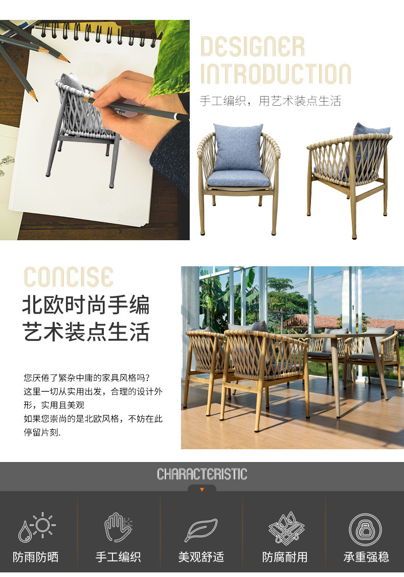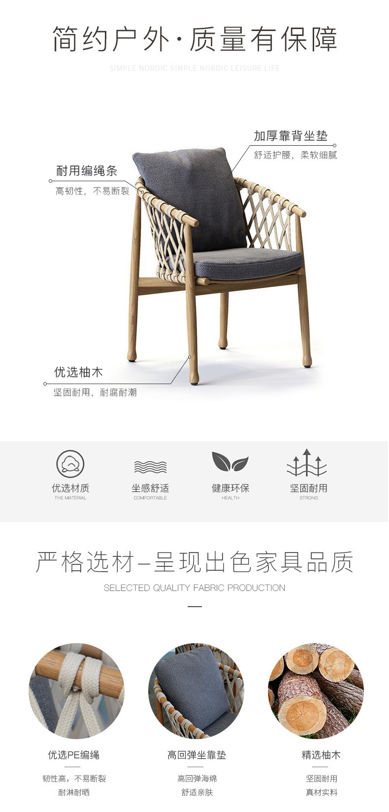 맞춤형 북유럽 야외 티크 테이블과 의자 조합 야외 정원 야외 가구 빌라 안뜰 로프 테이블과 의자