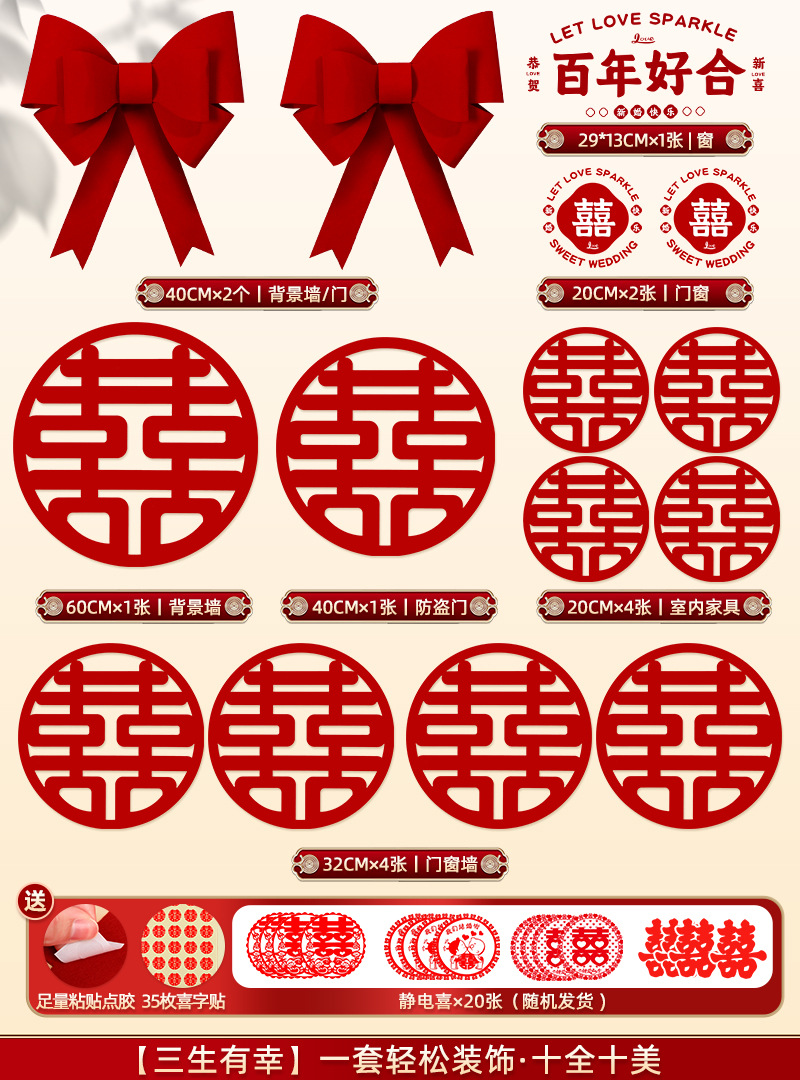 웨딩 스티커 특별한 웨딩 룸 레이아웃 세트 문 작은 글꼴 창 스티커 웨딩 장식 용품