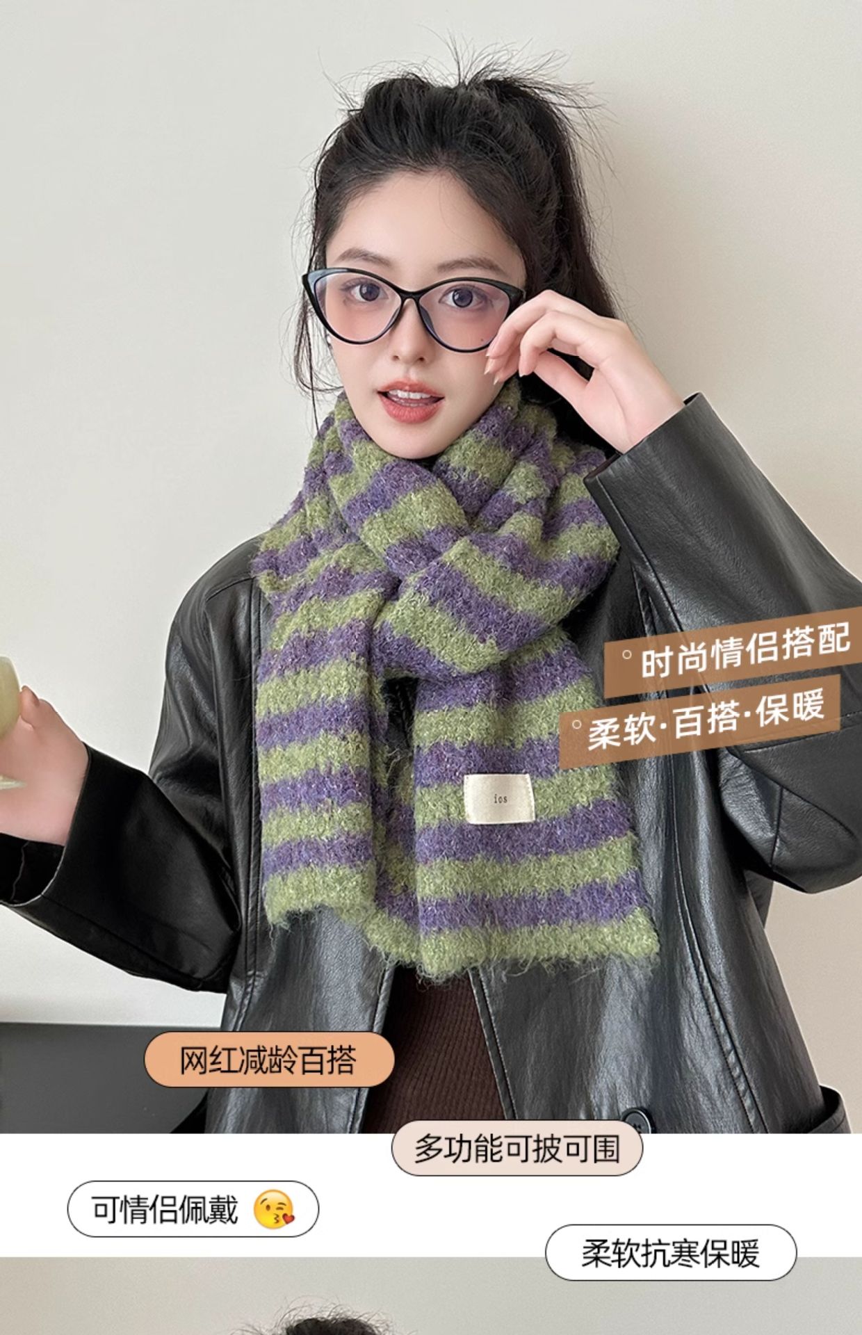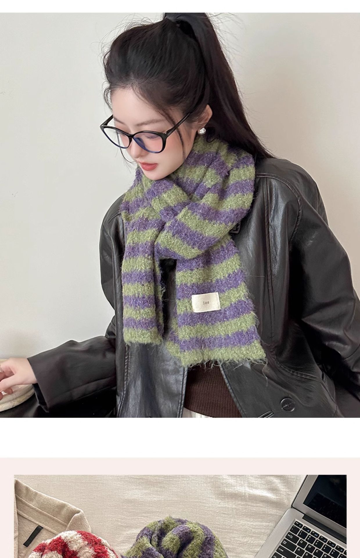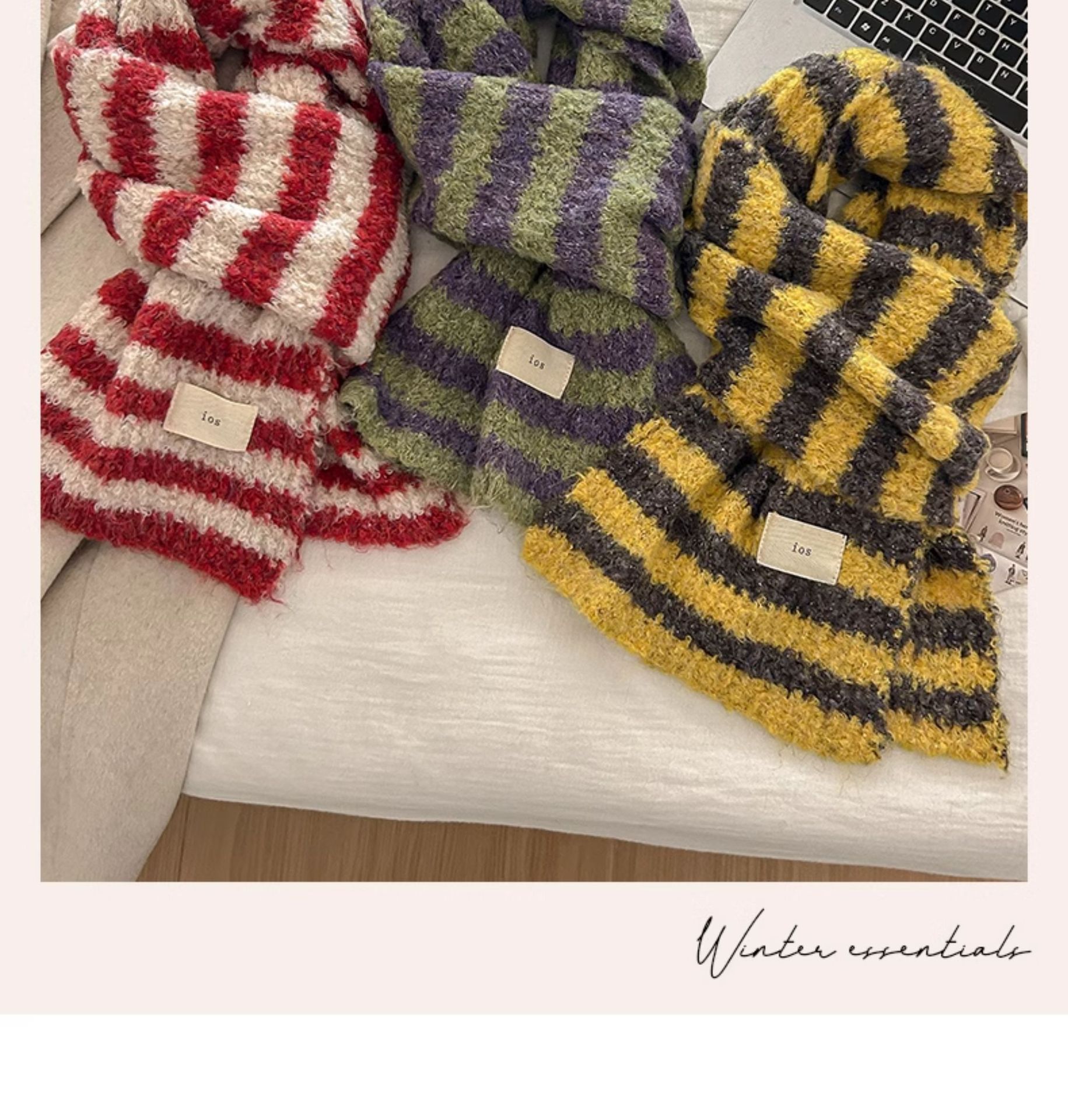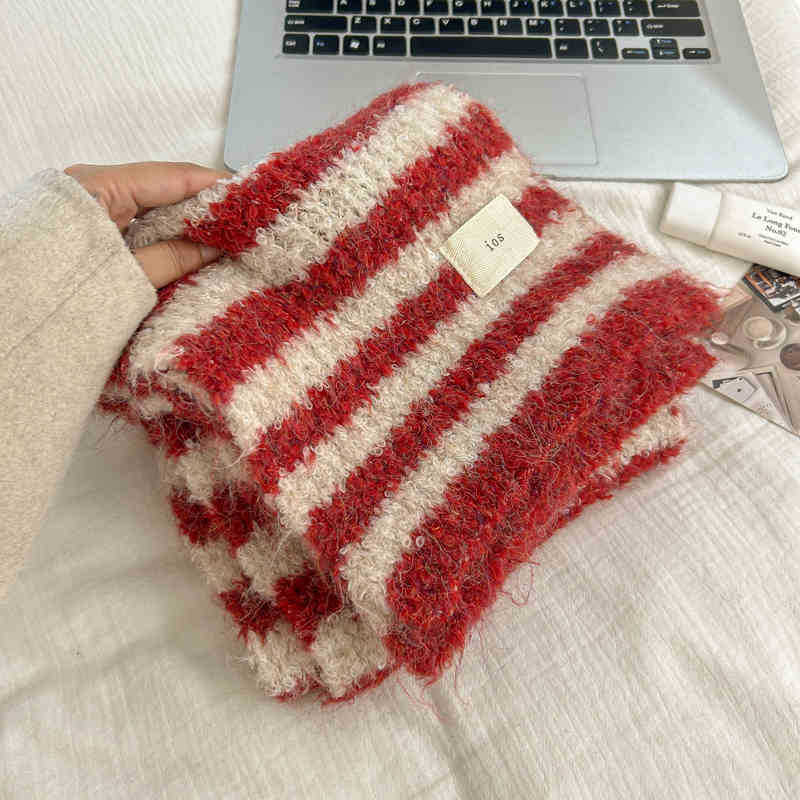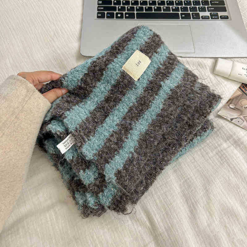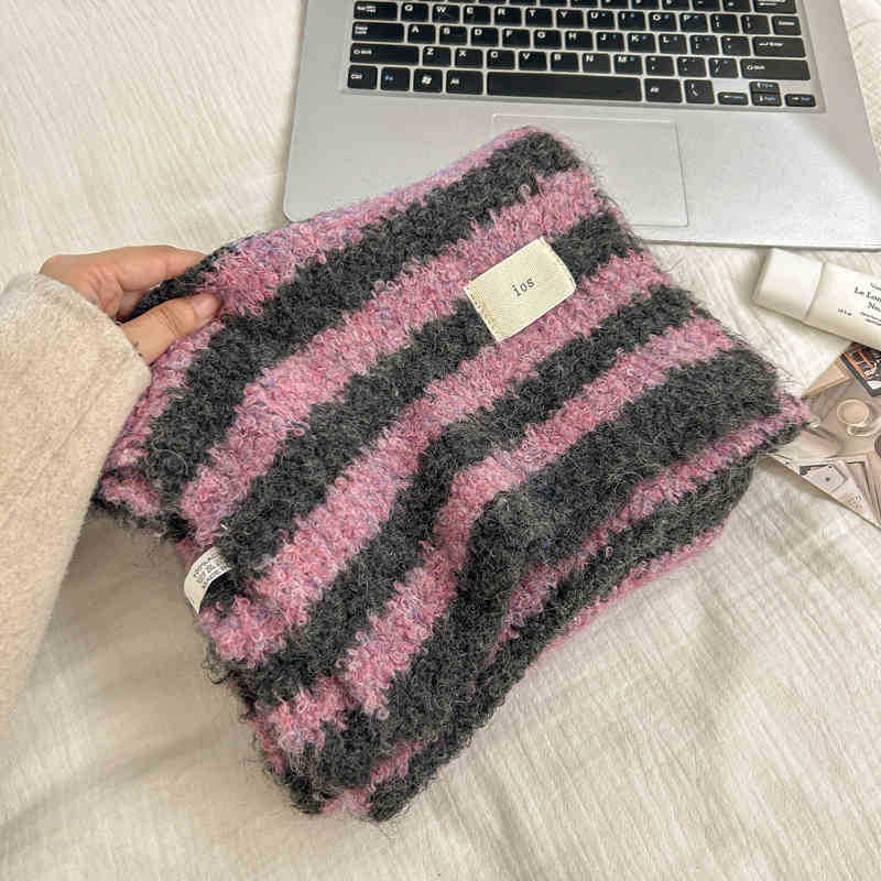 한국 스타일 가을과 겨울 양모 스카프 여성의 따뜻한 Ins 스타일 커플의 빈티지 콘트라스트 컬러 스트라이프 니트 스카프스토어 가기