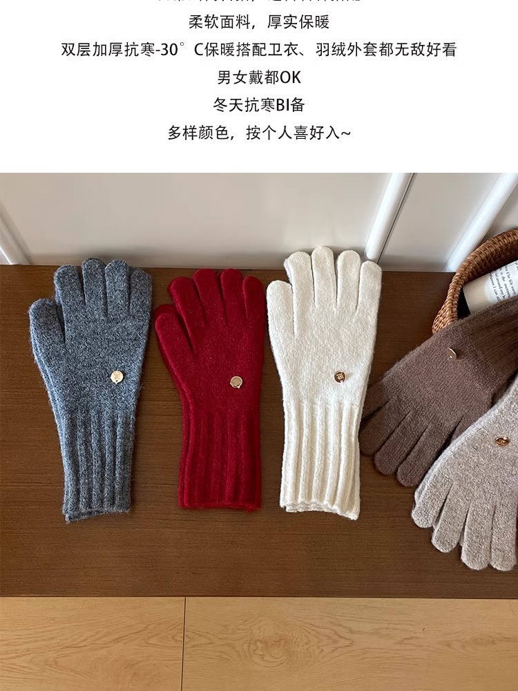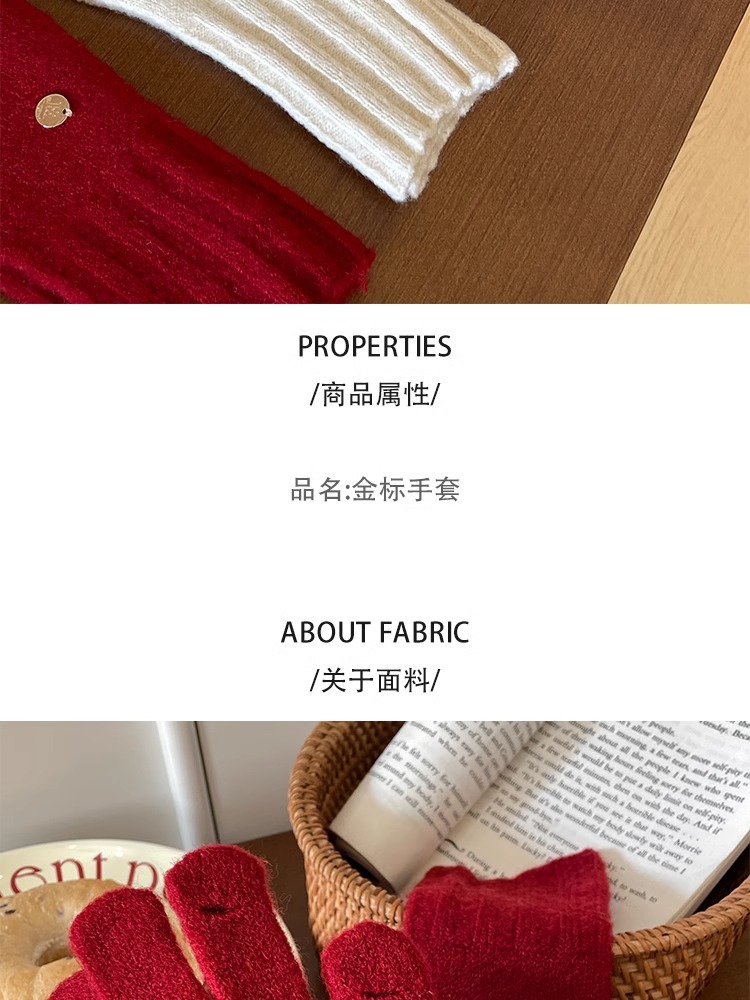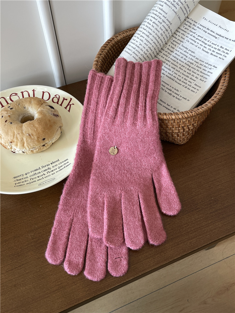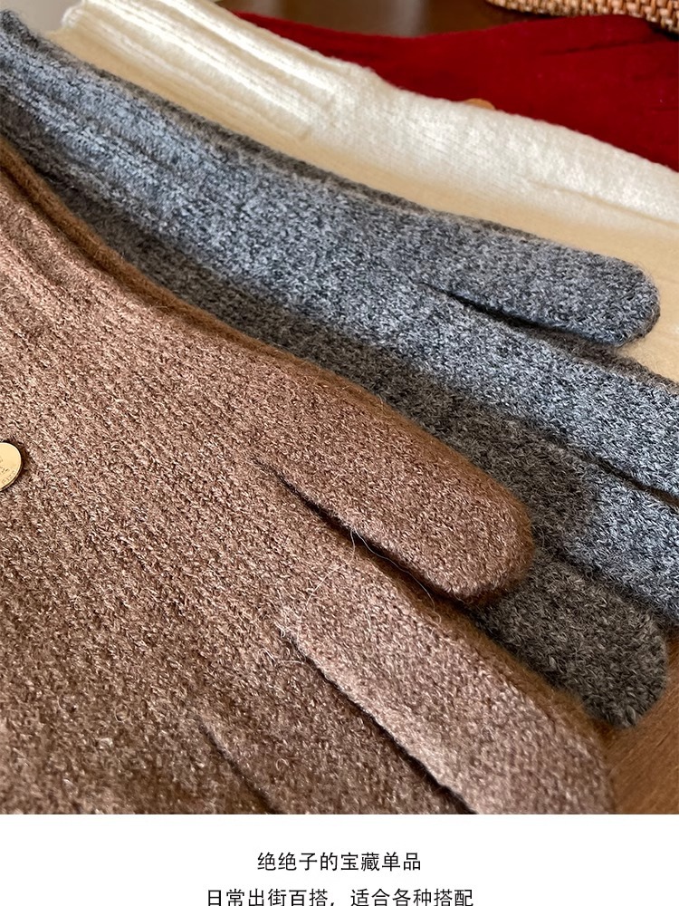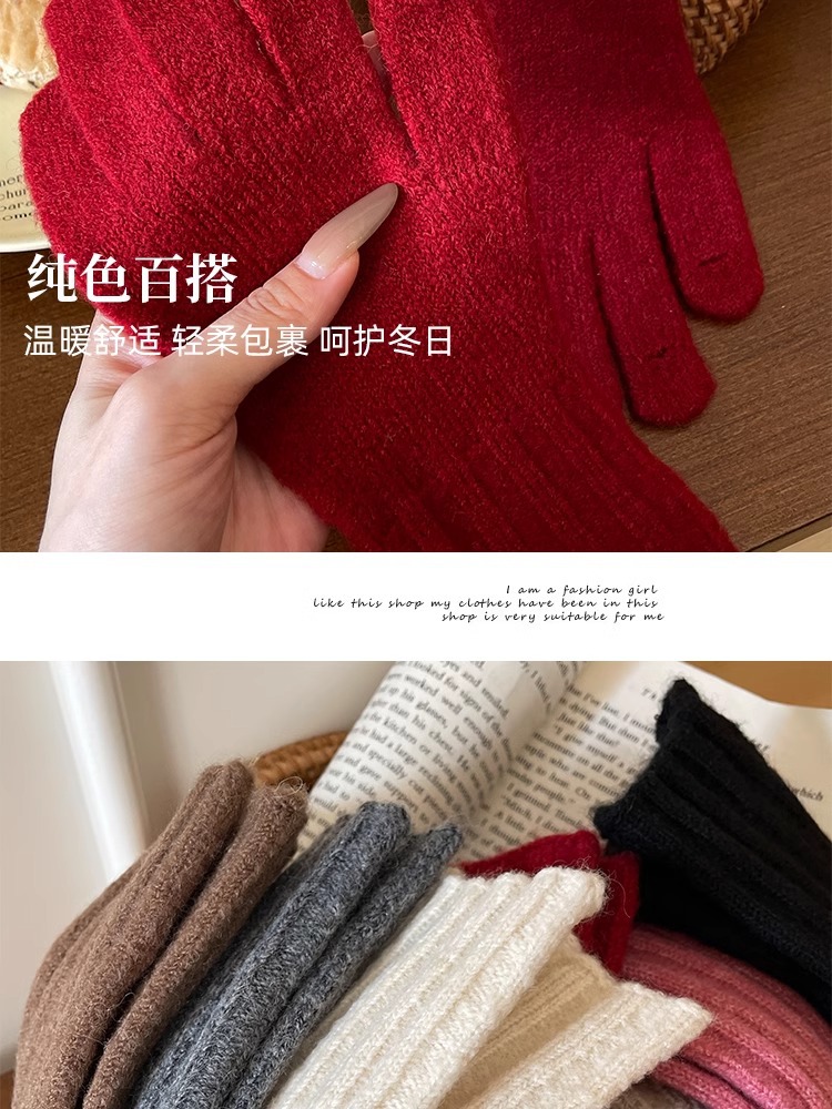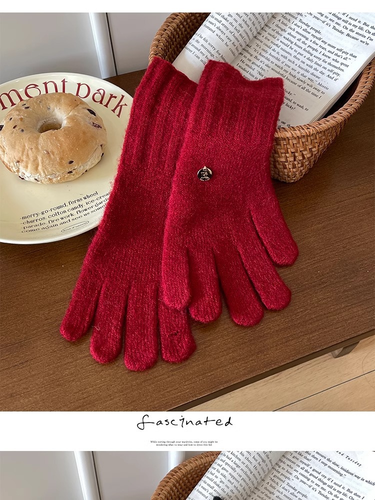한국 스타일 간단한 지구 색 양모 장갑 니트 터치 스크린 장갑 여성의 가을과 겨울 따뜻한 고급 새해 레드 장갑