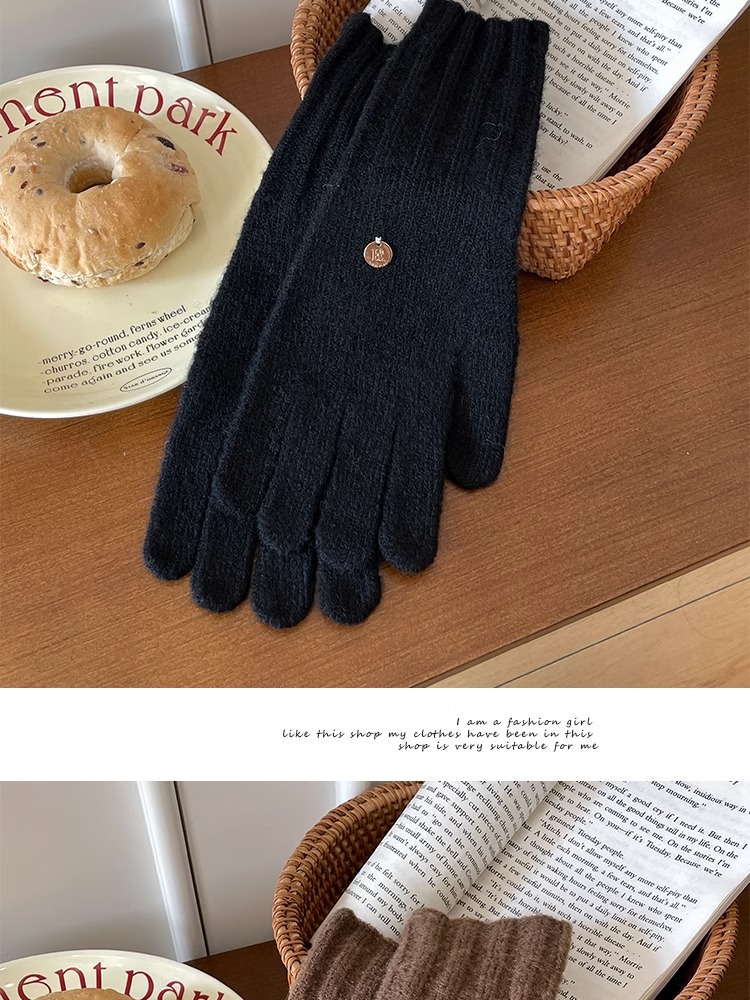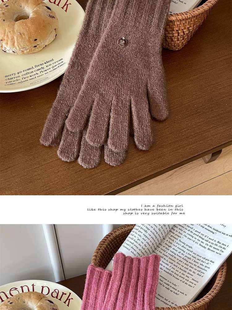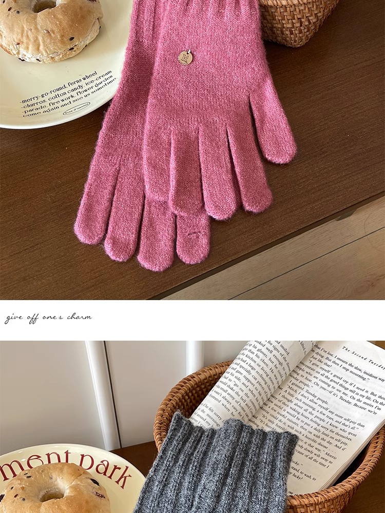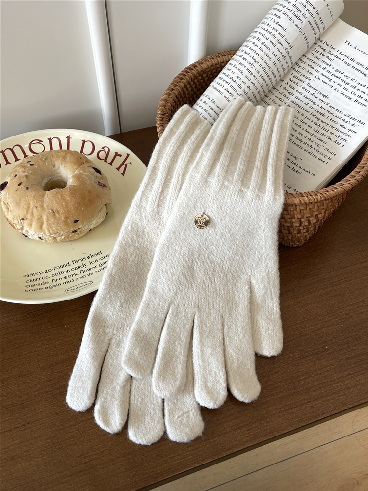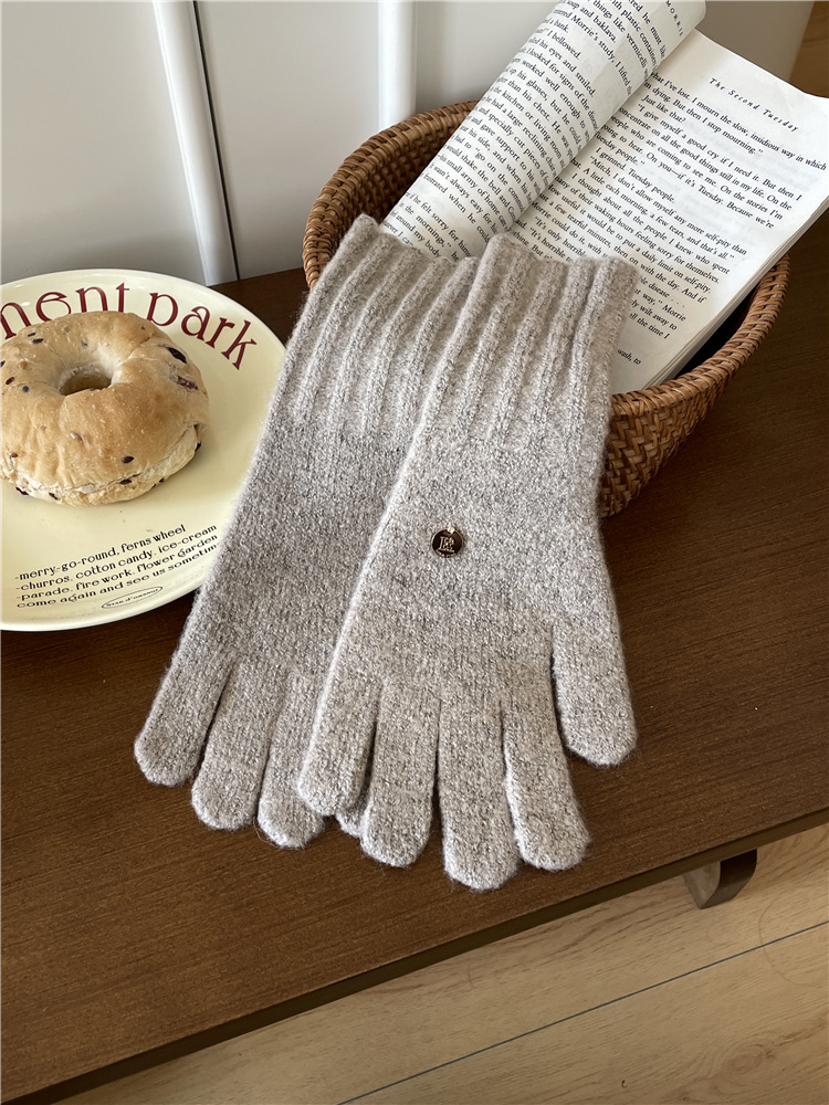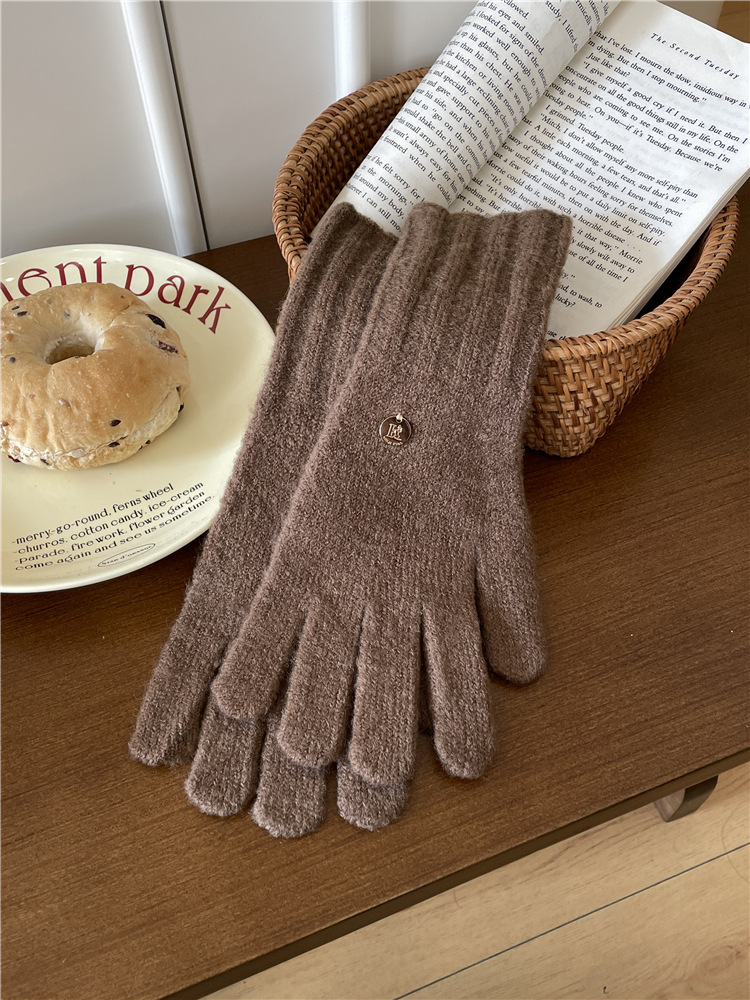 한국 스타일 간단한 지구 색 양모 장갑 니트 터치 스크린 장갑 여성의 가을과 겨울 따뜻한 고급 새해 레드 장갑