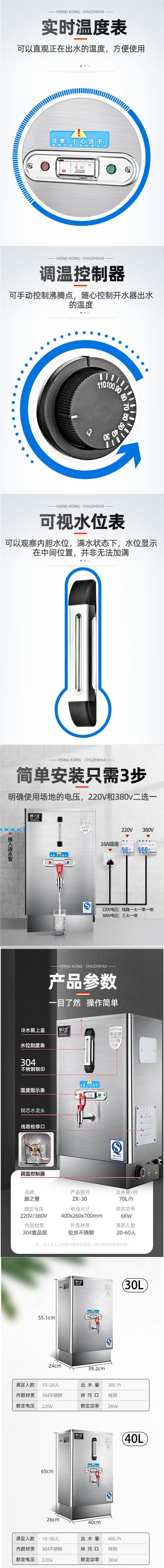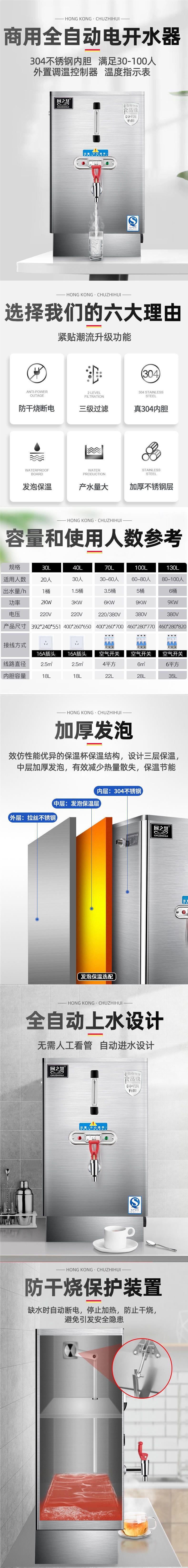요리사 Zhihui 상업용 304 내부 탱크 보일러 자동 전기 열 보일러 대용량 전기 연소 물 탱크 배럴로스토어 가기