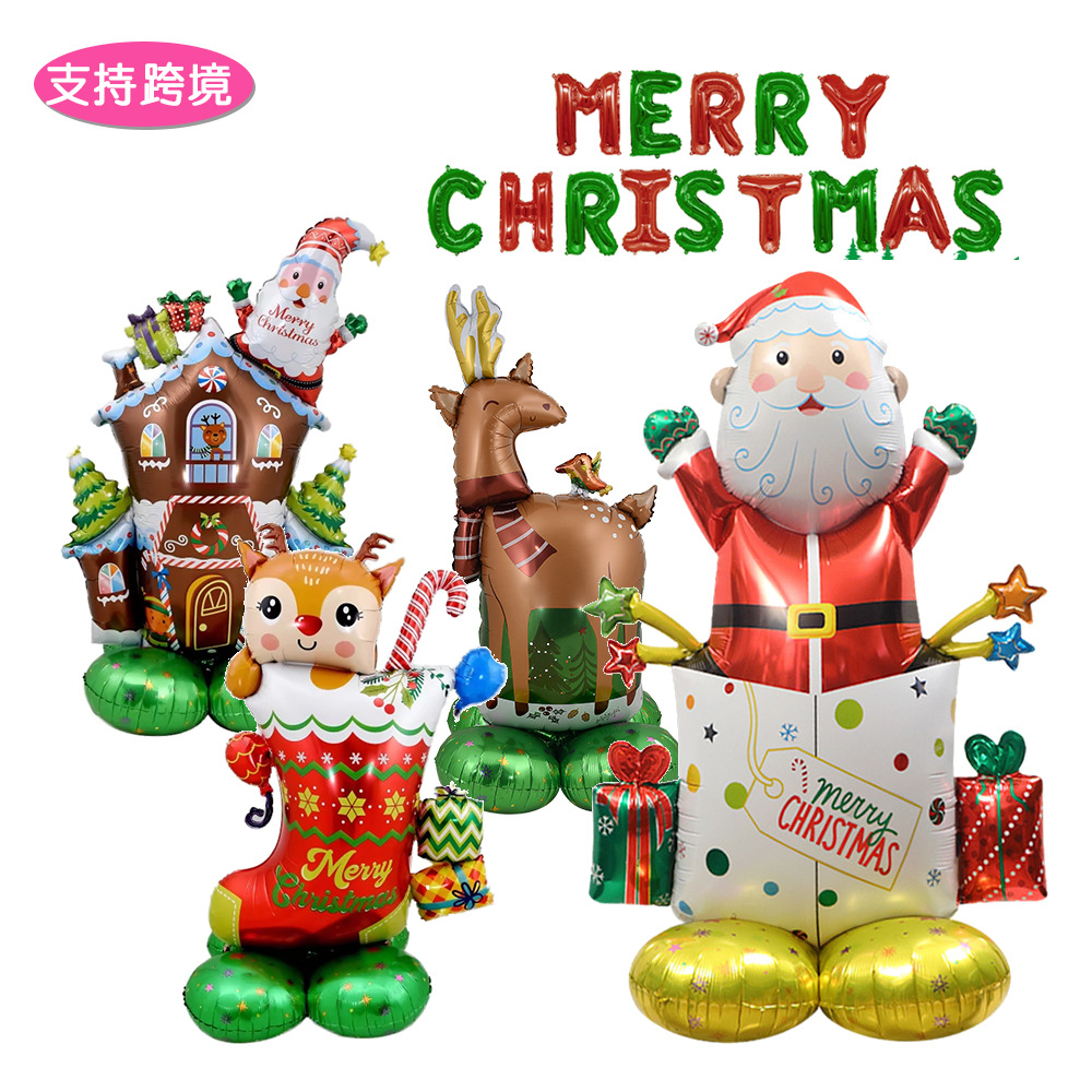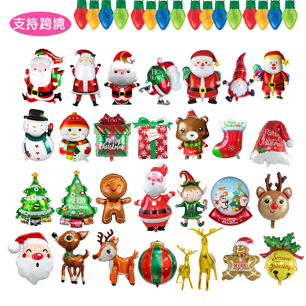 산타 클로스 눈사람 선물 상자 진저 브레드 맨 크리스마스 트리 엘크 알루미늄 필름 풍선 크리스마스 파티 장식 배열스토어 가기