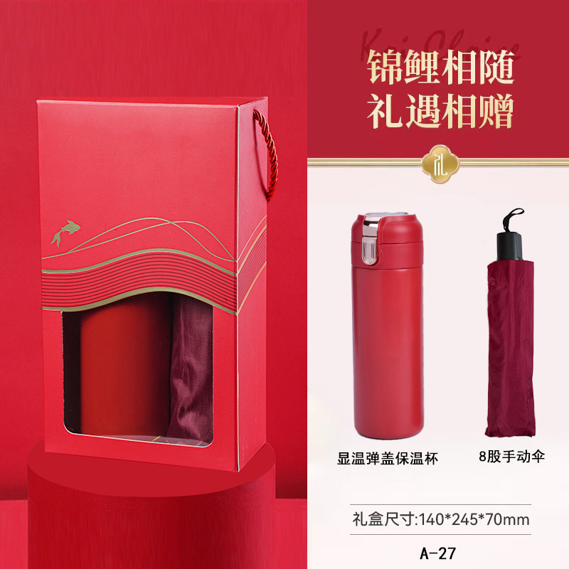 • A-27 온도 표시 팝탑 보온병 + 8가닥 수동우산
