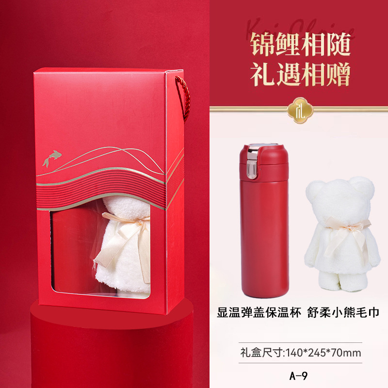 • A-9 온도 표시 팝업 뚜껑 보온병 + 수딩 베어 타월