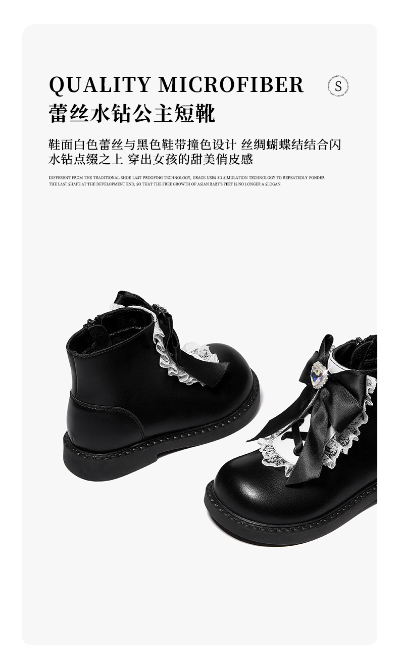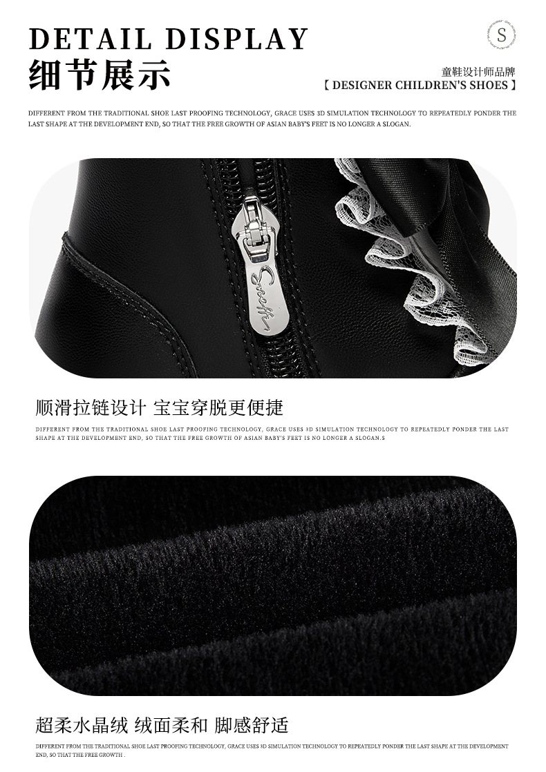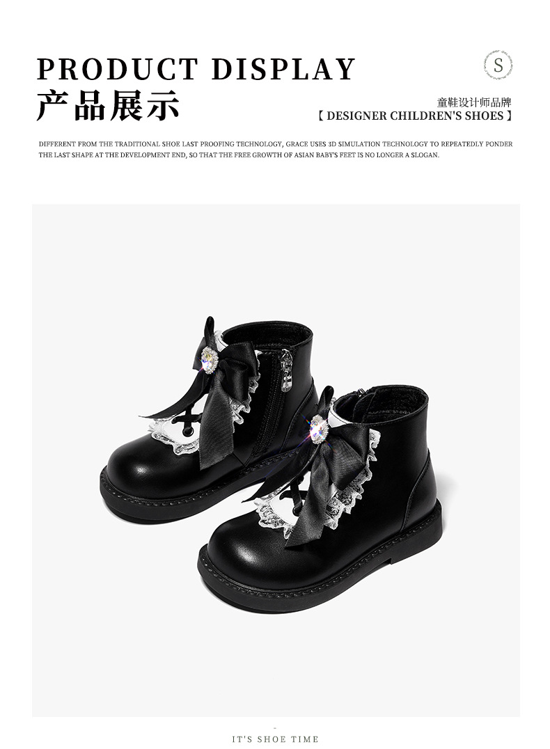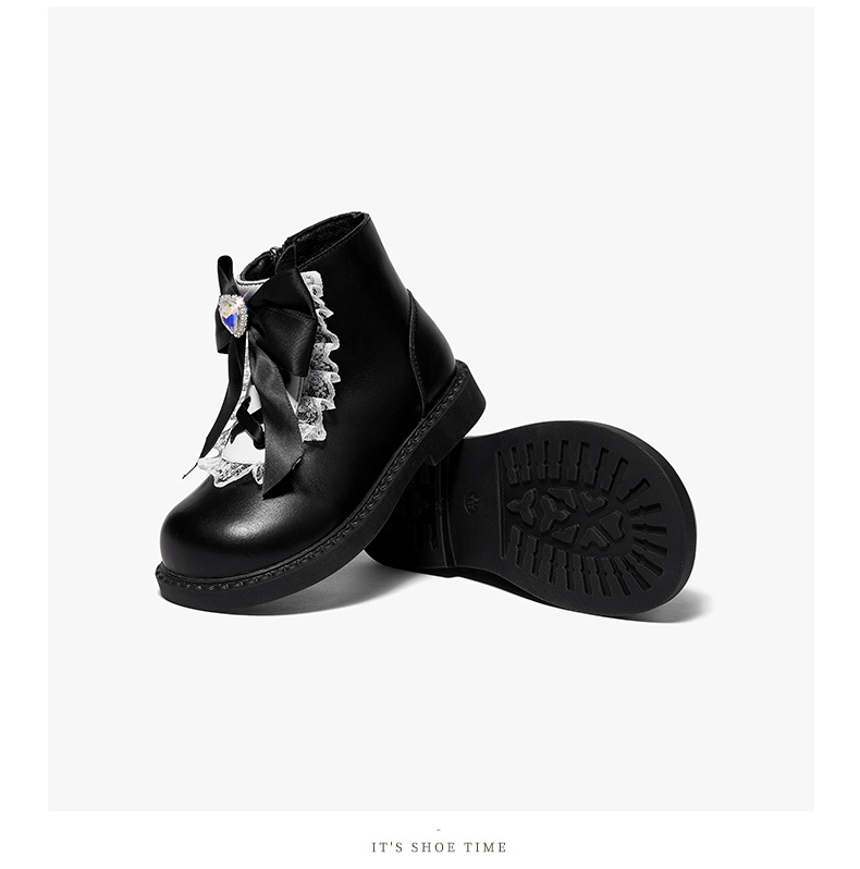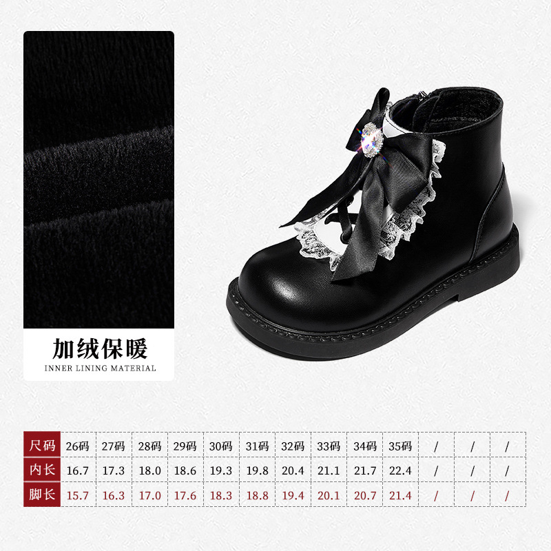 스나피 아동 부츠 여아 숏부츠 천연 가죽 2024 가을 겨울 신상품 리틀 프린세스 이중 보온 블랙 가죽 부츠