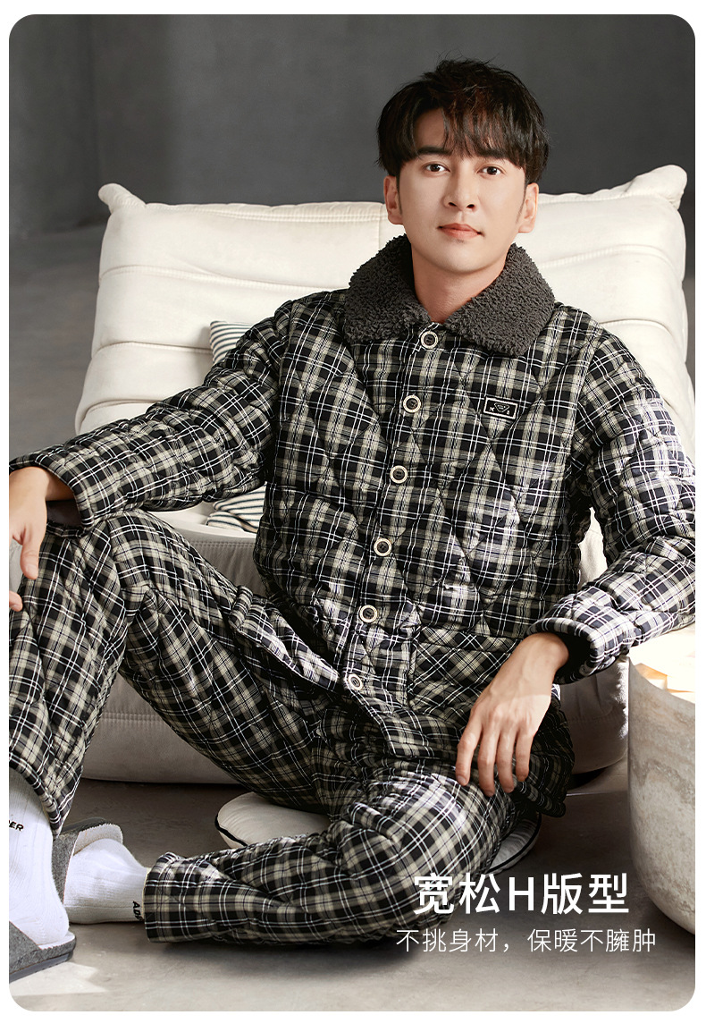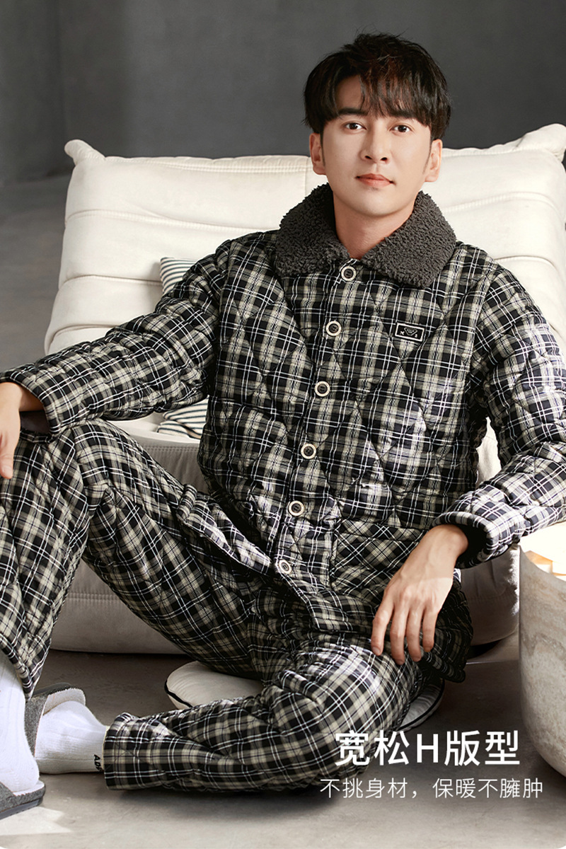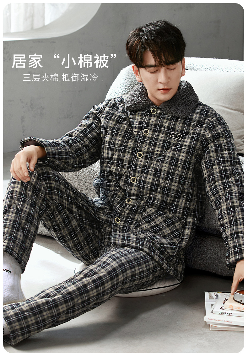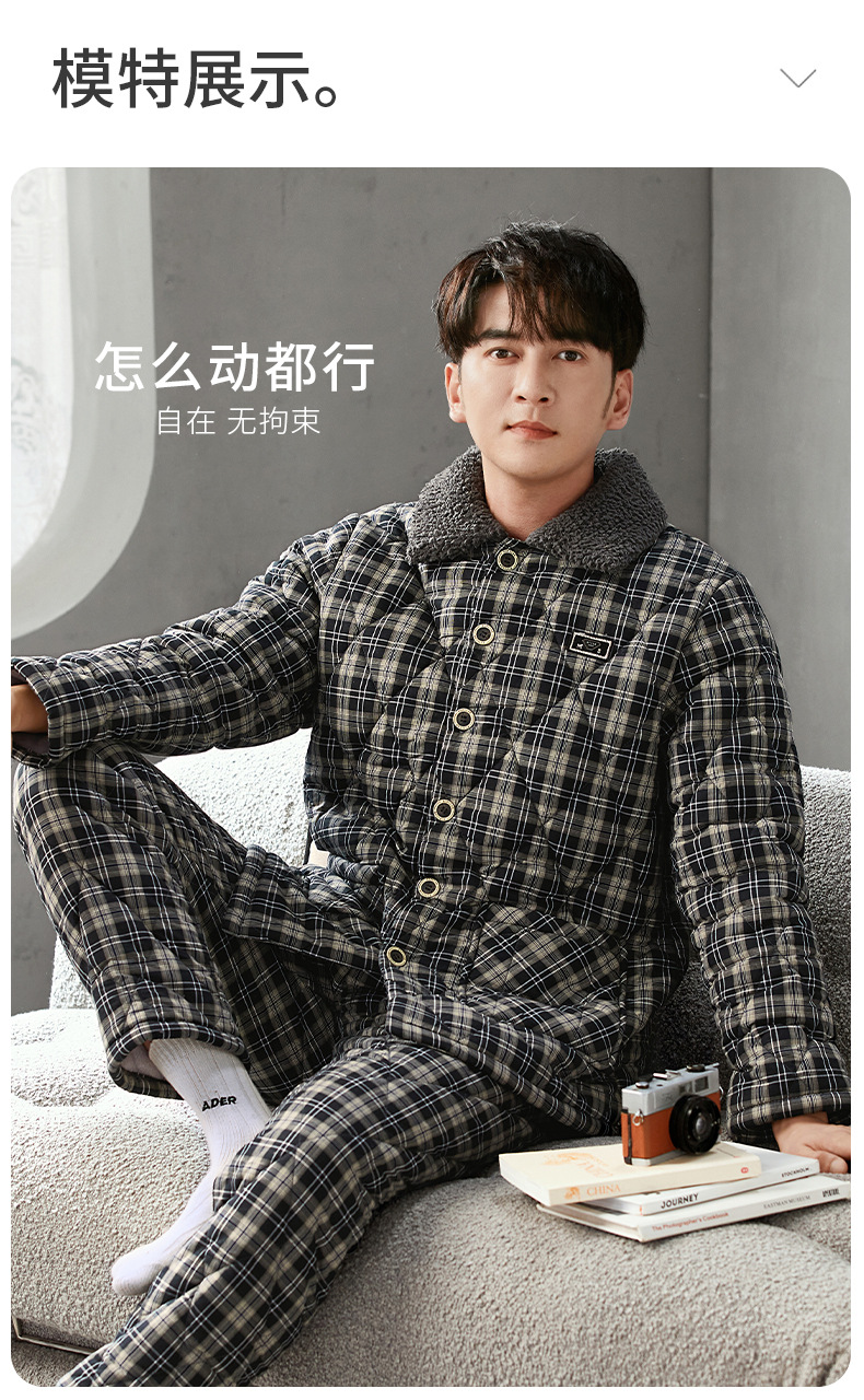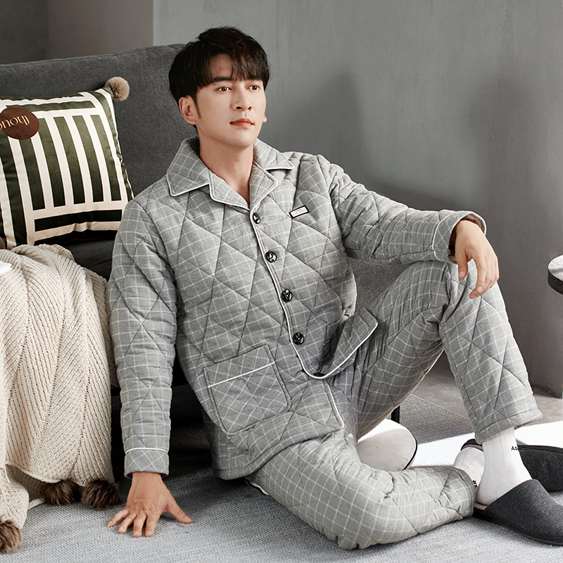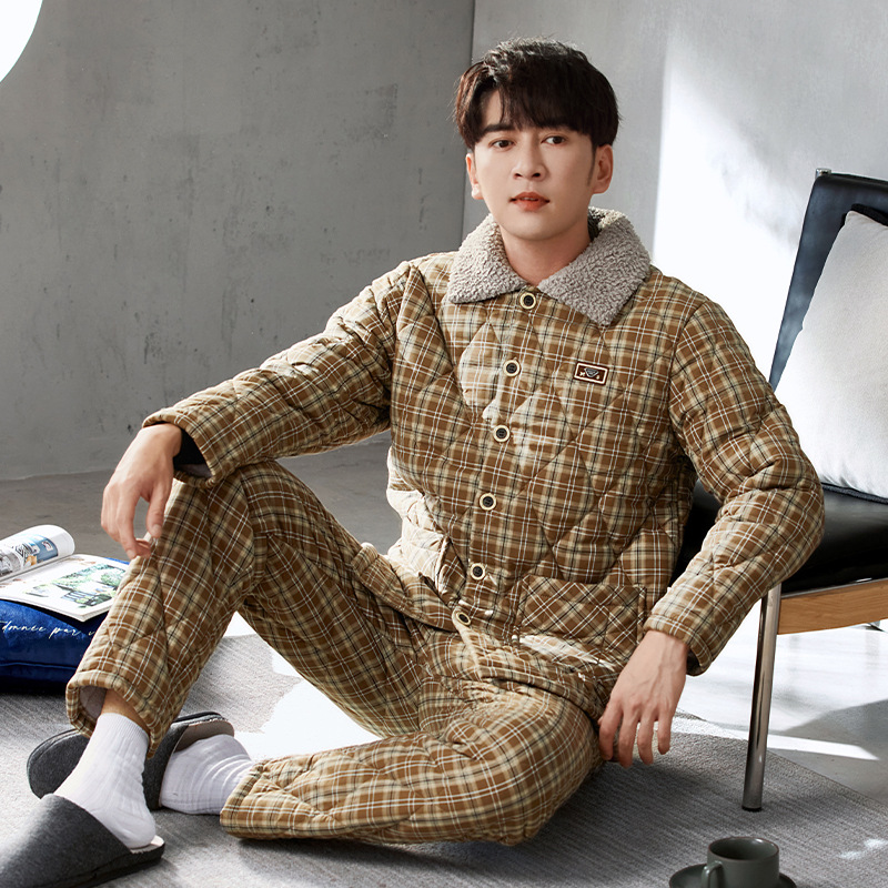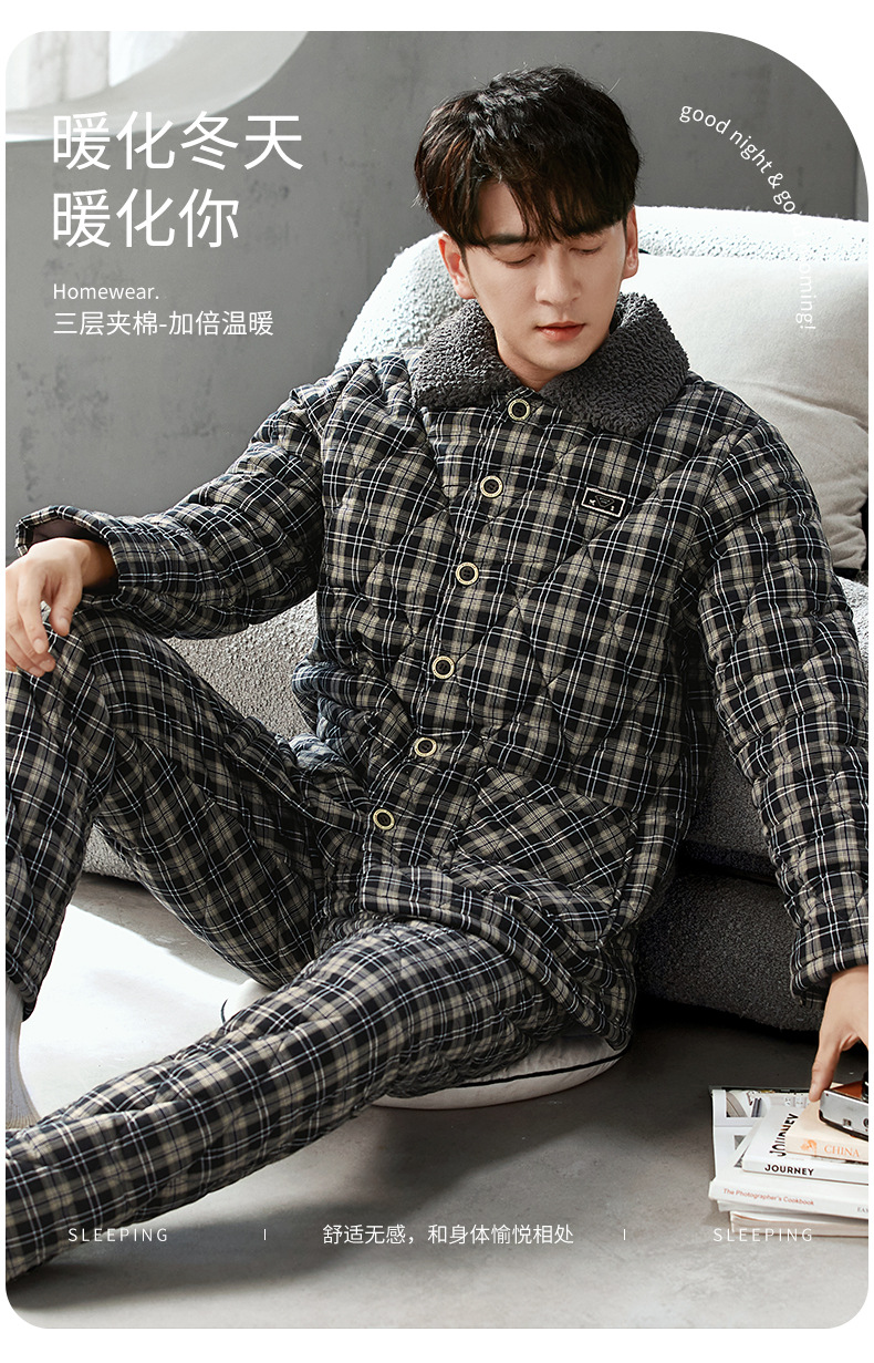 잠옷 남자의 겨울 3 층 두꺼운 짠 면화 겨울 따뜻한 기모 산호 양털 세트 착용스토어 가기