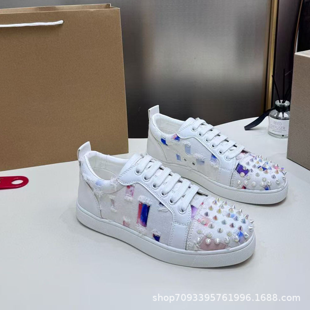 하이 에디션 유럽과 미국의 가벼운 럭셔리 CL 레드 바텀 보드 신발 남성 리벳 대외 무역 트렌디 신발 3D 인쇄 라인스톤 캐주얼 신발 여성 25 새로운스토어 가기