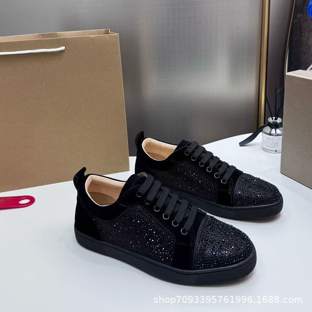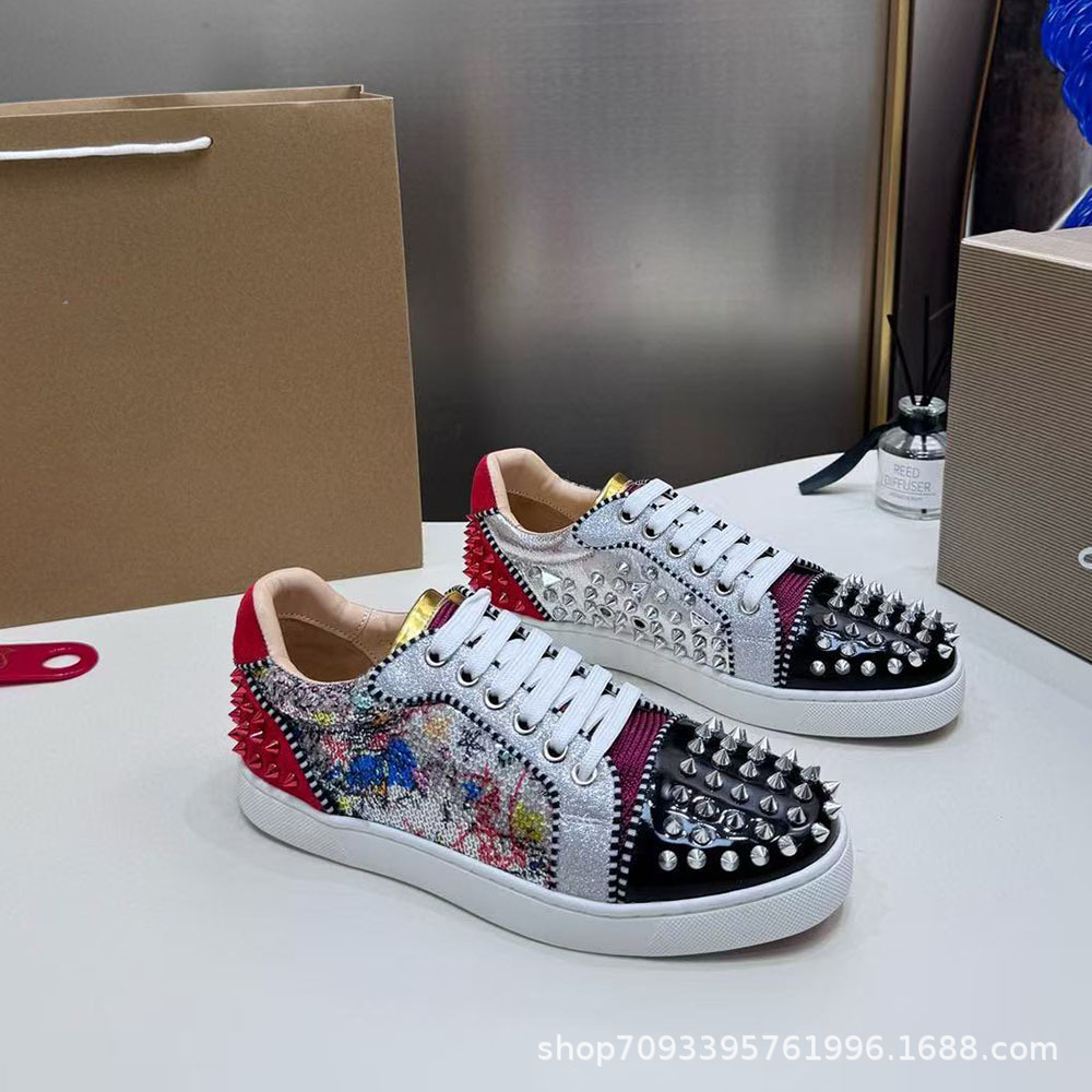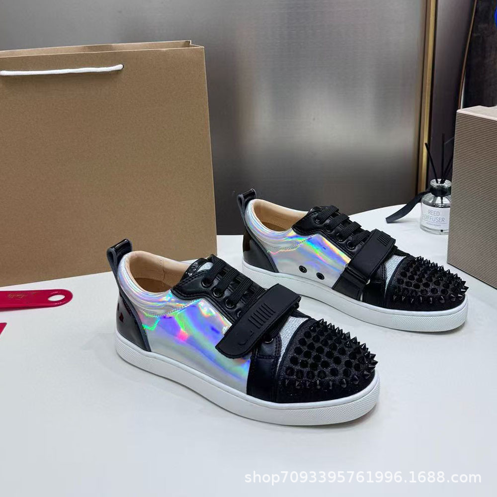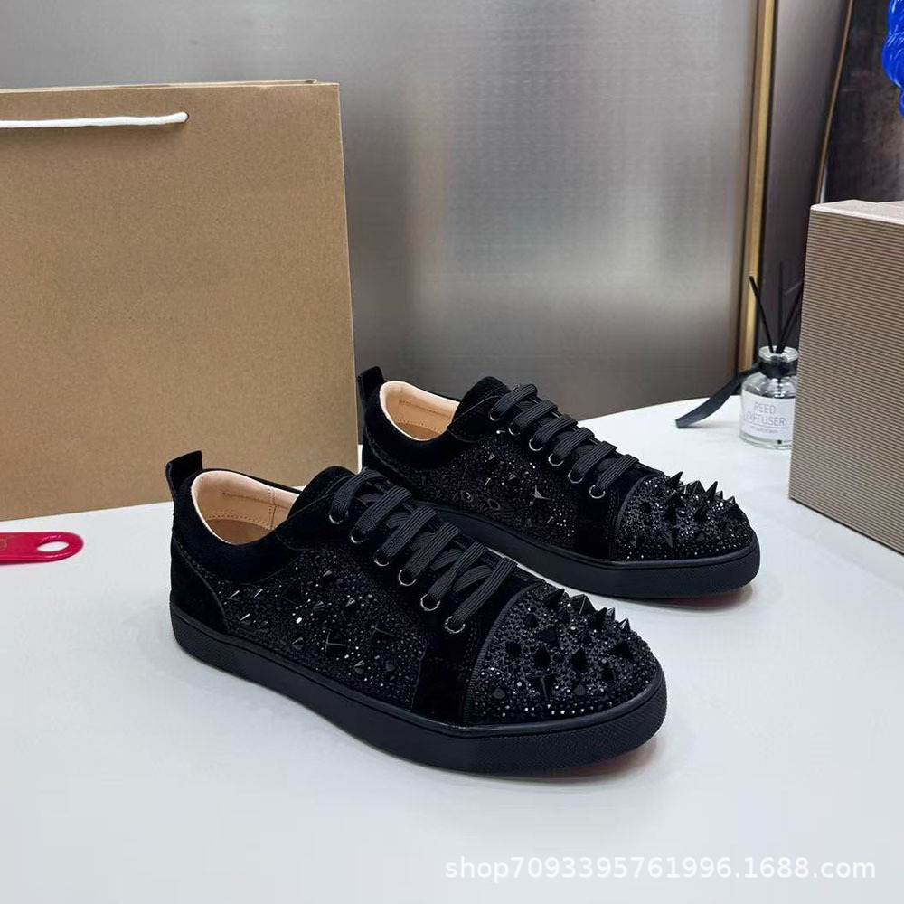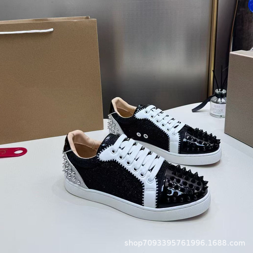 하이 에디션 유럽과 미국의 가벼운 럭셔리 CL 레드 바텀 보드 신발 남성 리벳 대외 무역 트렌디 신발 3D 인쇄 라인스톤 캐주얼 신발 여성 25 새로운