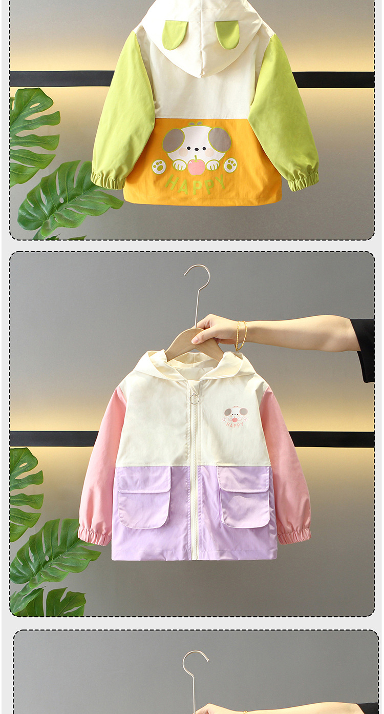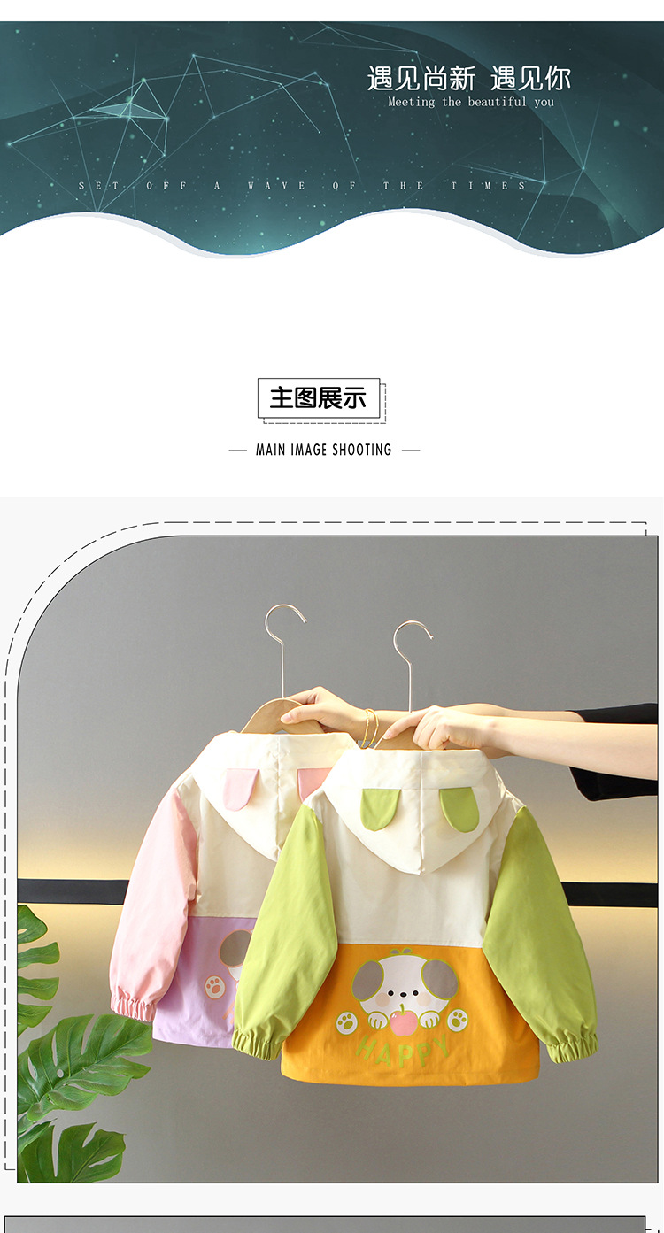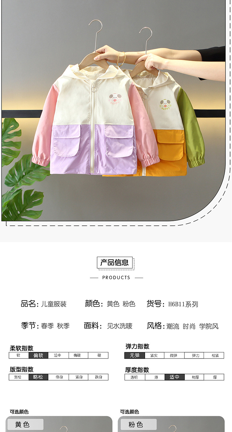 맞춤형 여아 가을 재킷 2025 새로운 스타일 아동 여아 봄, 가을 재킷 후드 컬러 블록 탑스토어 가기