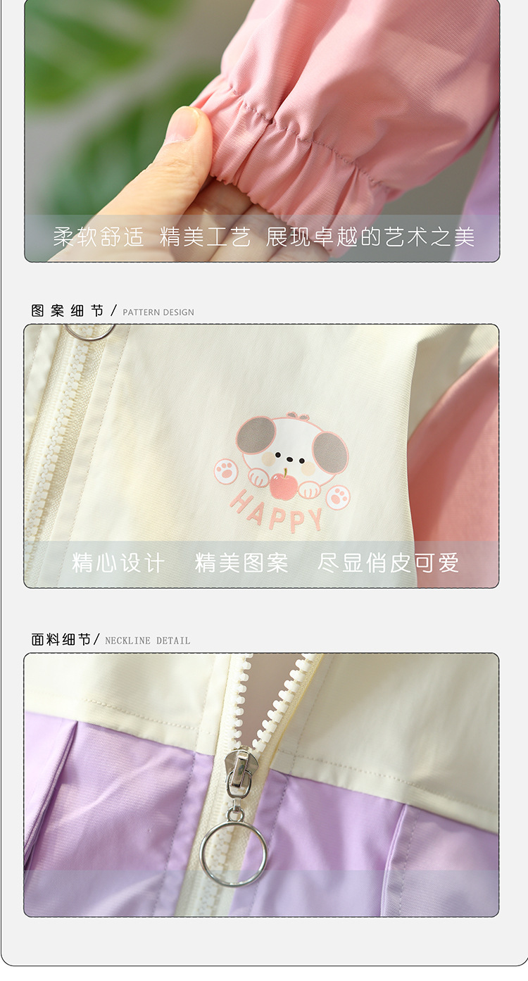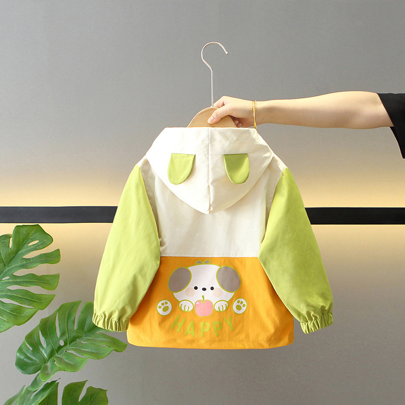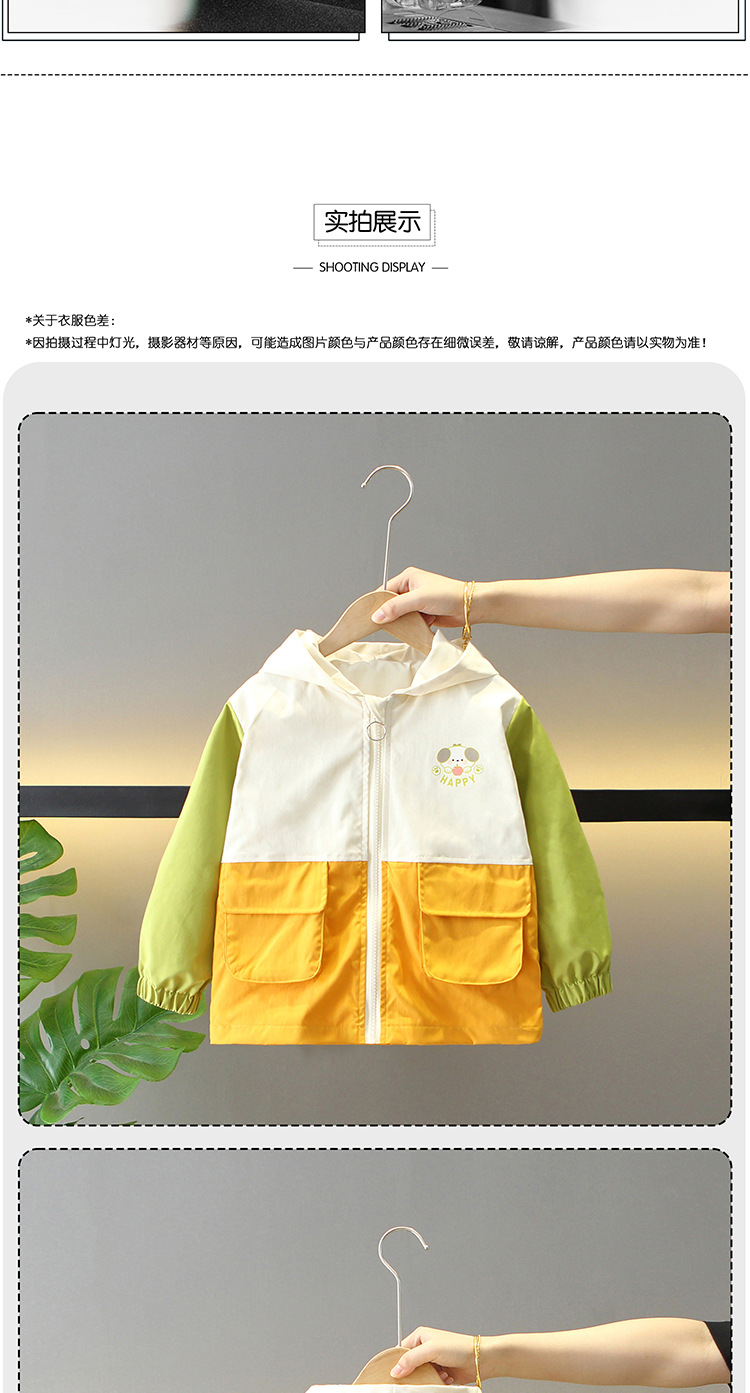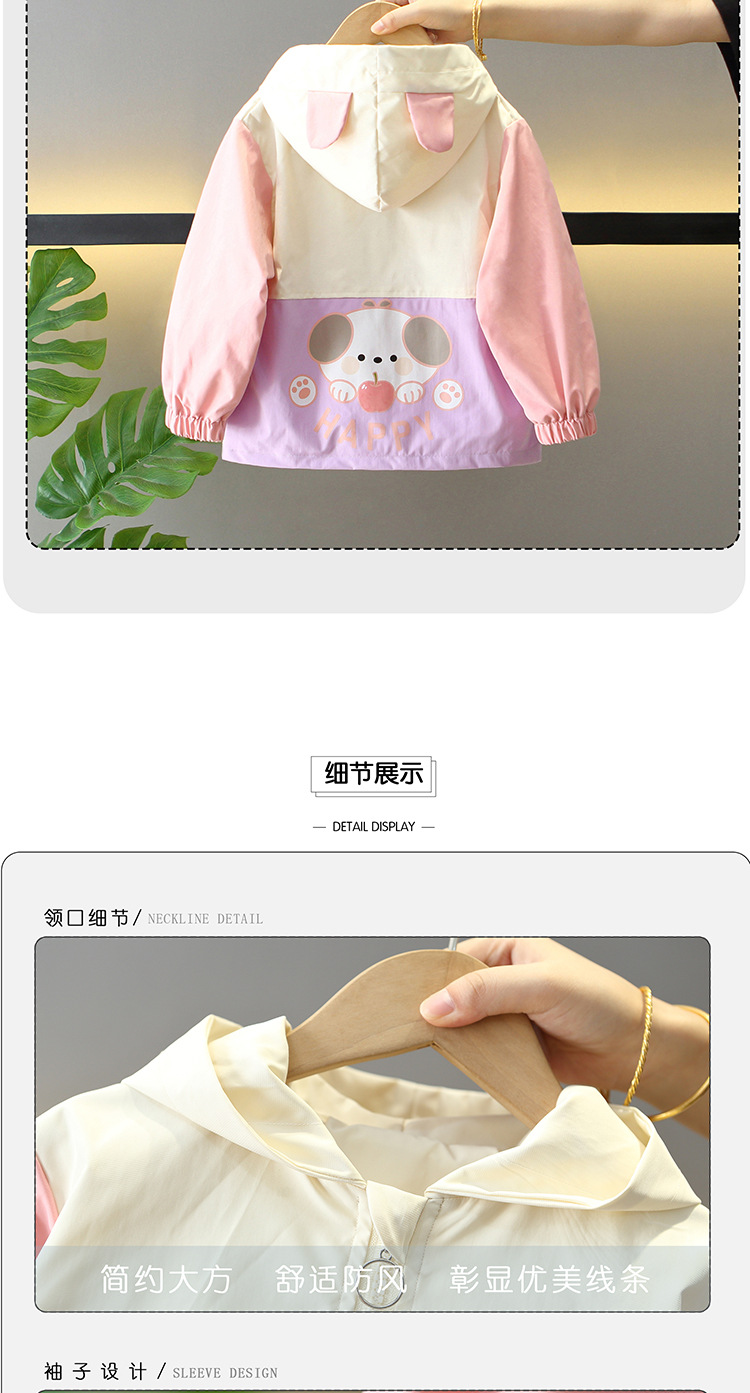 맞춤형 여아 가을 재킷 2025 새로운 스타일 아동 여아 봄, 가을 재킷 후드 컬러 블록 탑스토어 가기