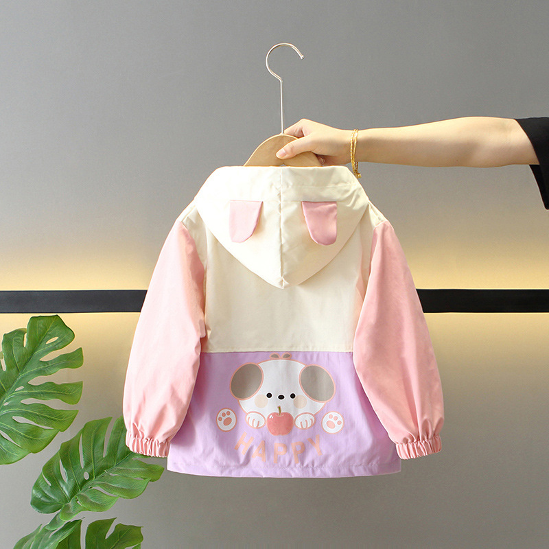 맞춤형 여아 가을 재킷 2025 새로운 스타일 아동 여아 봄, 가을 재킷 후드 컬러 블록 탑
