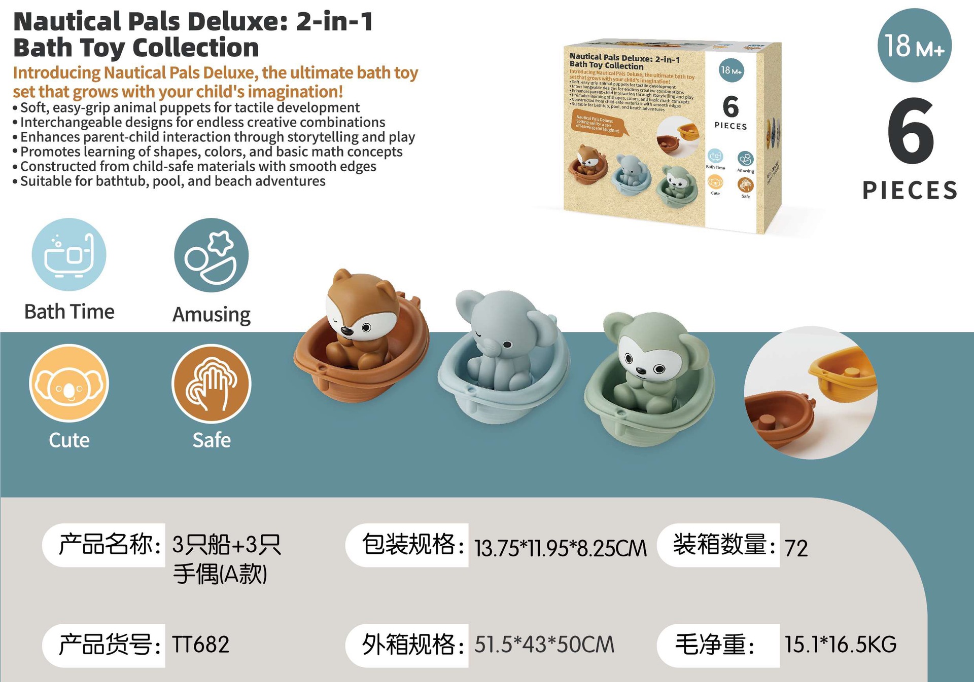 • 보트 6마리 + 동물 6마리(영어 색상 상자)