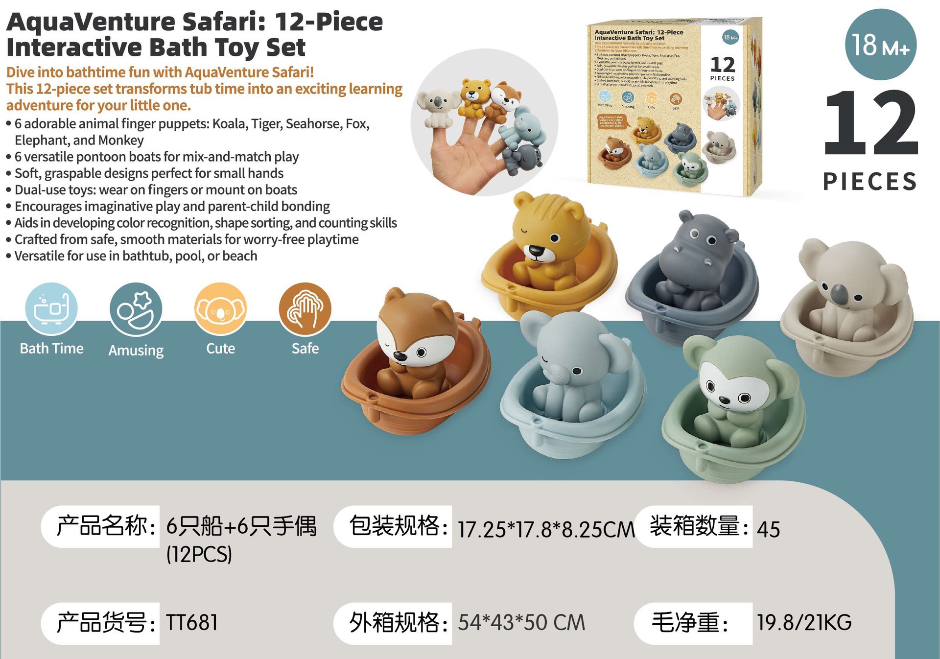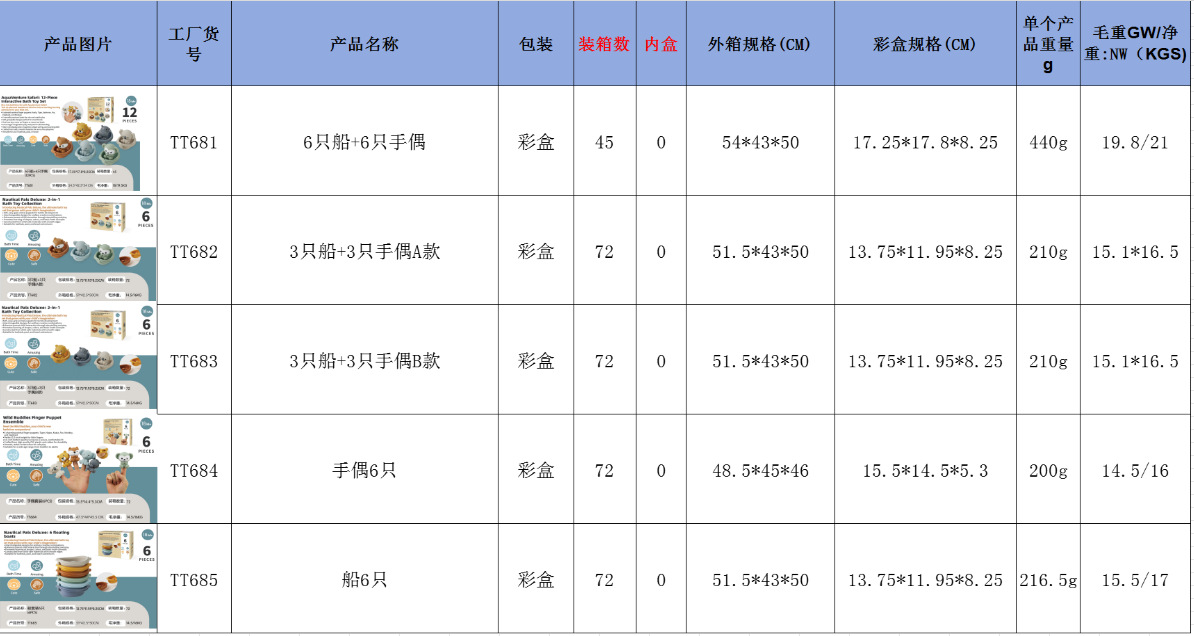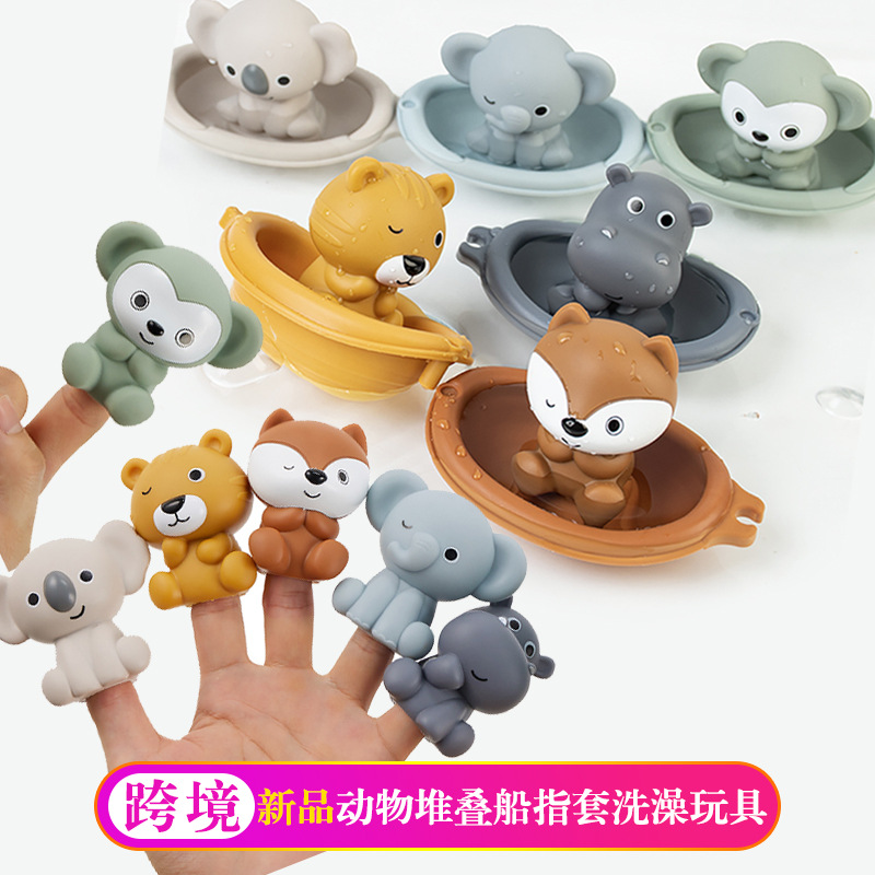국경 간 어린이 욕실 장난감 쌓을 수있는 플로팅 보트 유아 입욕 및 목욕 가능한 보트 동물 손가락 커버