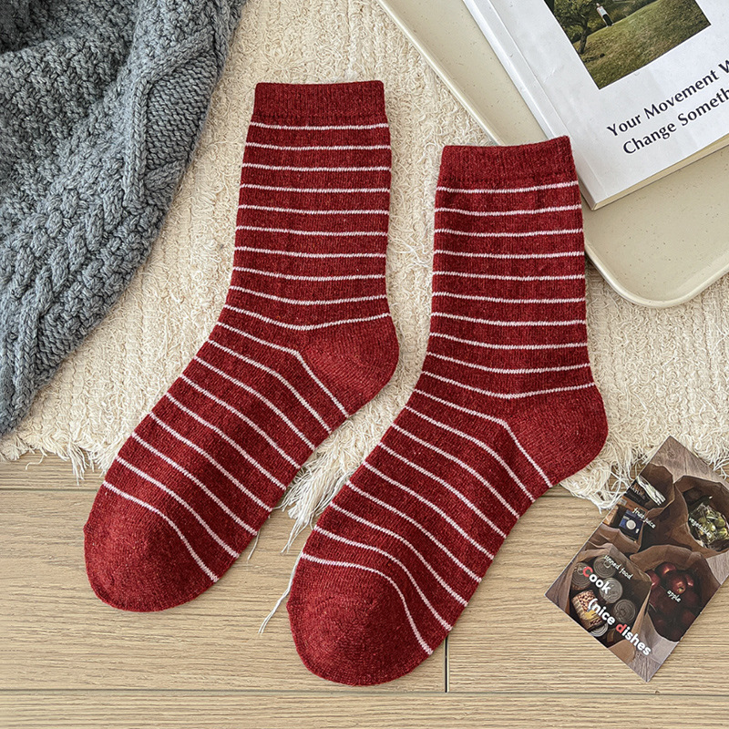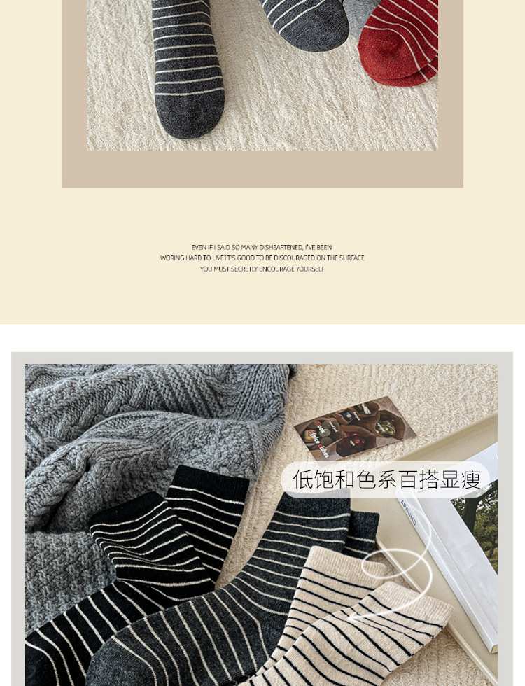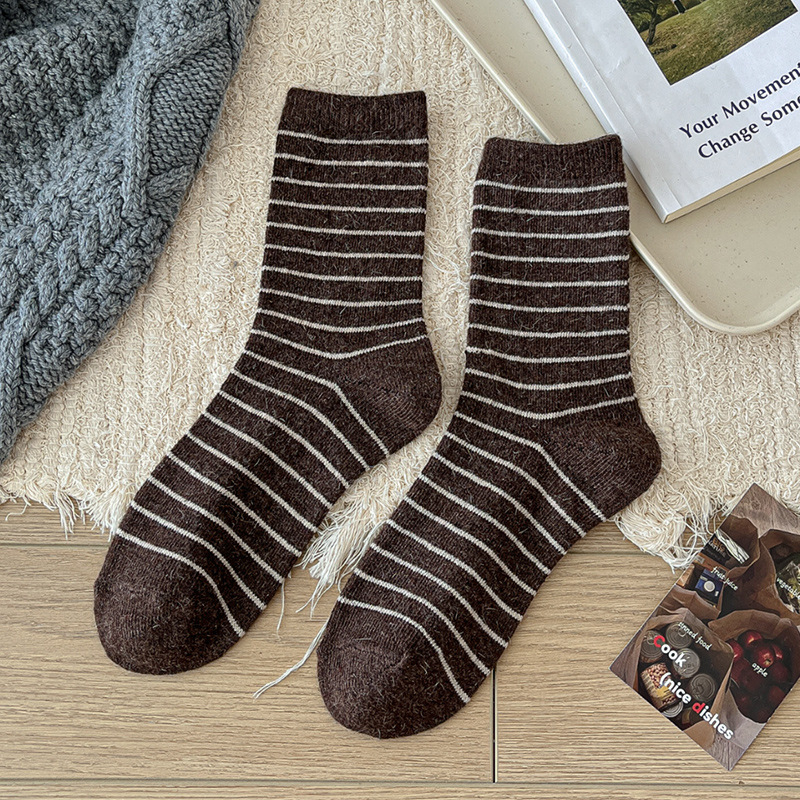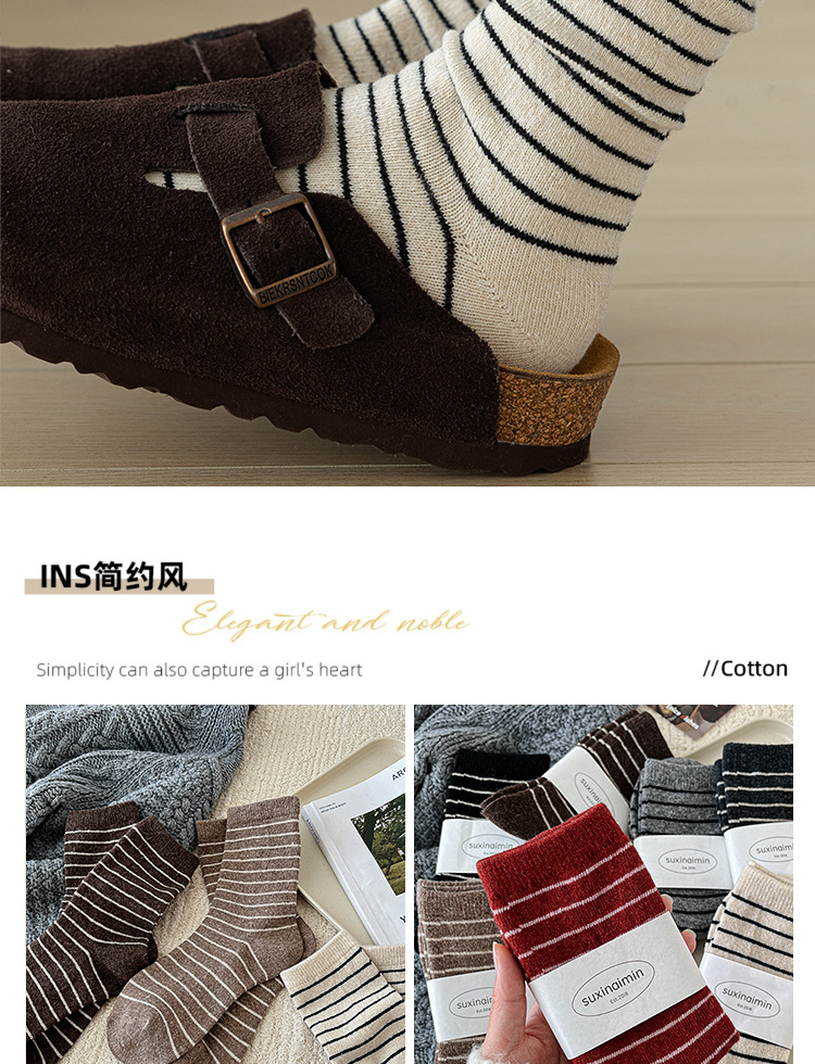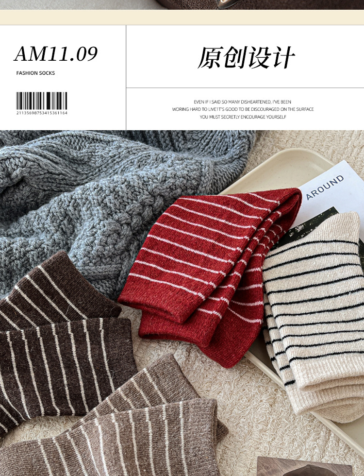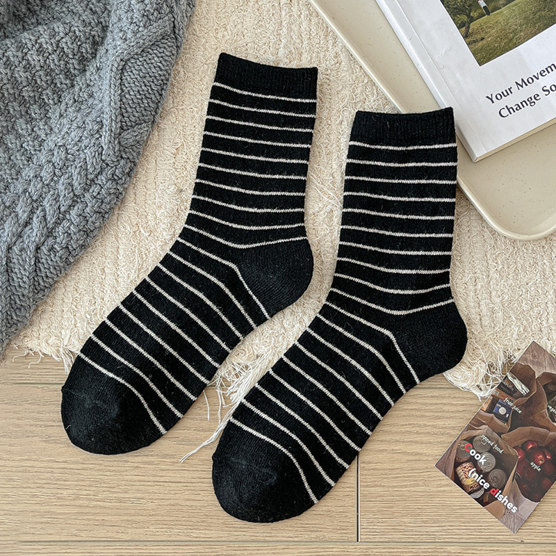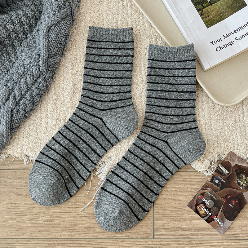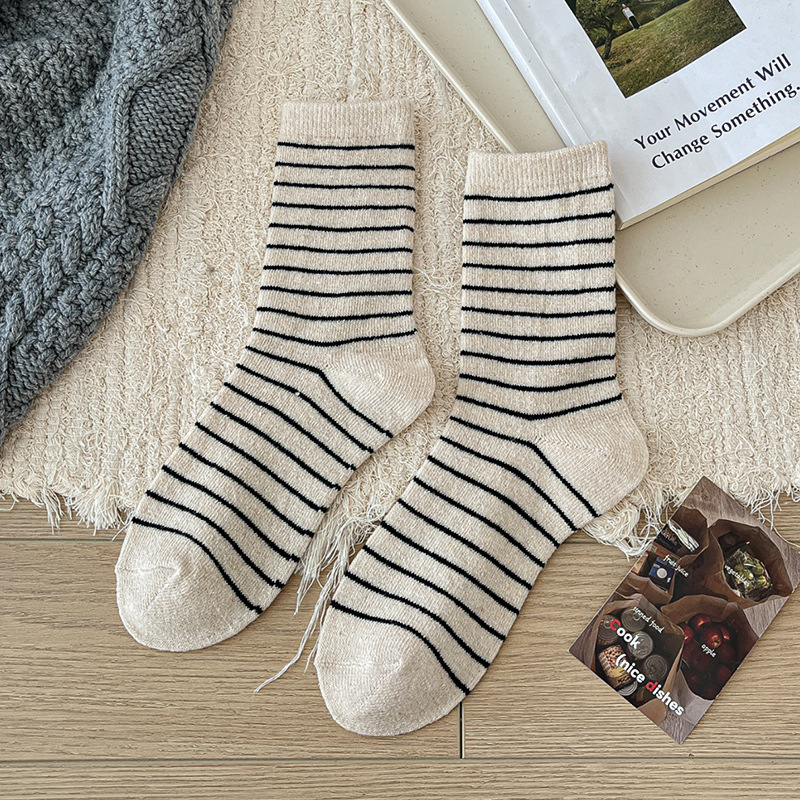수 시나 이민 양모 중견 여성 가을 겨울 명암 색 줄무늬 Ins 유행 일본식 따뜻한 스택 양말