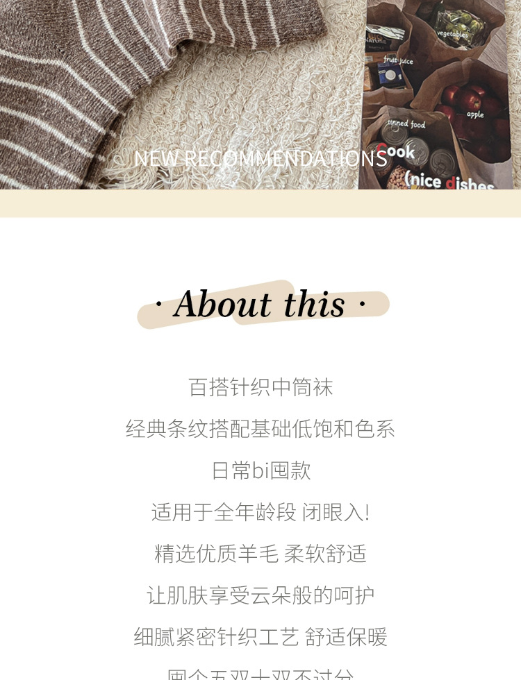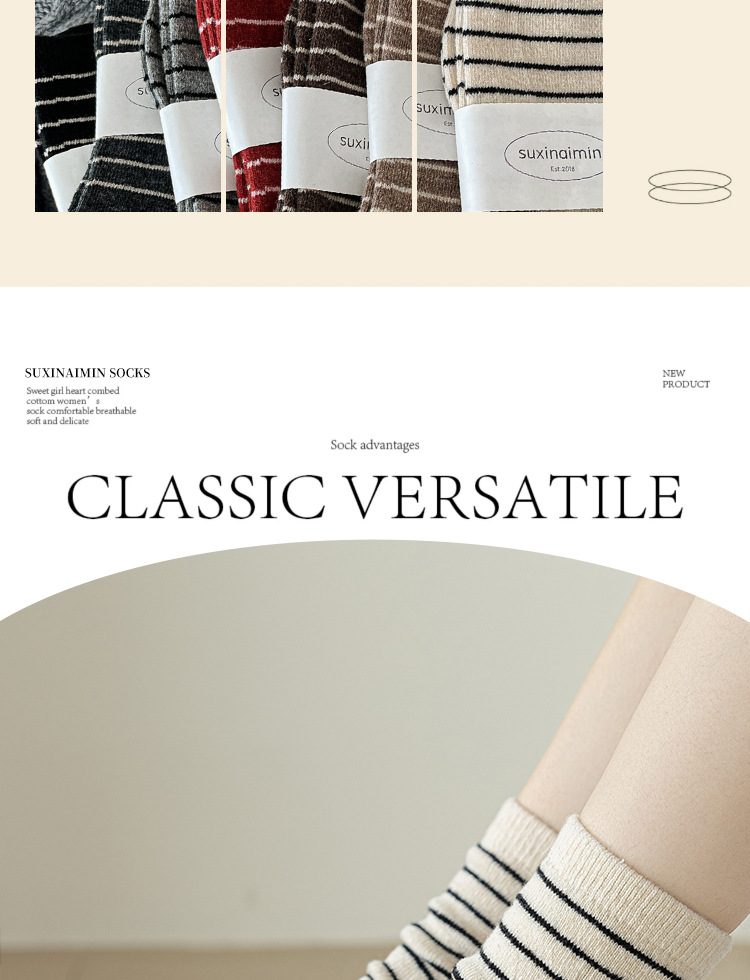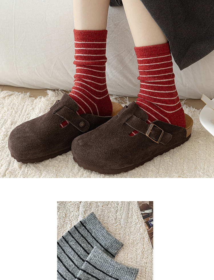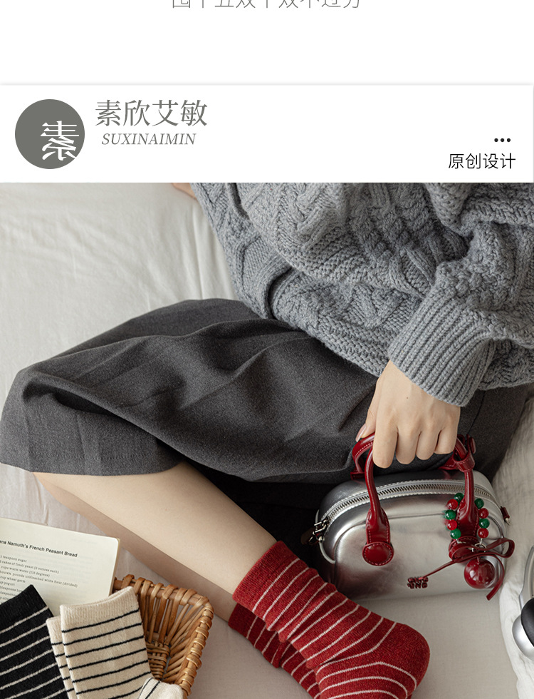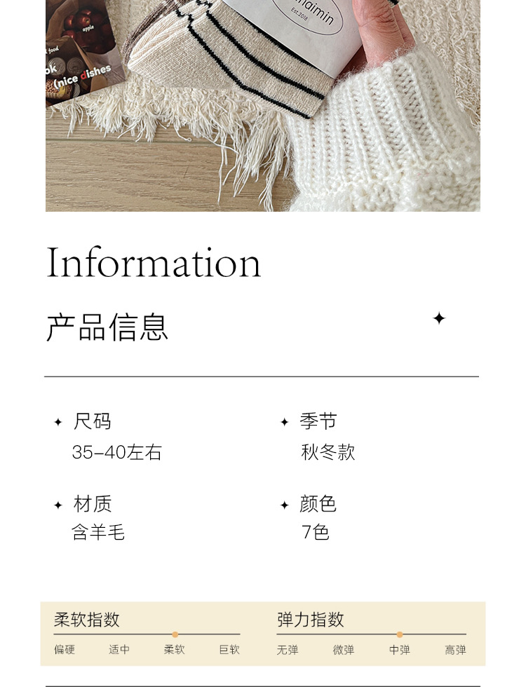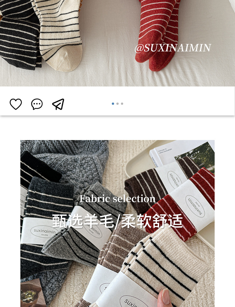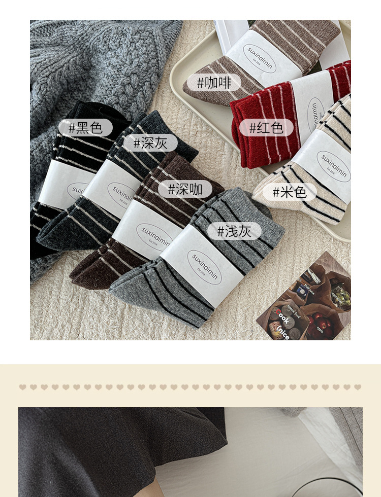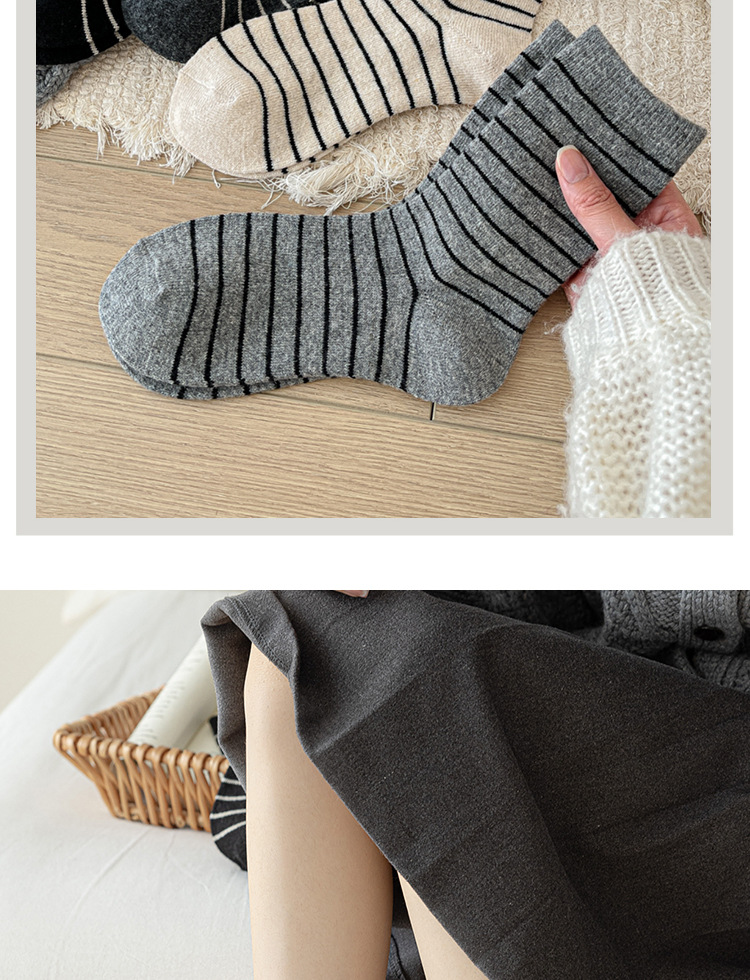 수 시나 이민 양모 중견 여성 가을 겨울 명암 색 줄무늬 Ins 유행 일본식 따뜻한 스택 양말