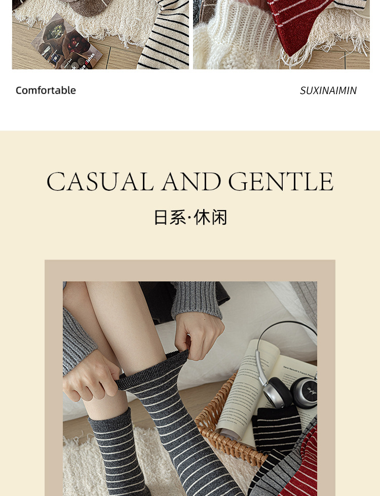 수 시나 이민 양모 중견 여성 가을 겨울 명암 색 줄무늬 Ins 유행 일본식 따뜻한 스택 양말스토어 가기