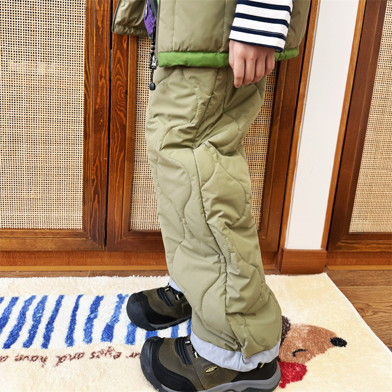2024 새로운 가을, 겨울 어린이 일본 야외 스포츠 방수 면화 바지 따뜻한 퀼트 바지