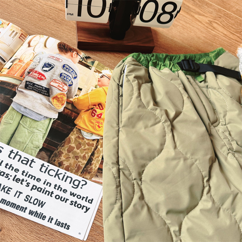 2024 새로운 가을, 겨울 어린이 일본 야외 스포츠 방수 면화 바지 따뜻한 퀼트 바지스토어 가기