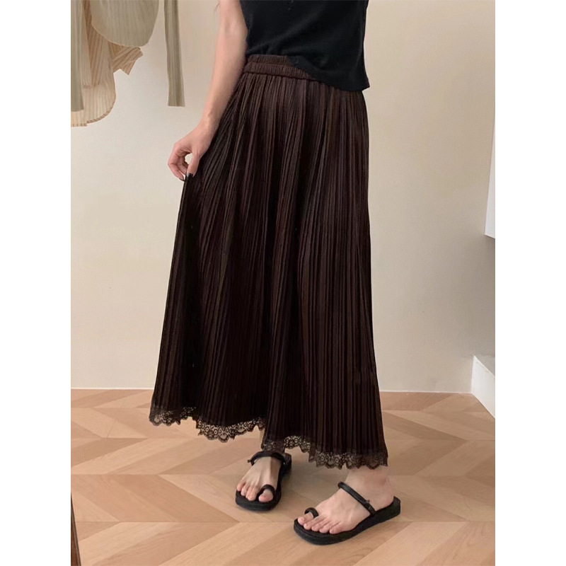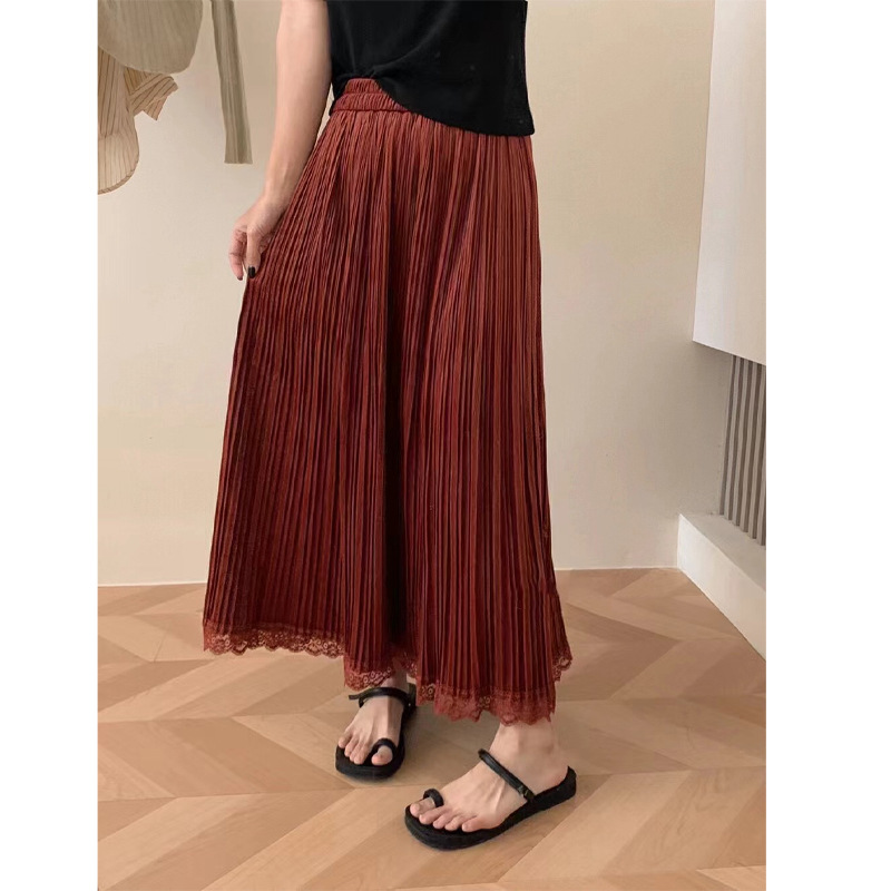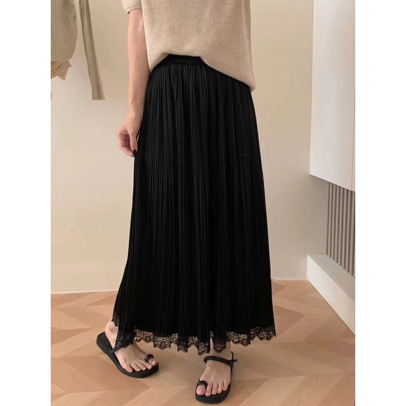 카운터 품질 스티칭 레이스 레이스 스커트 여성의 가을 새로운 높은 허리 슬리밍 착용 중간 길이 A 라인 스커트