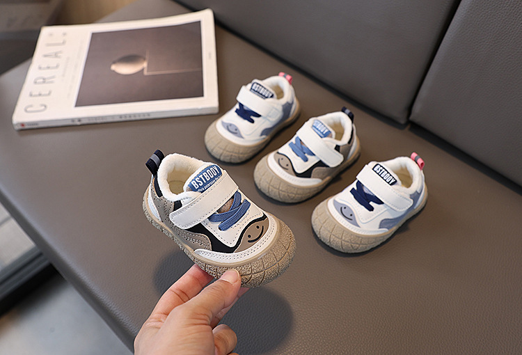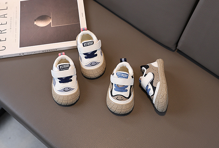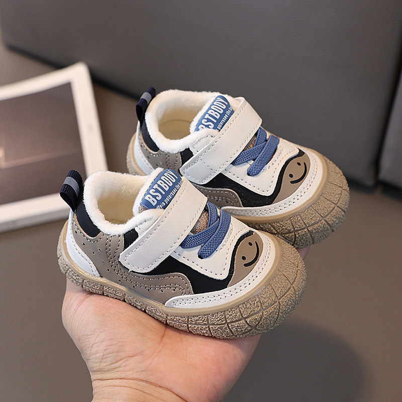 남자와 여자의 아기 유아 신발 가을과 겨울 새로운 어린이 보드 신발 아기 부드러운 바닥 따뜻한 운동화 면 얇은 벨벳