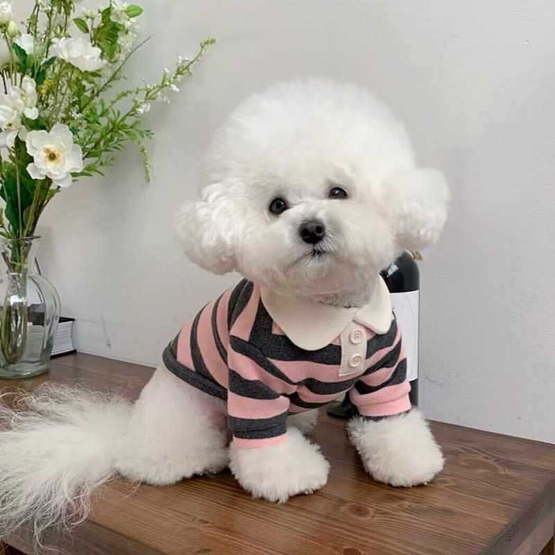 얇은 개 옷 애완 동물 여름 팬더 고양이 미미 Schnery 작은 폴로 셔츠 고양이 테디 봄 가을 가을 겨울 줄무늬