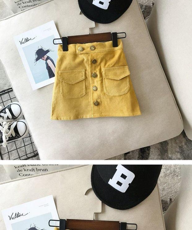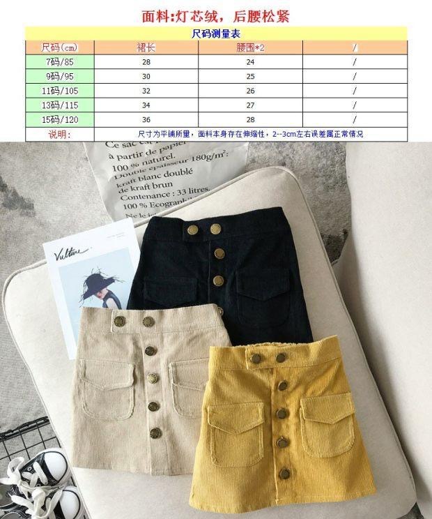 2024 봄과 가을 새로운 아동복 소녀 달콤한 포켓 코듀로이 스커트 스타일 힙합 스커트 짧은 치마스토어 가기