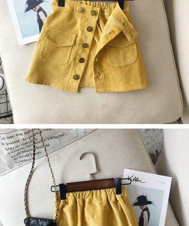 2024 봄과 가을 새로운 아동복 소녀 달콤한 포켓 코듀로이 스커트 스타일 힙합 스커트 짧은 치마
