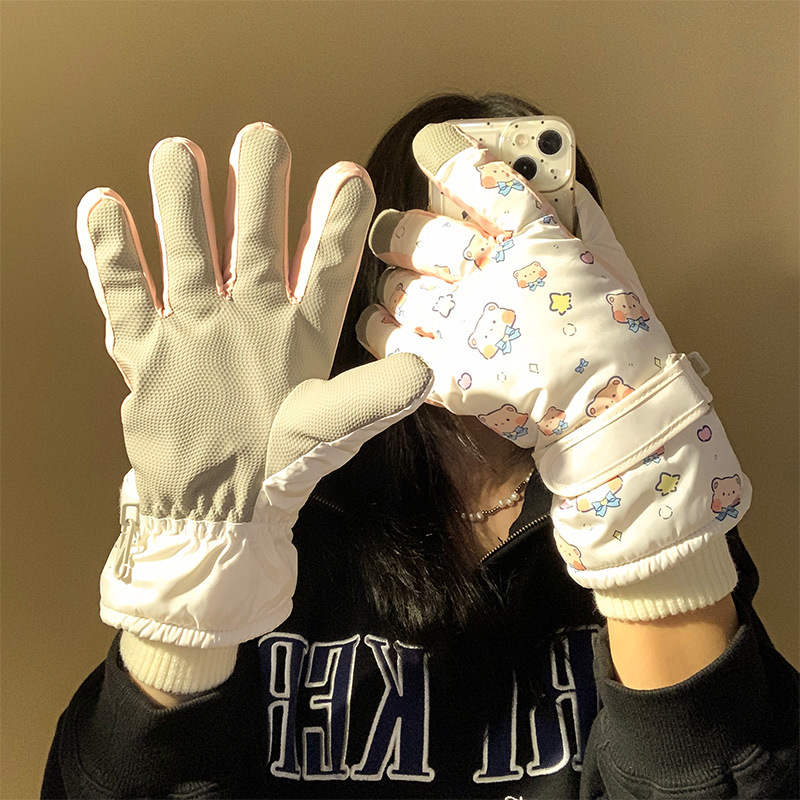 귀여운 곰 다섯 손가락 스키 장갑 여성의 2024 가을과 겨울 따뜻한 라이딩 감기 기모 두꺼운 터치 스크린스토어 가기