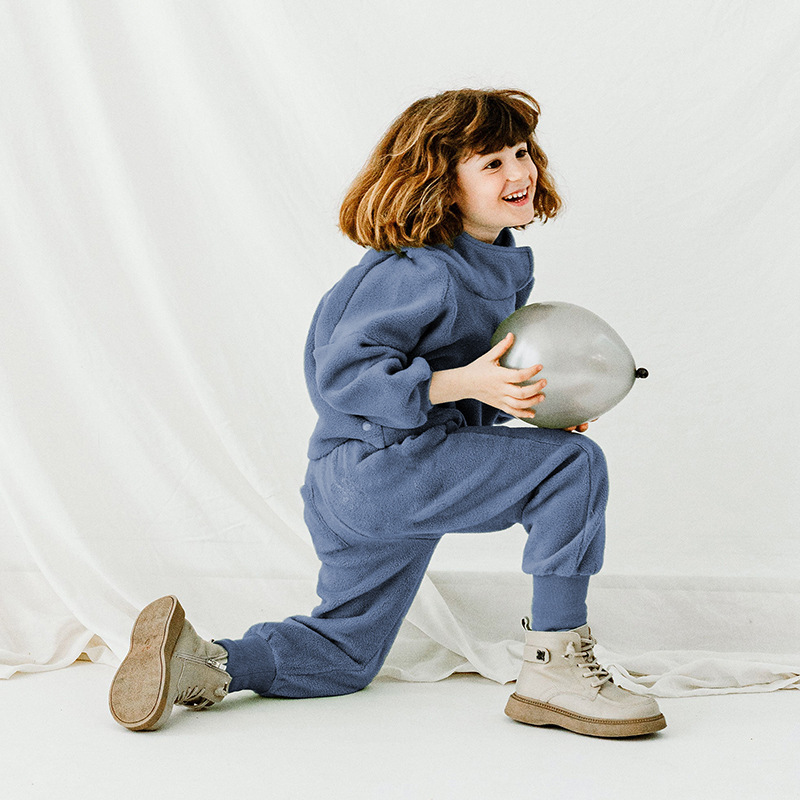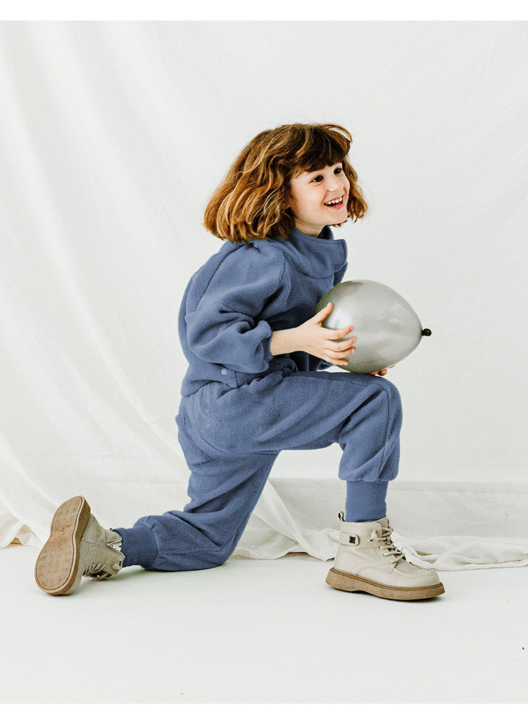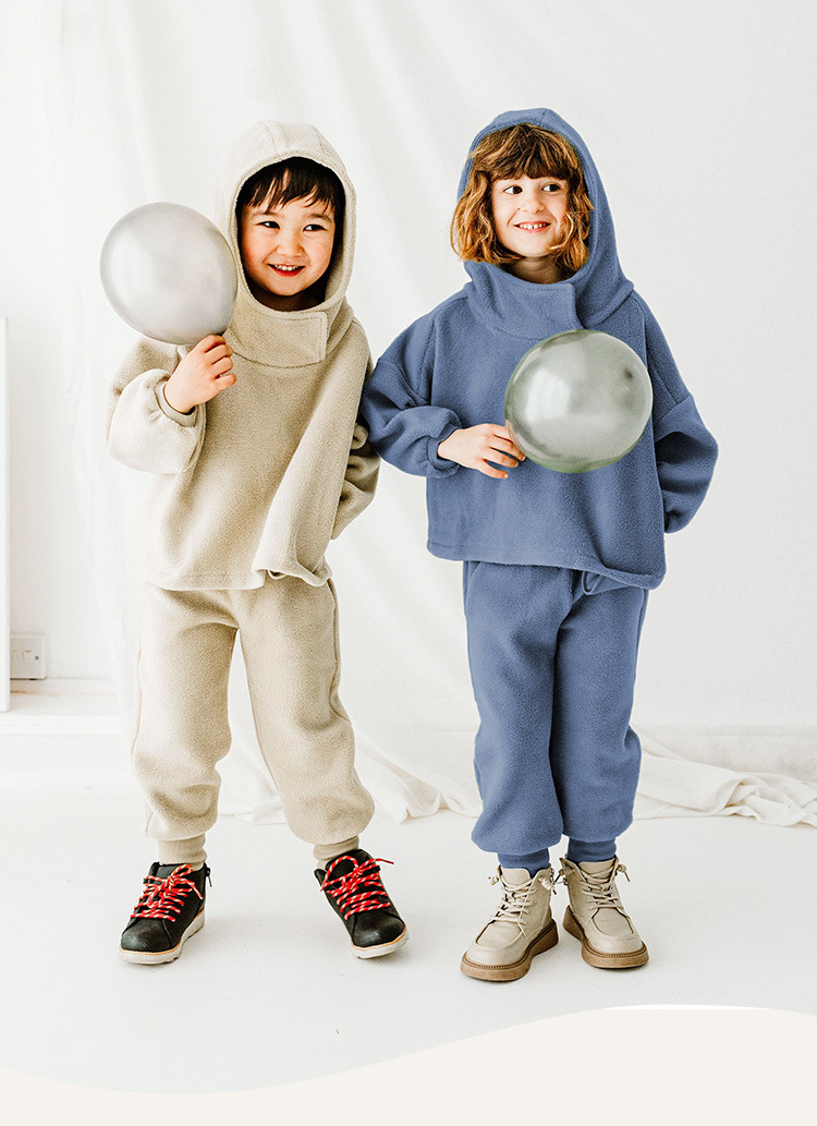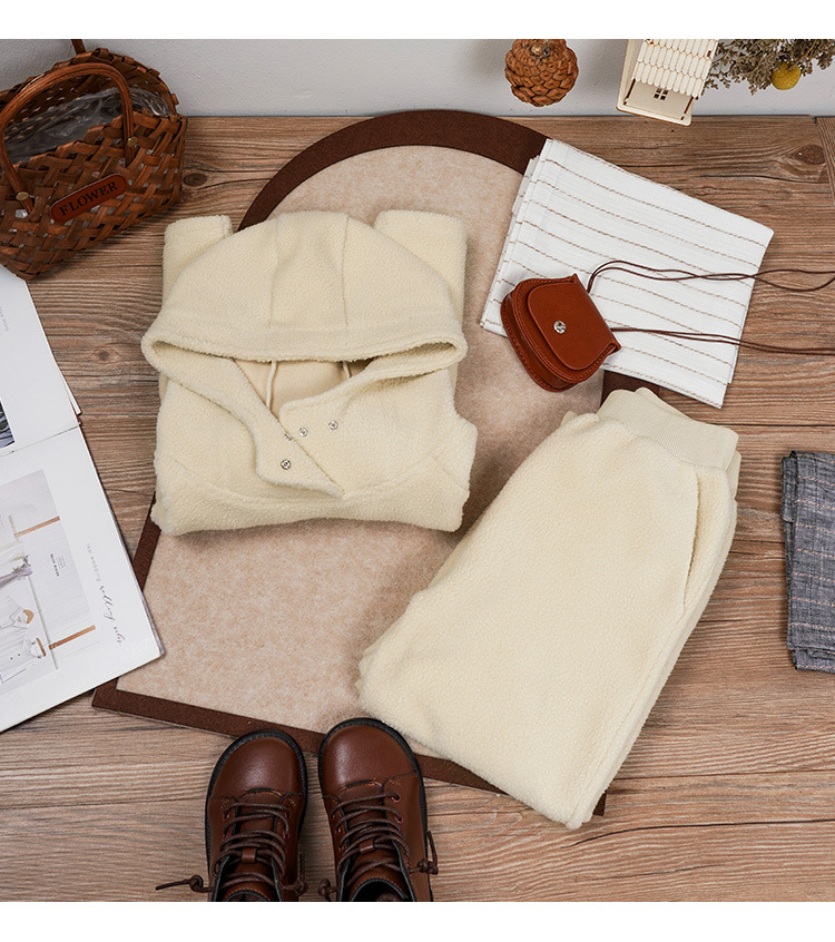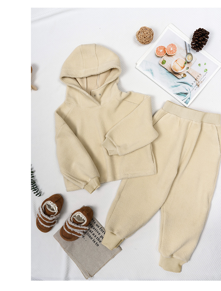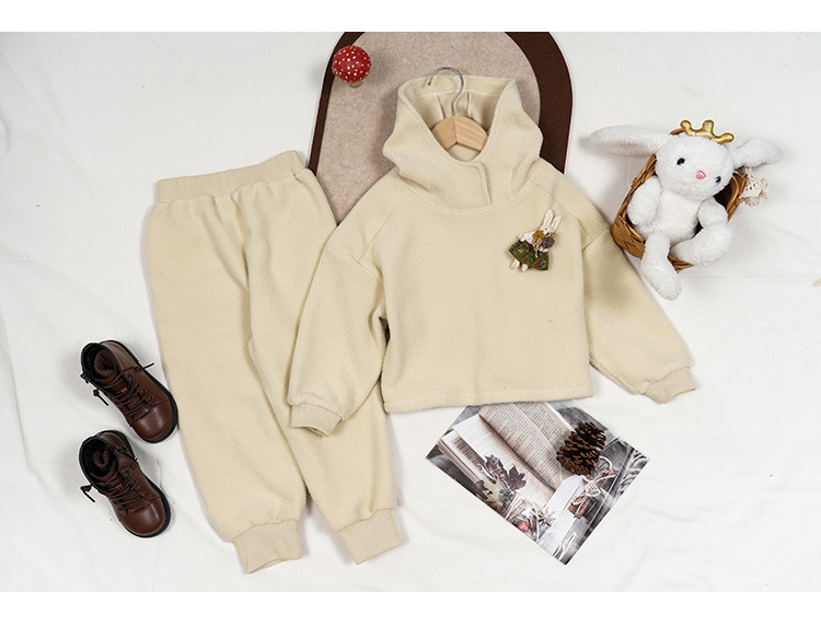 세트 양털 아기 소년과 소녀 가을과 겨울 따뜻한 단색 아동복 스카프 스냅 버튼 후드 풀오버 스웨터 투피스 세트